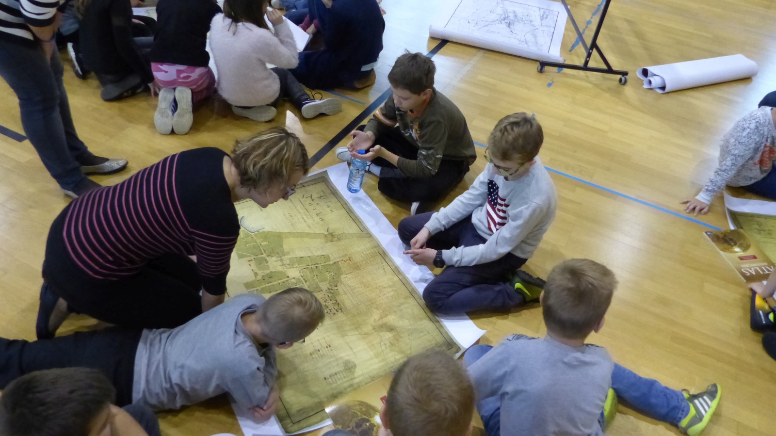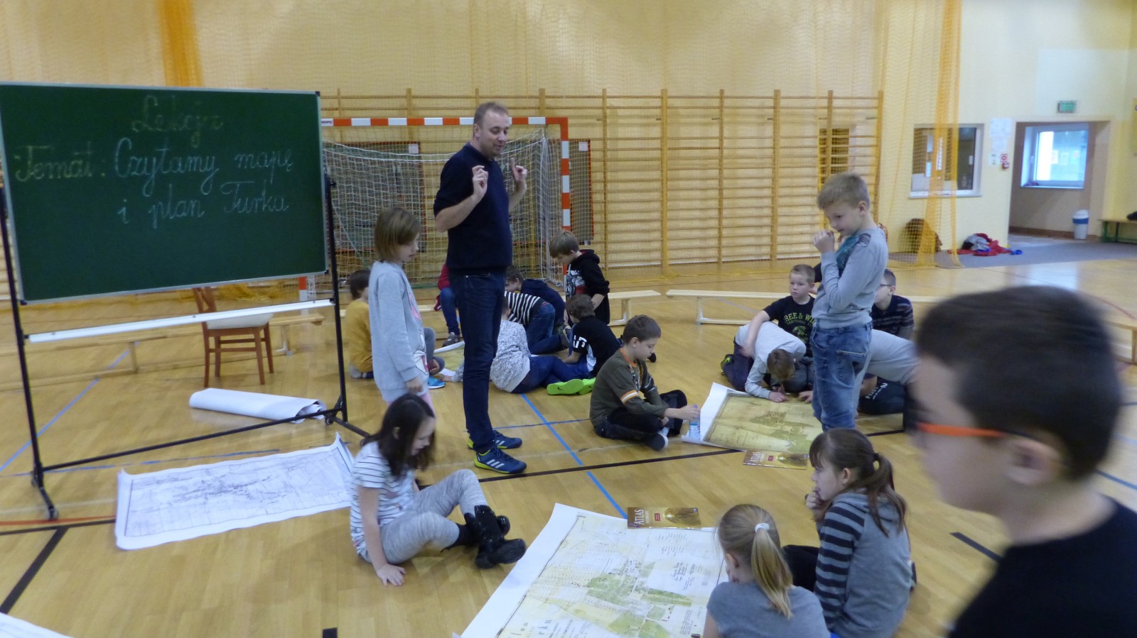 Pan Bartek przyniósł dużo map historycznych naszego miasta - Turku. Mapy pochodziły z różnych okresów historycznych. Wszyscy mieliśmy okazję pooglądać je z bliska i odszukać ulice, na których obecnie mieszkamy. Okazało się jednak, że nie wszystkie ulice dało się odszukać. Pan Bartek wytłumaczył nam, że wiele ulic zmieniło swoją nazwę( na przykład ulica Przebiegła to obecnie Szeroka, Nowy Świat to ulica Kaliska Pólko to ulica Żeromskiego) lub nie istniało jeszcze wtedy w Turku. Mieliśmy również możliwość zapoznać się z legendami dawnych planów a następnie odnaleźć obiekty terenowe na planach. Mogliśmy też zaobserwować w którym kierunku rozrosło się nasze miasto. Poznaliśmy różnice pomiędzy mapami geograficznymi a mapami historycznymi.
