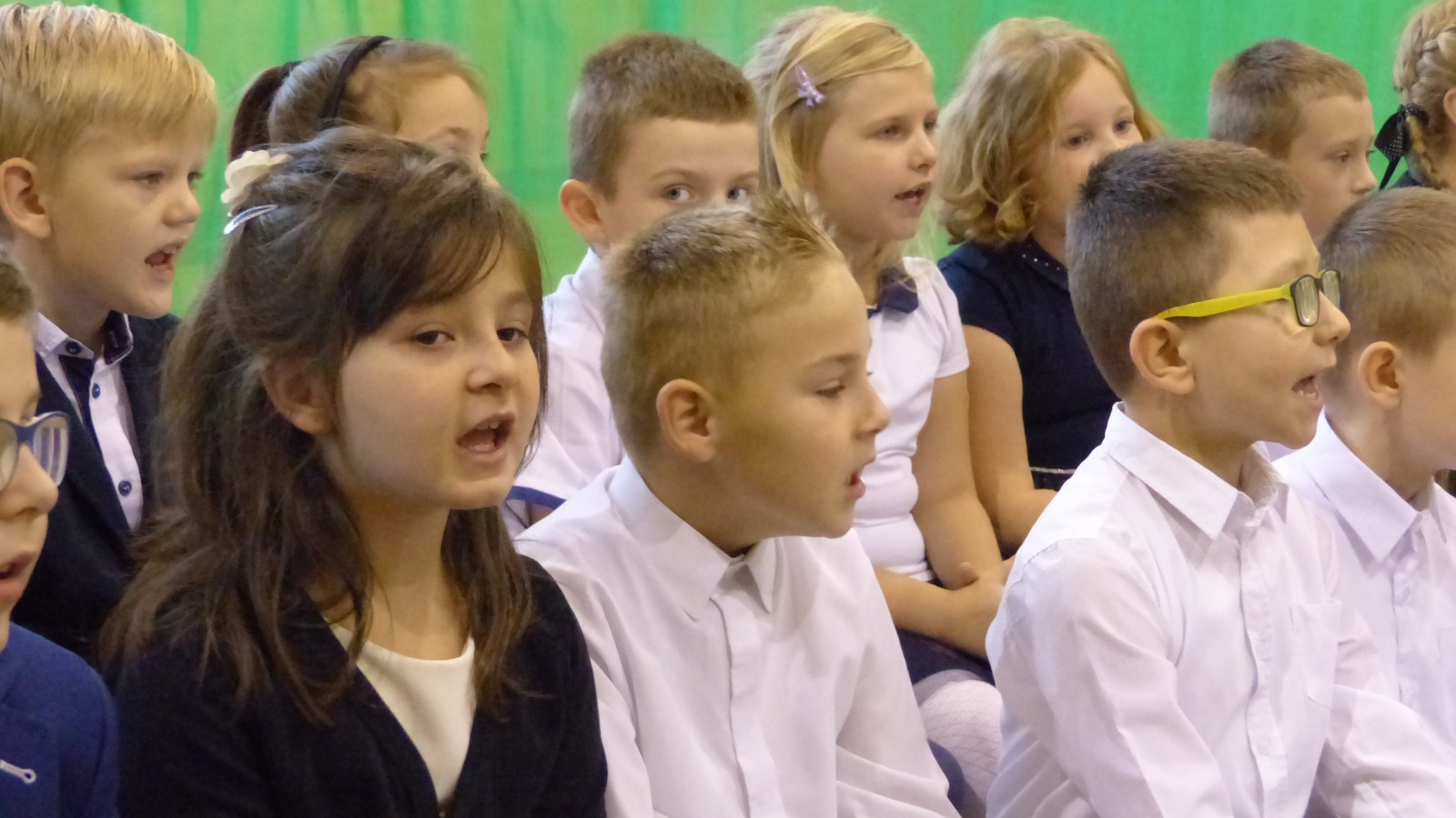 Oprócz części oficjalnej i poważnej była też część rozrywkowa. Dzieci śpiewały piosenki i recytowały wiersze. Uczniowie z klasy drugiej serdecznie powitały młodszych kolegów w szkole. Pod koniec uroczystości dla wszystkich zgromadzonych zaśpiewała uczennica piątej klasy Paula Biskup. Wszyscy mogli podziwiać jej talent rozwijany w naszej szkole i nagradzany wielokrotnie na różnych krajowych i międzynarodowych festiwalach.