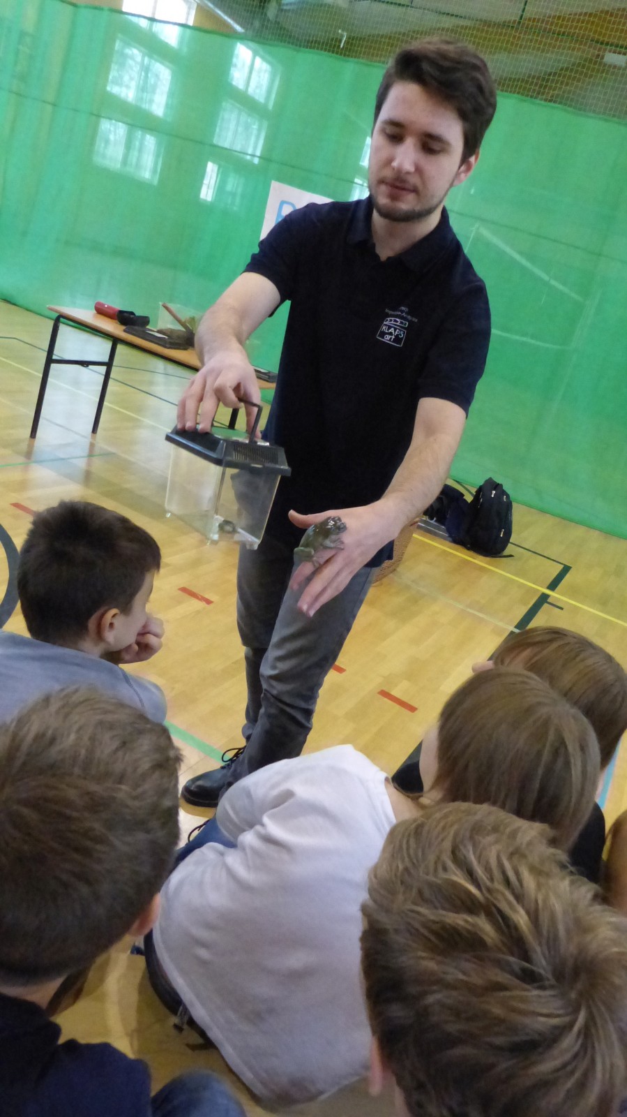 16 listopada 2017 roku w naszej szkole odbyła się żywa lekcja przyrody. Tematyką było życie płazów. Te całkiem nieduże zwierzęta mają wiele cech przystosowawczych. Mogliśmy na żywo zobaczyć płazy ze świata: ropuchę Agę, rzekotkę zieloną australijską, kumak dalekowschodni, traszki ogniste z Japonii i salamandrę tygrysią. W sposób spontaniczny i przyjemny poszerzyliśmy swoją wiedzę oraz przezwyciężyliśmy lęk przed nieznanym. Dowiedzieliśmy się, że najwięcej płazów jest w Indiach. W Polsce występuje 18 gatunków i wszystkie są pod ochroną. Wiele wrażeń i pozytywnych emocji było widać na naszych twarzach. Oby jak najwięcej takich lekcji jak dziś.