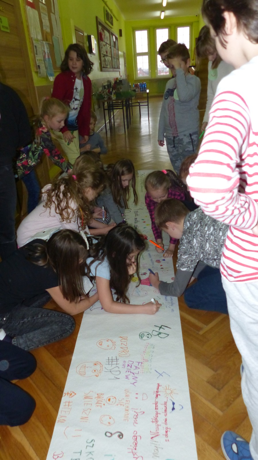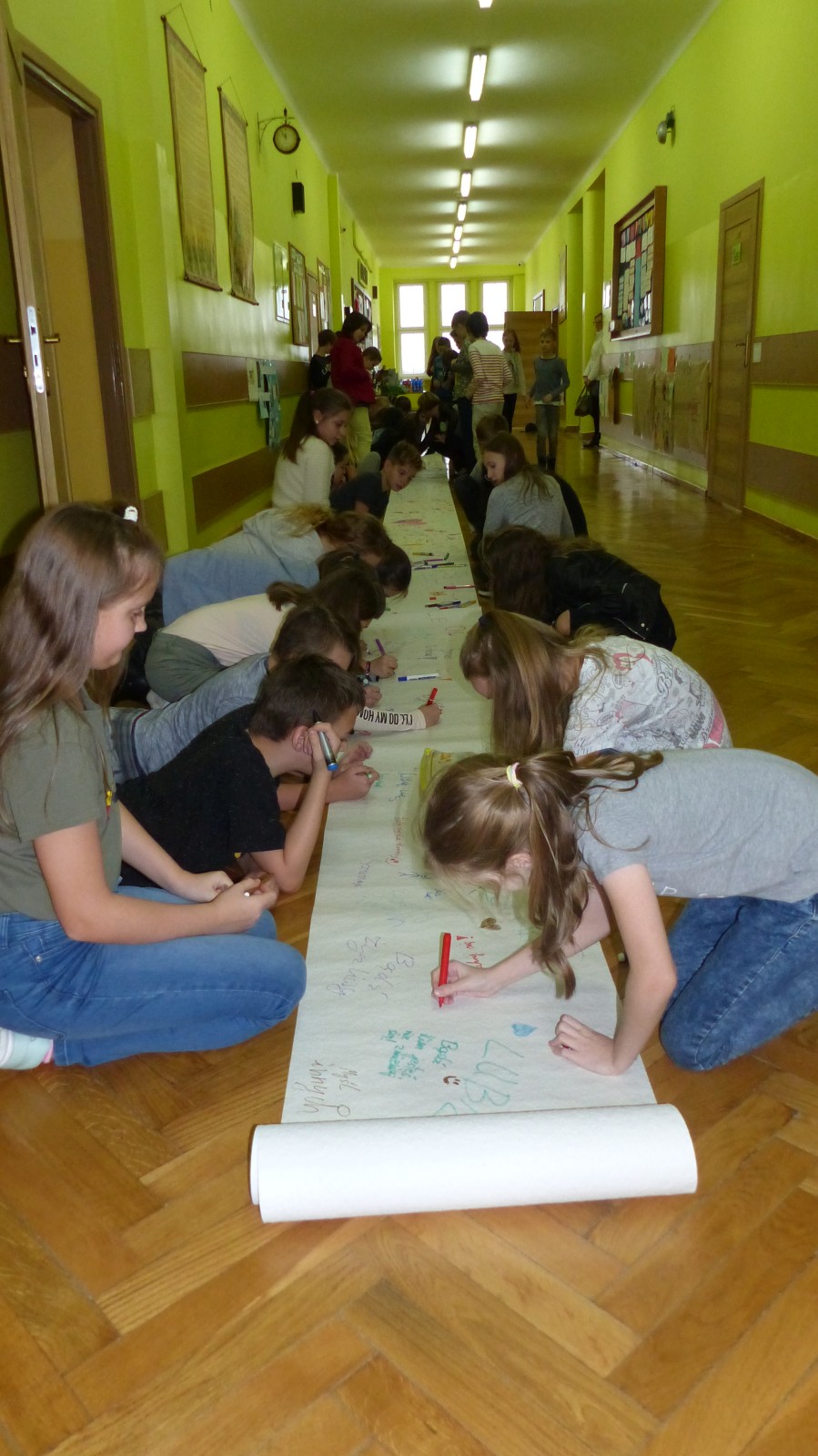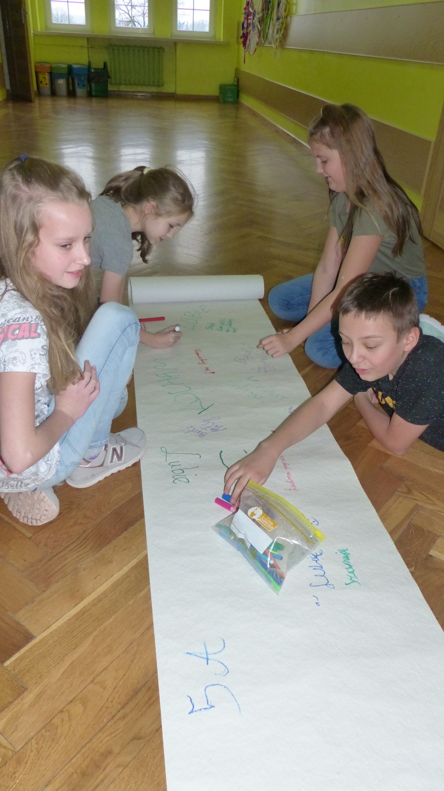 21 listopada 2017r. obchodziliśmy Światowy Dzień Życzliwości i Uśmiechu. W tym dniu razem tworzyliśmy „Mega Życzenia”. Uczniowie klas 4-6 i nauczyciele wpisywali życzenia, życzliwe słowa i hasła dla kolegów, koleżanek oraz bliskich osób. Inicjatorem „Mega Życzeń” był Samorząd Uczniowski.