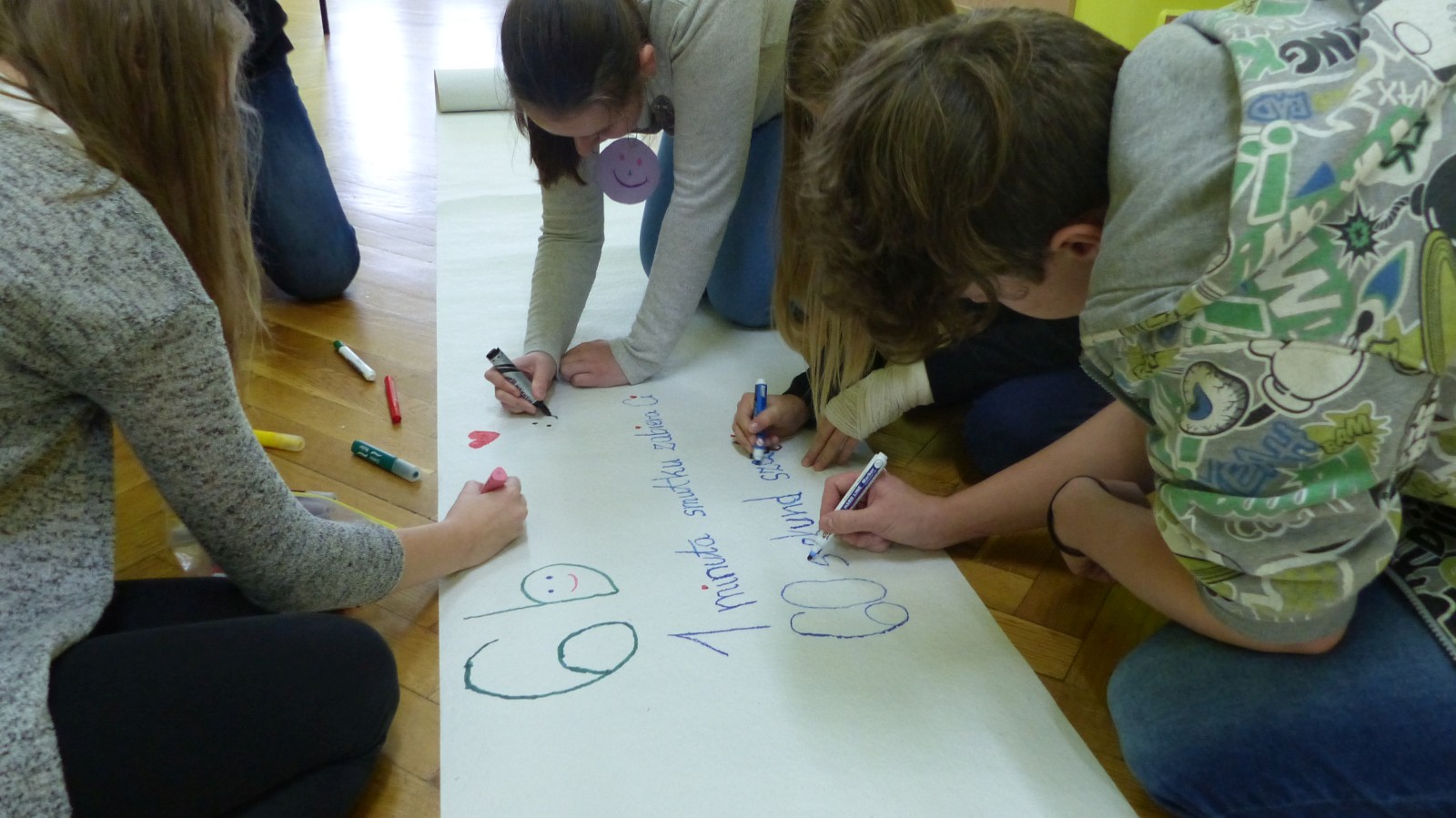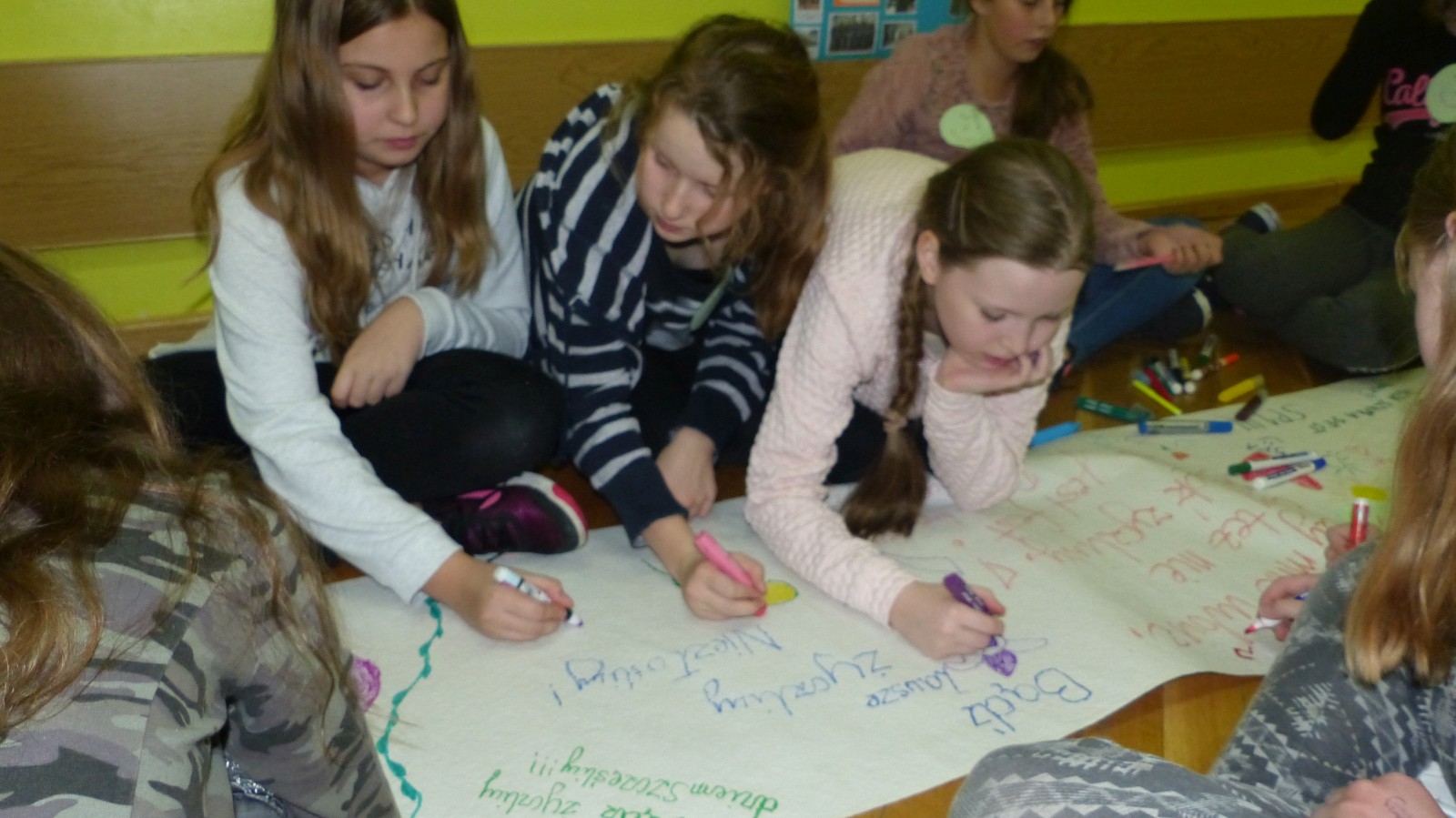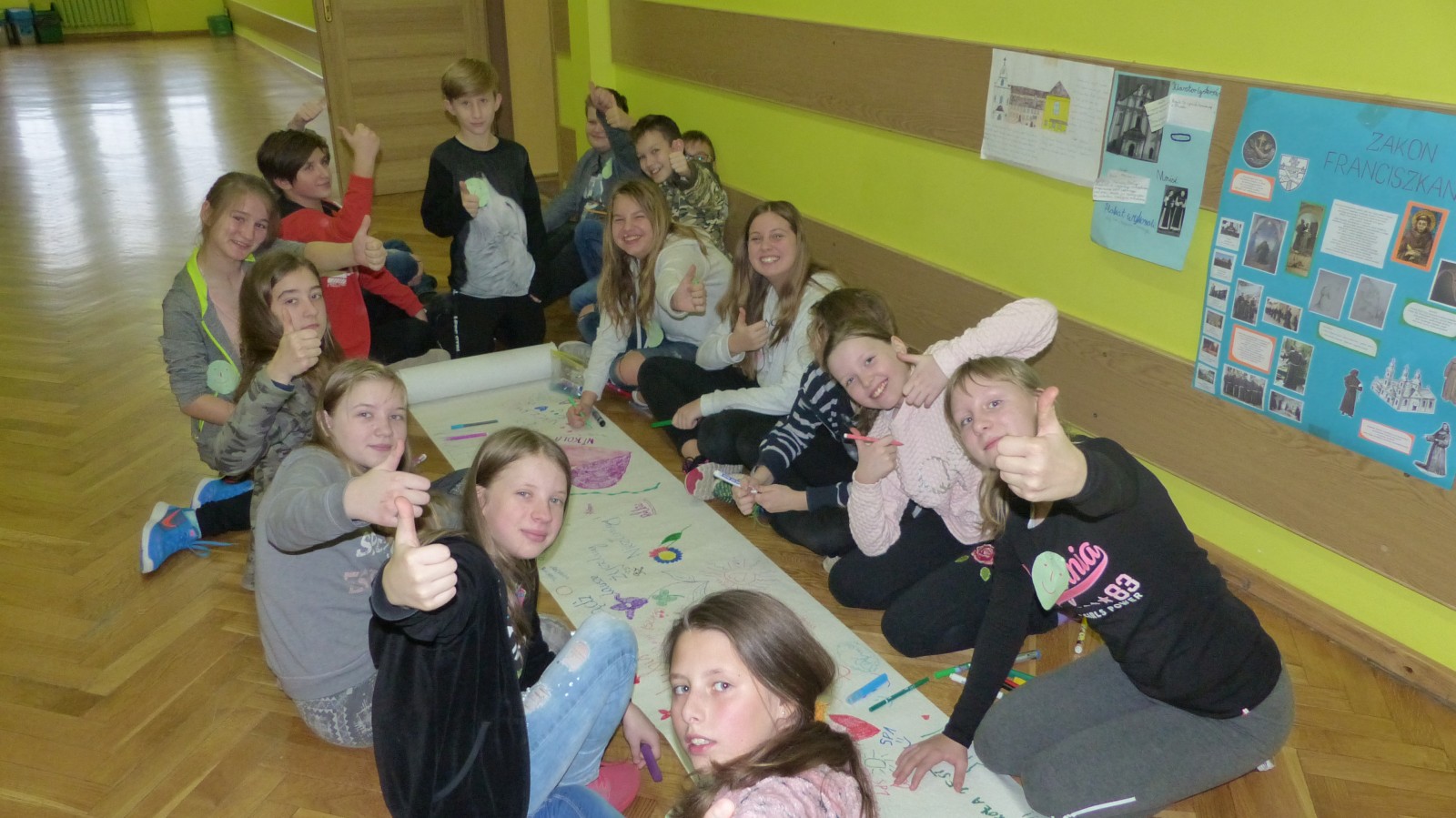 21 listopada 2017r. obchodziliśmy Światowy Dzień Życzliwości i Uśmiechu. W tym dniu razem tworzyliśmy „Mega Życzenia”. Uczniowie klas 4-6 i nauczyciele wpisywali życzenia, życzliwe słowa i hasła dla kolegów, koleżanek oraz bliskich osób. Inicjatorem „Mega Życzeń” był Samorząd Uczniowski.