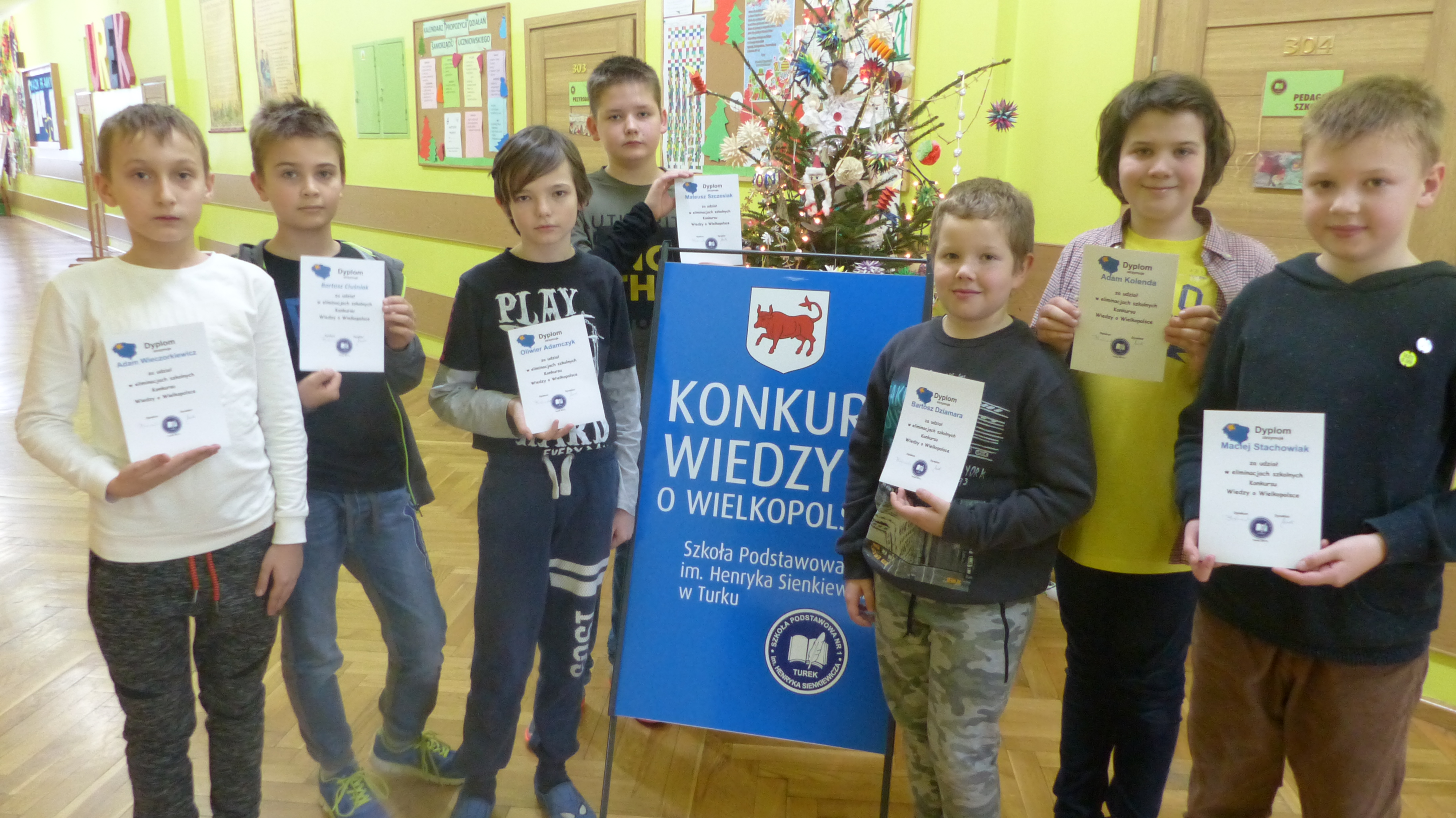 13 grudnia w naszej szkole odbyły się pisemne eliminacje szkolne XXII Konkursu Wiedzy o Wielkopolsce. Konkurs organizowany jest dla uczniów szkół podstawowych poziom klas IV-VII oraz dla uczniów klas II - III oddziałów gimnazjalnych. Jego celem jest przybliżenie uczniom dziedzictwa kulturowego regionu, popularyzowanie kultury regionalnej, rozwijanie zainteresowań regionem, jego historią i tradycją a także kształtowanie poczucia własnej tożsamości i postaw patriotycznych. Zadania konkursowe przygotowane zostały w oparciu o treści programu edukacyjnego "Wielkopolska moja mała ojczyzna" z uwzględnieniem zagadnień związanych z lokalnymi wydarzeniami. Do etapu powiatowego zakwalifikowali się następujący uczniowie: z klas IV - Bartosz Dziamara, Adam Kolenda, z klas V- Mateusz Szczesiak, z klas VII- Nina Grabara, Michalina Rosiak, z klas III gim. - Weronika Poszwa, Agata Straszewska, Kacper Woźniak.