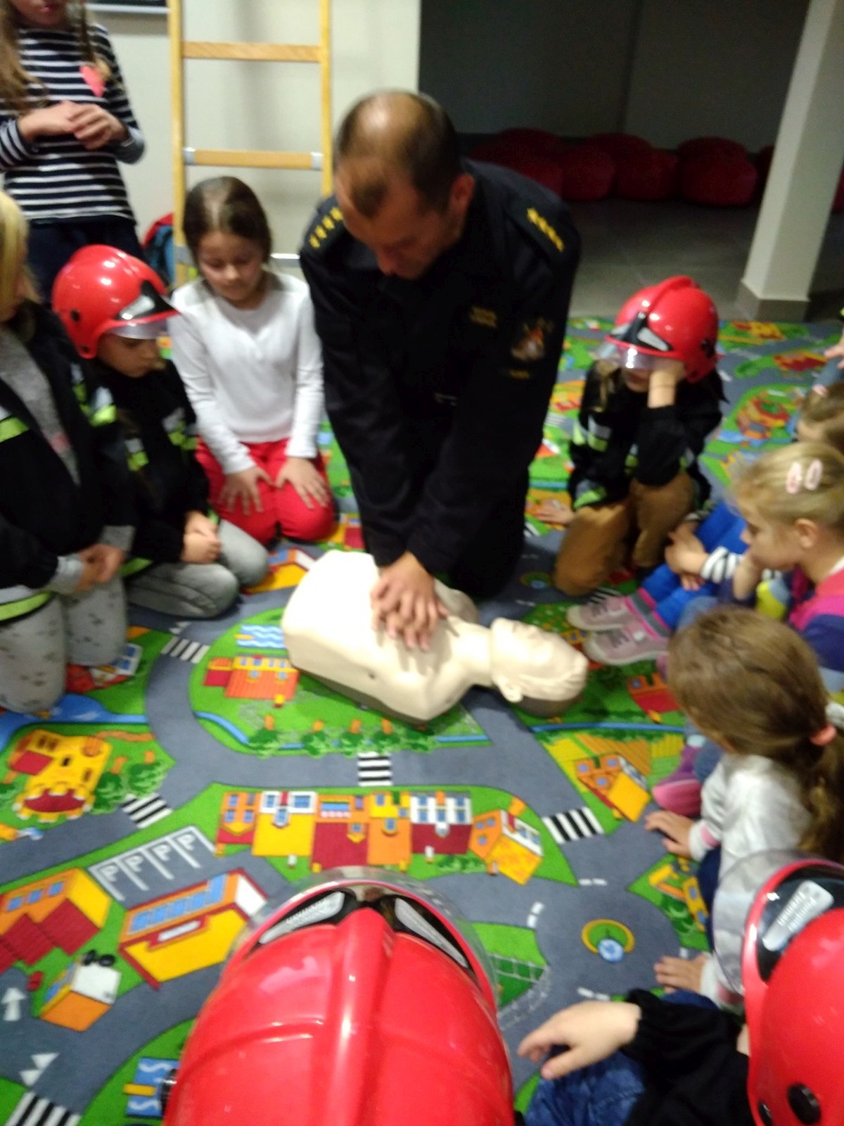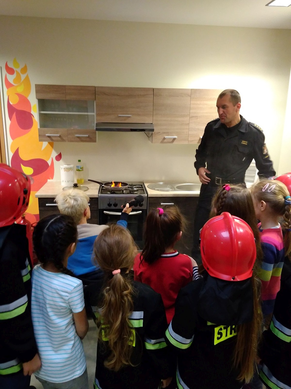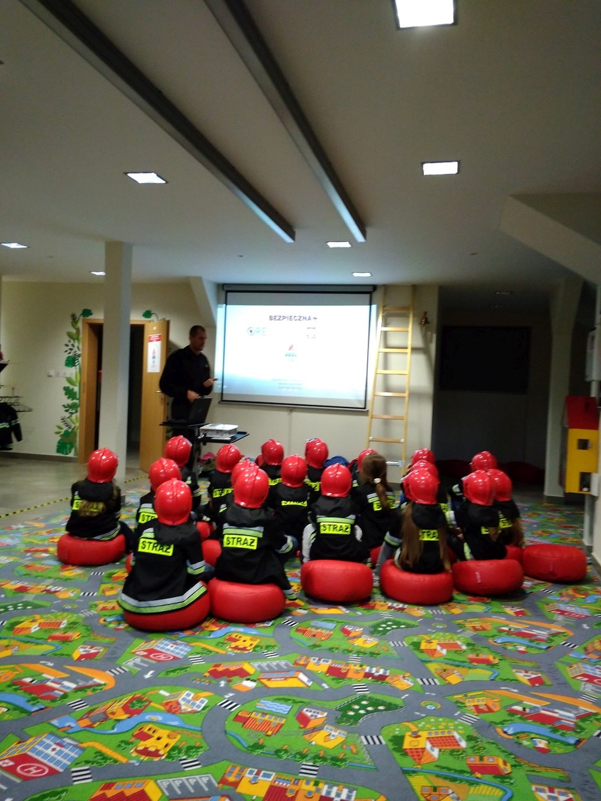 Ważnym punktem programu były zajęcia edukacyjne w salce OGNIK, która jest pierwszą taką salą w Wielkopolsce. Zajęcia przeprowadził pan Marcin Dzieran, który ma bardzo dobry kontakt z dziećmi. Na zajęcia złożyły się filmiki, rozmowy, pogadanki, działania praktyczne w formie zabawy. W sali dzieci zakładają mundury i hełmy strażackie w dziecięcych rozmiarach, co było dla nich bardzo atrakcyjne. W salce są też pufy do siedzenia, makieta domu jednorodzinnego, zabawowy wóz strażacki, zaimprowizowana kuchnia oraz pokój z kominkiem, żelazkiem i telewizorem. Zajęcia kończą się wręczeniem dyplomu każdemu dziecku.