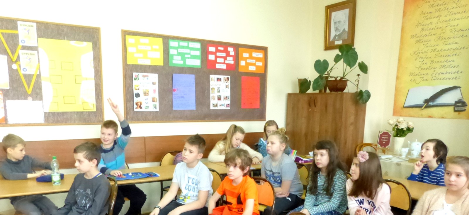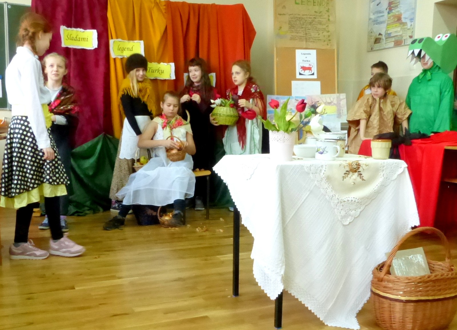 Dnia 7 lutego w kl. 4d odbyła się lekcja języka polskiego na temat „Śladami legend Turku i okolic”. Na lekcję przybył pan Bartosz Stachowiak, dyrektor Muzeum im. Józefa Mehoffera w Turku. Najpierw uczniowie przekonali pana dyrektora, że doskonale znają różne polskie legendy. Dowodem na to było przedstawienie „Legendy o Bazyliszku”. Trafnie zgromadzone rekwizyty, doskonała gra aktorska oddały charakter życia mieszkańców dawnego Krakowa. Przedstawienie o strasznym Bazyliszku podziwiali pierwszoklasiści i pani Izabela Ochota, która dumnie patrzyła na swoich byłych wychowanków.