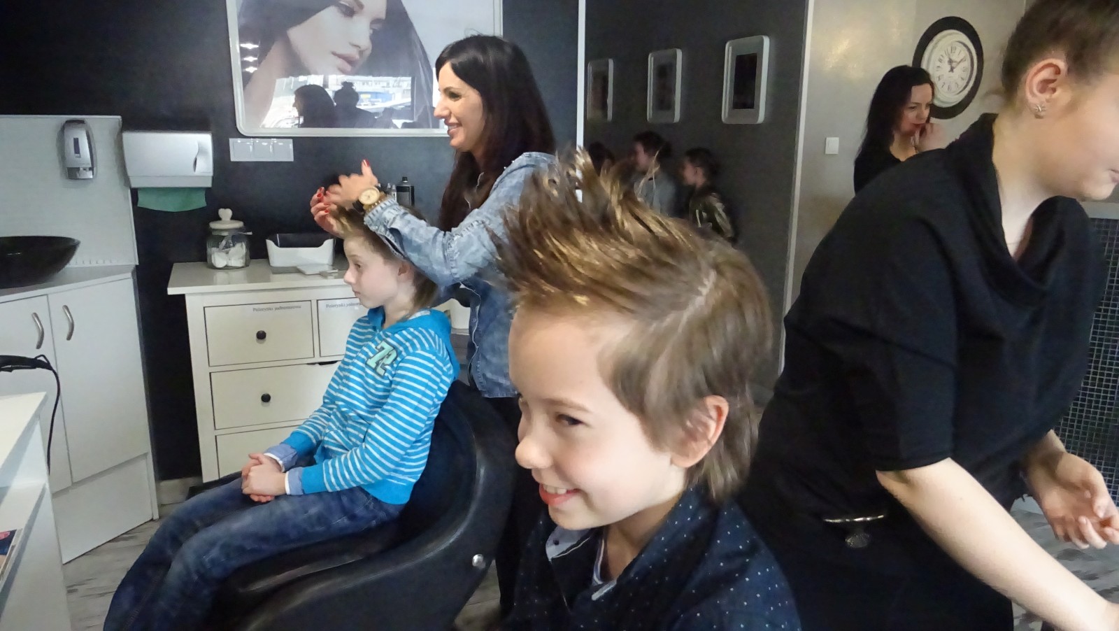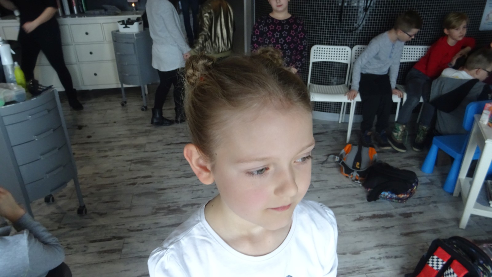 Wizytę w profesjonalnym salonie fryzjerskim i możliwość wybrania dowolnej fryzury. Taki prezent z okazji Dnia Kobiet, otrzymały od chłopców i rodziców dziewczynki z klasy 2c. Panie fryzjerki wykonały fryzury także chłopcom. Wszystko według życzeń młodych klientów. Pobyt w salonie umilił dzieciom słodki poczęstunek przygotowany przez właścicielkę.