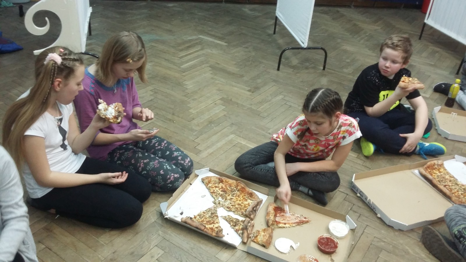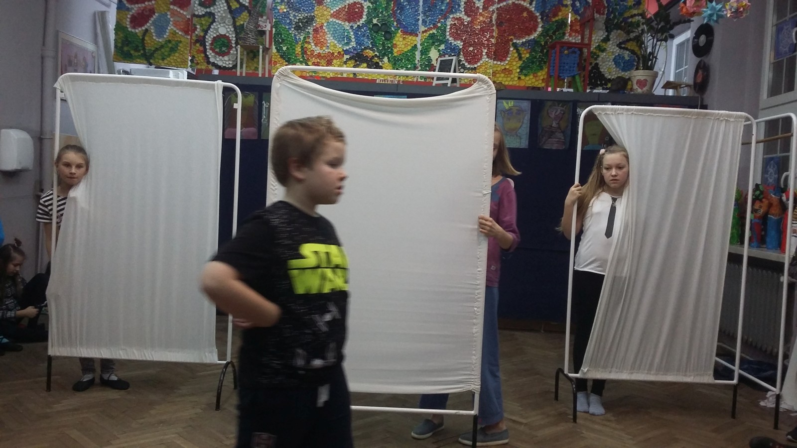 O godzinie 19:00 uczniowie zebrali się przed salą 305. Każdy miał plecak, zapakowany po brzegi jedzeniem, ubraniami i innymi potrzebnymi rzeczami. Ponieważ noc dzieci spędzały w murach szkoły, niezbędny był śpiwór, ciepły koc i poduszki. Na początku należało przygotować się do próby: rozłożyć rekwizyty i przebrać się w stroje teatralne. Następnie wszyscy ochoczo zabrali się do gry. Przez kilka godzin ćwiczyli poszczególne kwestie przedstawienia. Powtarzali najważniejsze i najtrudniejsze sceny oraz wymyślali nowe. W trakcie próby zrobili sobie krótką przerwę, podczas której zjedli pizzę. Po ciężkiej, ale bardzo satysfakcjonującej pracy udało się stworzyć widowisko, którego efekt widoczny będzie dopiero na prawdziwej scenie. Wtedy wszystko się okaże, zwłaszcza w konfrontacji z publicznością.