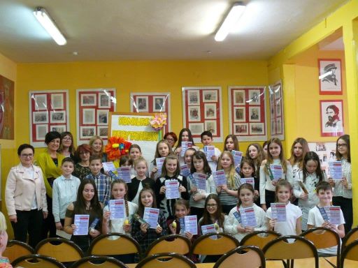 Przez dwie godziny w sali na trzecim piętrze rozbrzmiewała poezja w najlepszym wykonaniu. Podczas konkursu atmosfera między uczestnikami była bardzo miła i koleżeńska. Mimo stresu, wszystkie dzieci świetnie się bawiły, prezentując swój talent recytatorski. Po wysłuchaniu prezentacji komisja artystyczna: Joanna Trembasiewicz, Aldona Piwońska, Emilia Kozłowska, Elżbieta Nowak i Grażyna Sujewicz postanowiła nagrodzić Brunona Grabarę (1d), Gabrielę Marciniak (2c), Amelię Sobczyk (4d), Maję Walas (4d), Paulę Biskup (5c), Nadię Przygońską (6d) i Ninę Grabarę (7d). Laureaci reprezentować będą szkołę w kolejnych etapach konkursu.