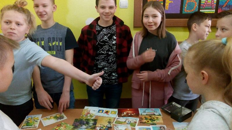 Zaangażowaliśmy się również w pomoc fundacji AMUN. Na szkolnych korytarzach wolontariusze i inni chętni uczniowie prowadzili sprzedaż kartek świątecznych przekazanych nam przez Wydawnictwo Artystów Malujących Ustami i Nogami. Uczniowie chętnie nabywali te oryginalne pocztówki, a uzyskany dochód uzyskaliśmy przekazaliśmy na konto artystów zmagających się z niepełnosprawnością.