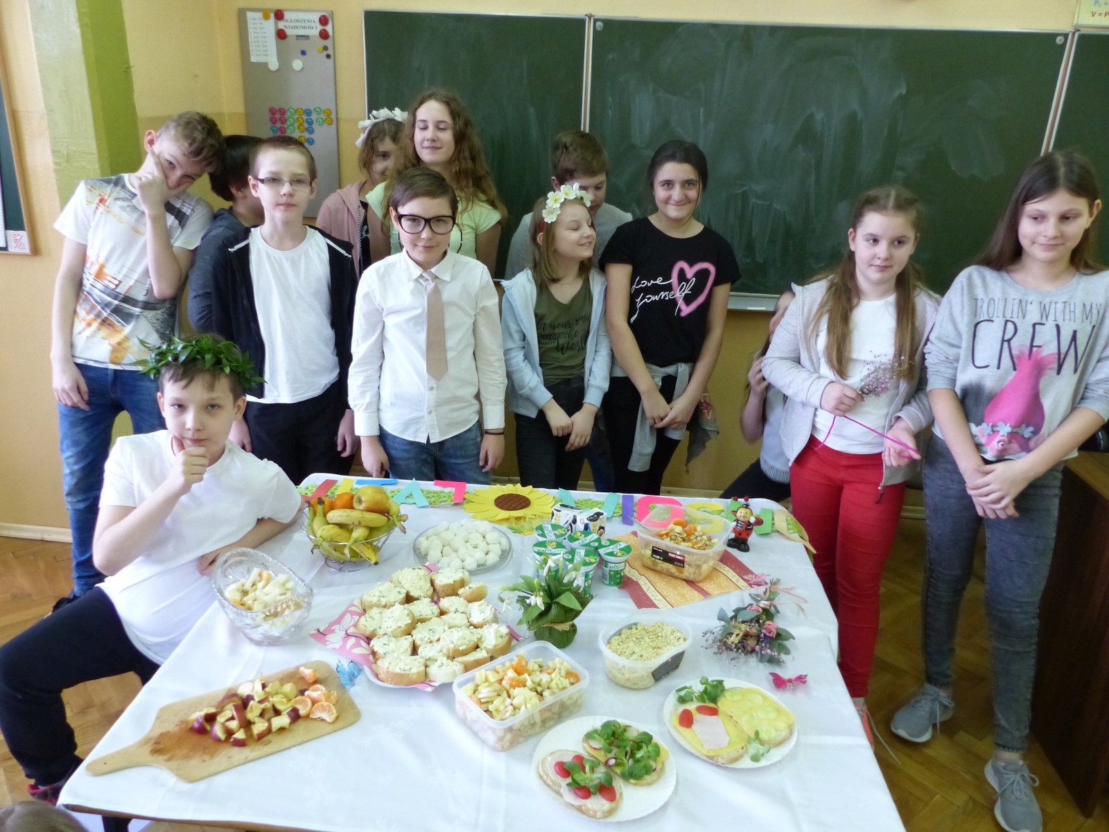 W ramach obchodów Światowego Dnia Zdrowia na zajęciach propagowane były treści związane z tematem przewodnim. Uczniowie klas IV opracowywali plakaty z układem pokarmowym oraz piramidą zdrowego żywienia i aktywności fizycznej. W klasach I-III przeprowadzono zajęcia z pielęgniarką szkolną na temat zdrowego odżywiania i higieny podczas przygotowywania posiłków. Dzieci przygotowywały na zajęciach technicznych zdrowe i kolorowe kanapki oraz sałatki, a na zajęciach plastycznych plakaty promujące zdrowy styl życia.