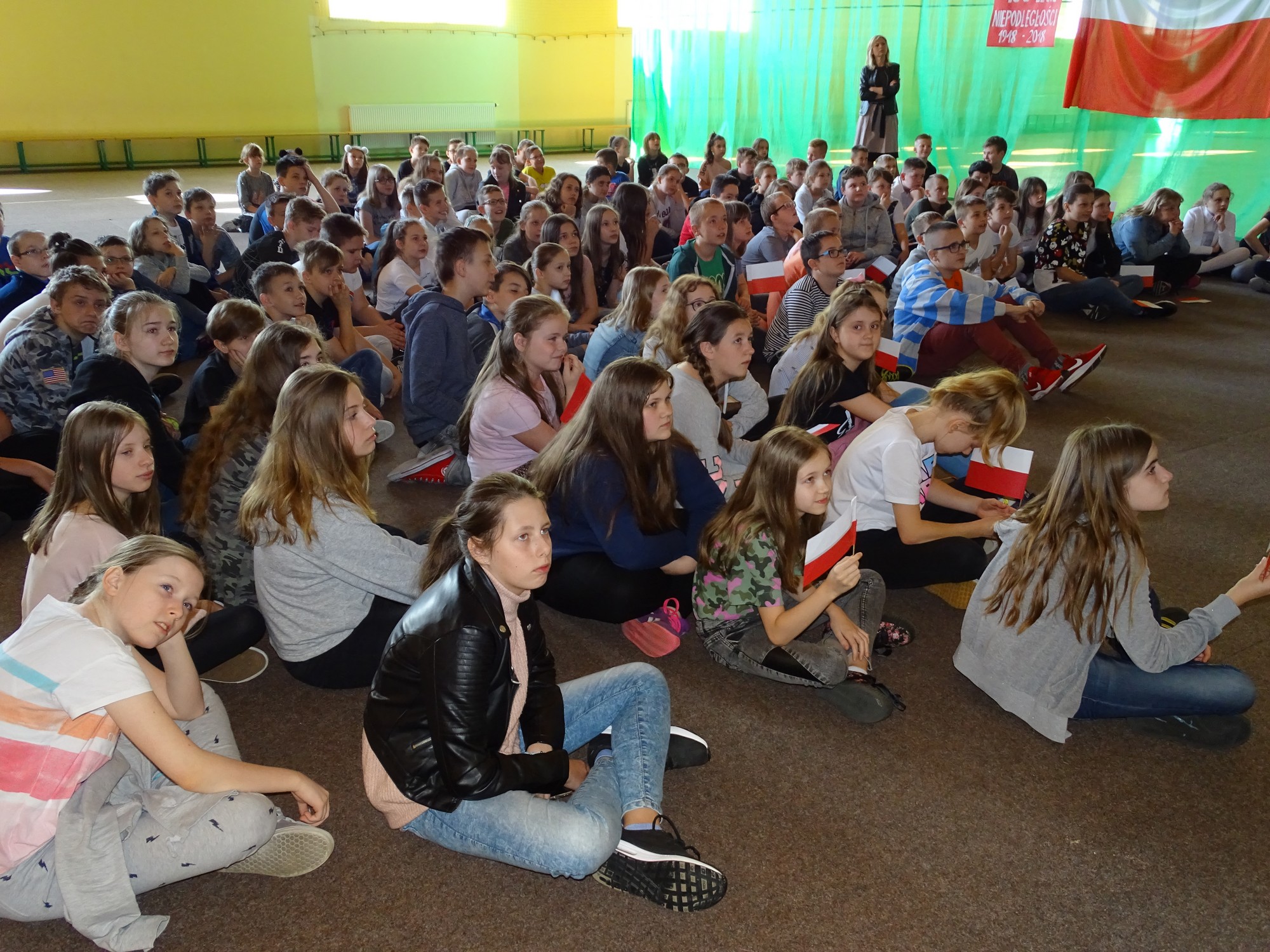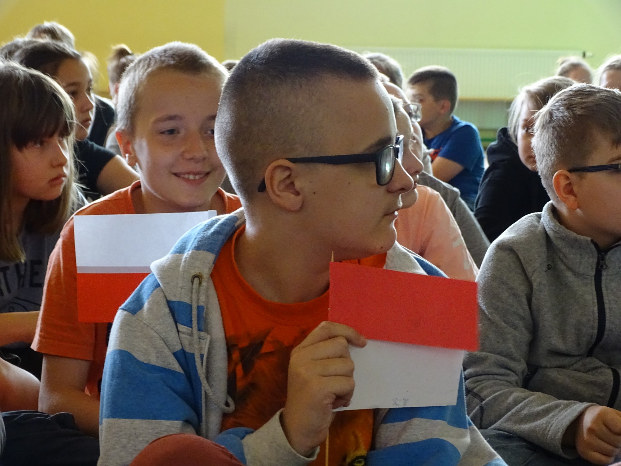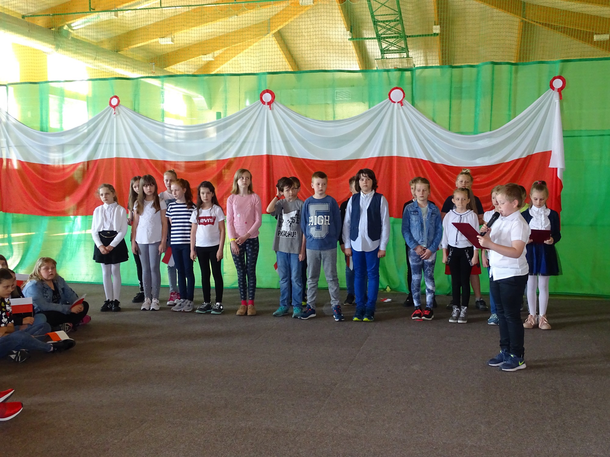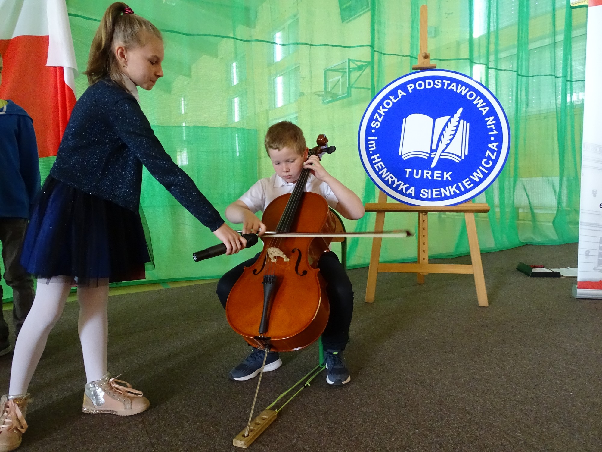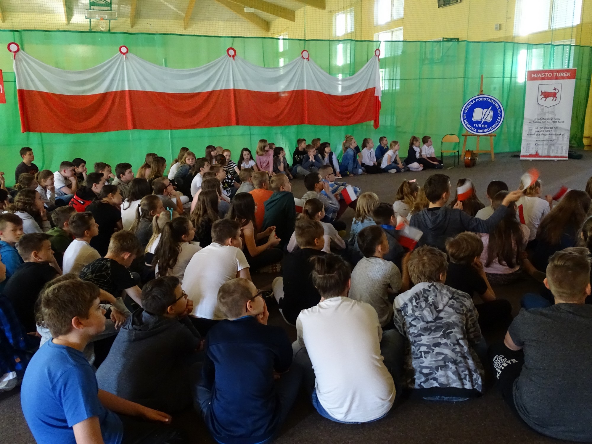 Dla uczczenia Święta Flagi w Rzeczypospolitej Polskiej uczniowie klasy 4d zaprosili dyrekcję, nauczycieli i uczniów ze Szkoły Podstawowej im. Henryka Sienkiewicza w Turku do udziału w happeningu. Uczniowie stworzyli żywą flagę z biało-czerwonych kartek .Uczestnicy poznali historię symboli narodowych ,obejrzeli krótką prezentację, mieli też okazję do wysłuchania utworu pt. „Te Deum” wykonanego na wiolonczeli przez Bartka Dziamarę z klasy 4d. Na koniec, przyjmując odpowiednią postawę, dumnie odśpiewali 4 zwrotki naszego hymnu. W ten sposób społeczność „Jedynki” wyraziła przywiązanie i szacunek do symboli narodowych oraz patriotyzmu.