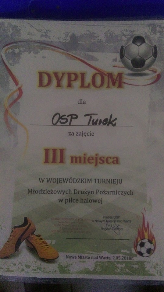 wywalczyła III miejsce w II Wojewódzkim Turnieju Drużyn Pożarniczych w Piłce Halowej. Turniej odbył się w hali widowiskowo-sportowej w Nowym Mieście nad Wartą. W zawodach wzięły udział drużyny z Wielkopolski. Chłopcy otrzymali puchar, pamiątkowe dyplomy i nagrody rzeczowe. Młodych piłkarzy wspierali Piotr Bińkowski wiceprezes OSP Turek i dh Andrzej Majda, nauczyciel wychowania fizycznego oraz opiekun MDP.
