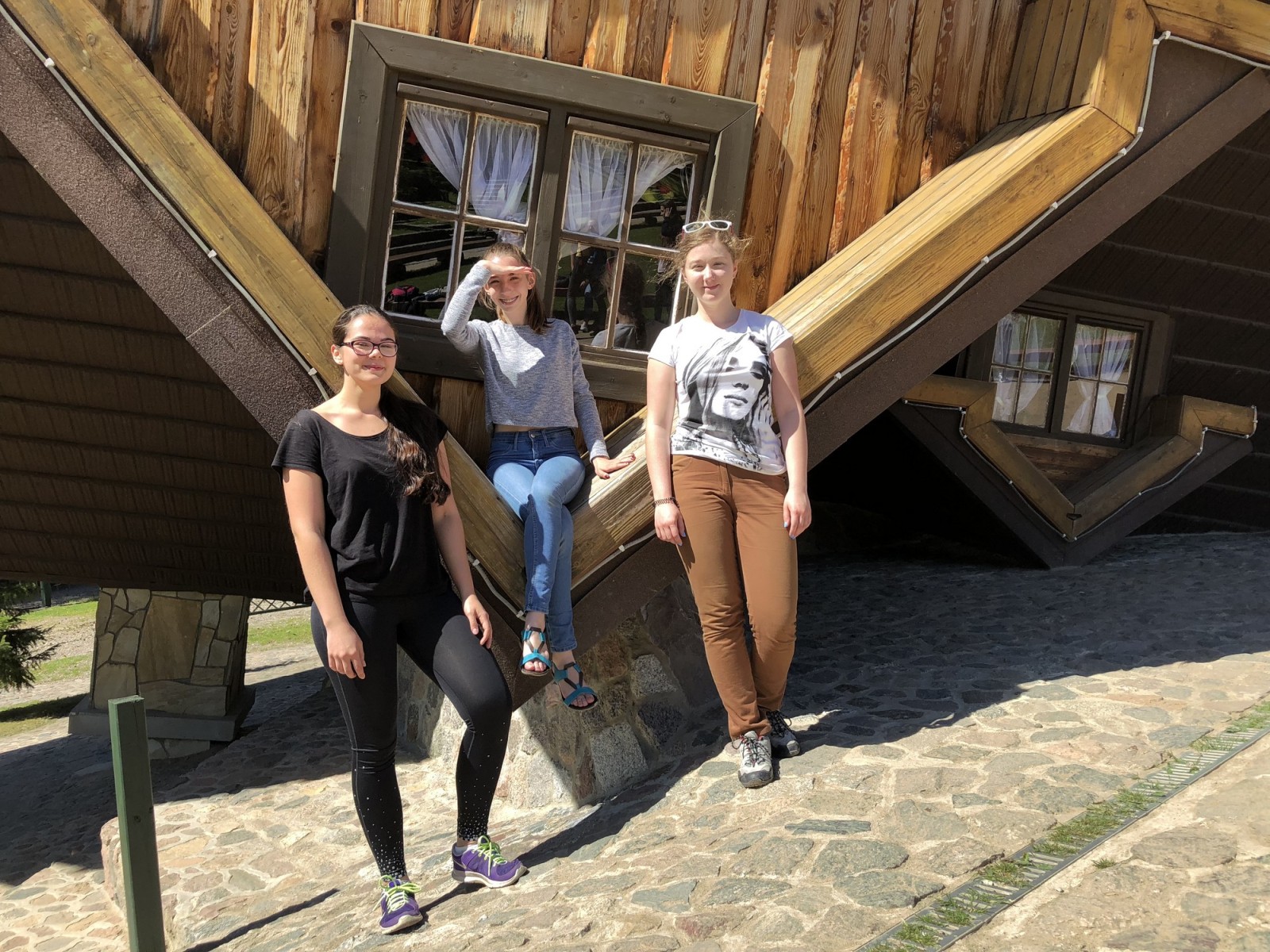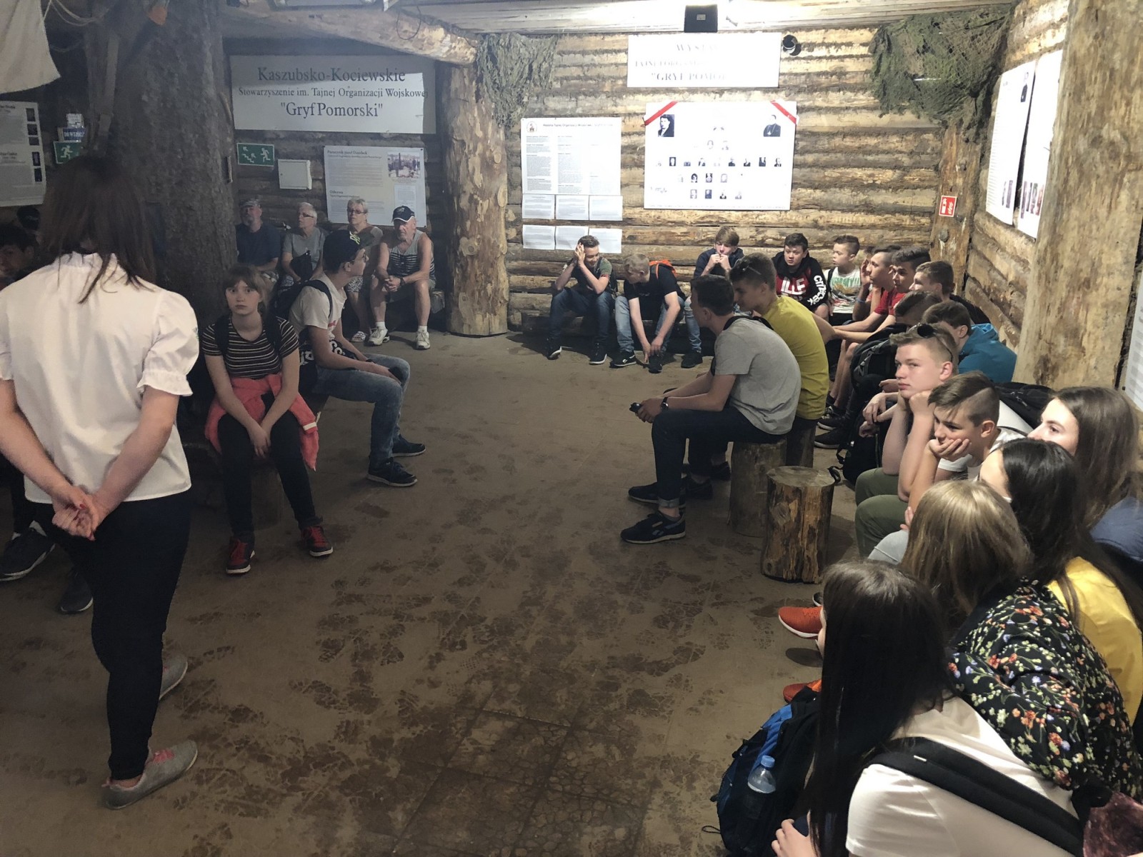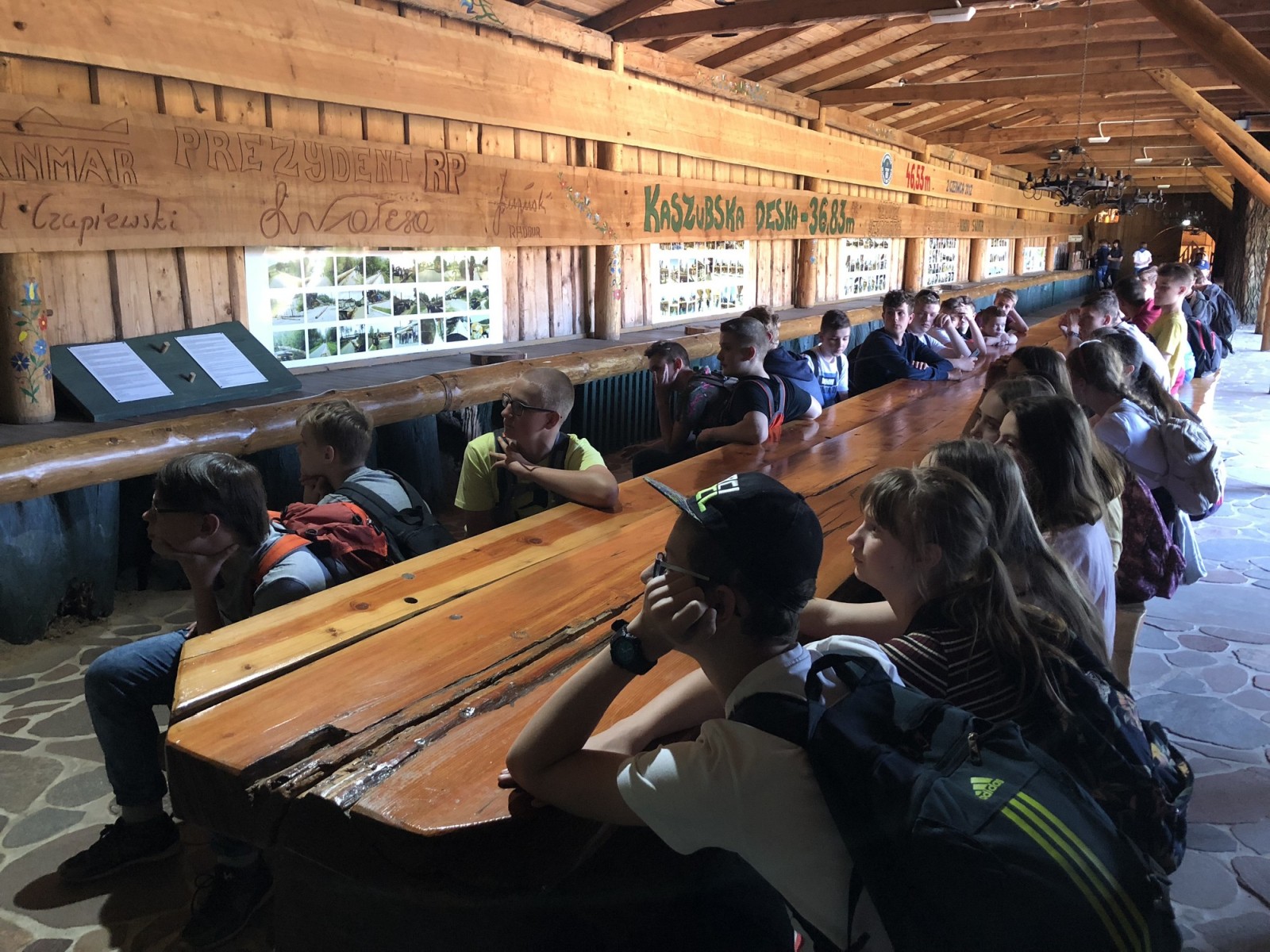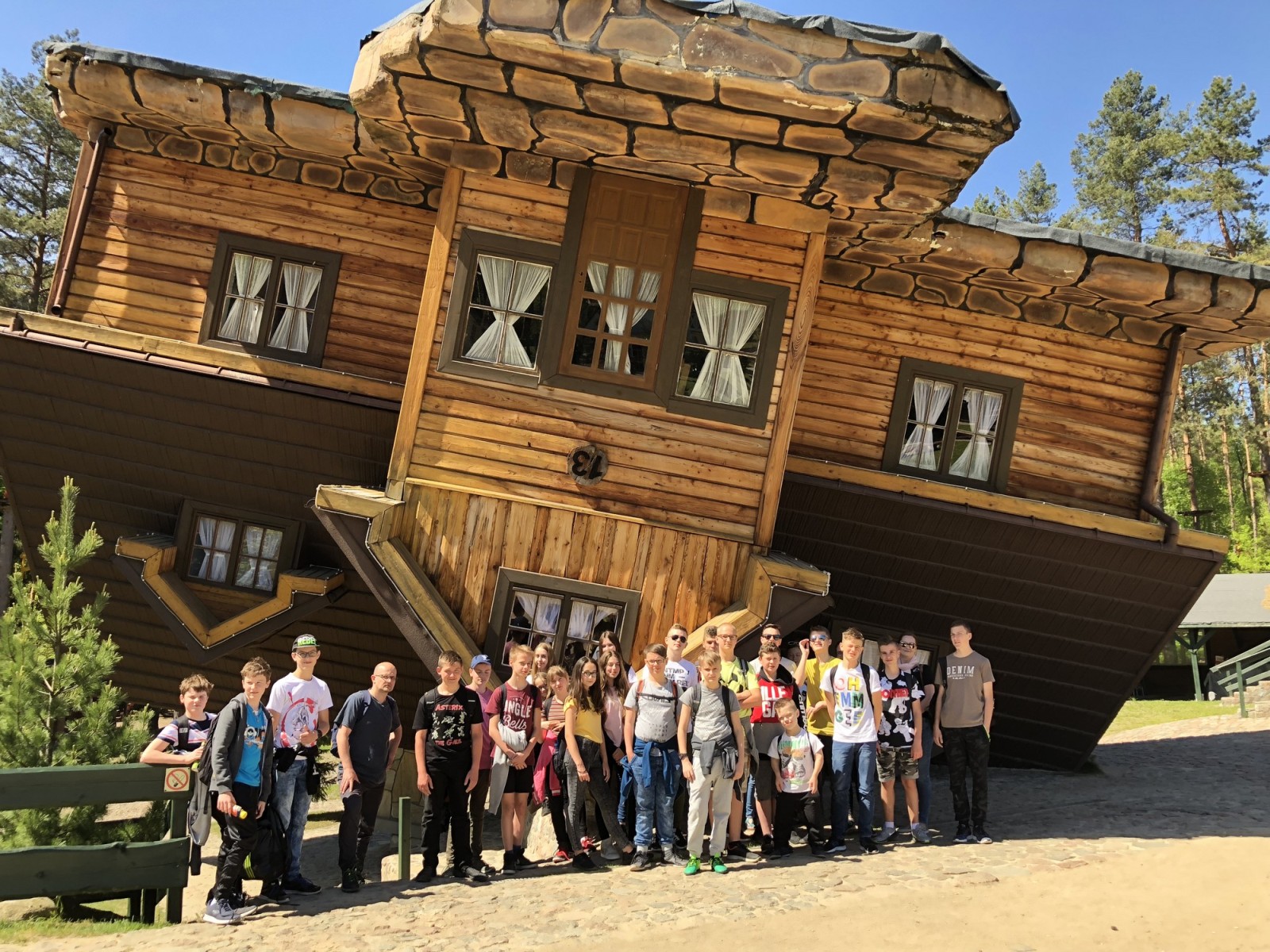 Słoneczna pogoda i dobre humory towarzyszyły uczniom w zwiedzaniu Szymbarka, gdzie podziwialiśmy najdłuższą deskę świata. Braliśmy także udział w symulacji nalotu bombowego w bunkrze. Niewątpliwą atrakcją był dom do góry nogami, po wizycie w którym tylko nieliczni nie mieli zawrotów głowy.