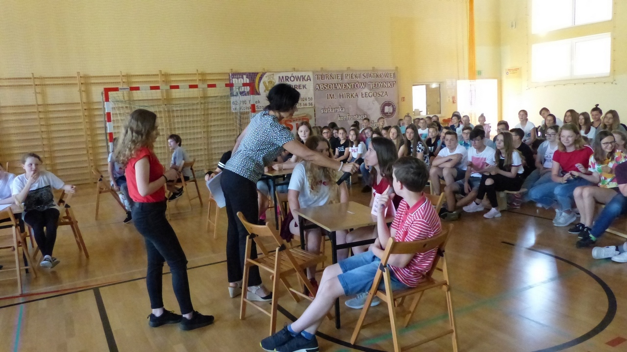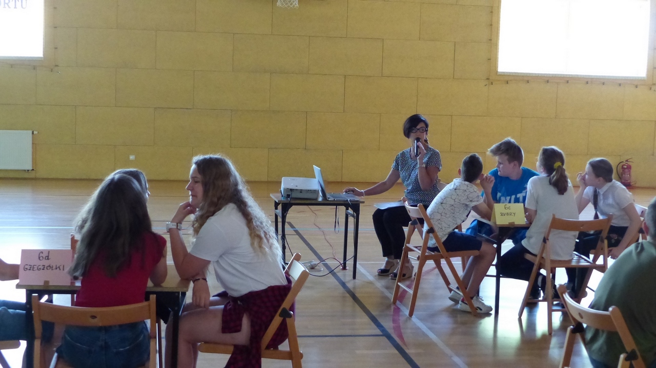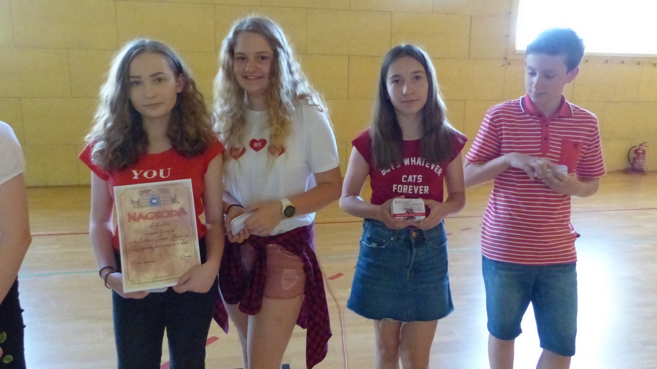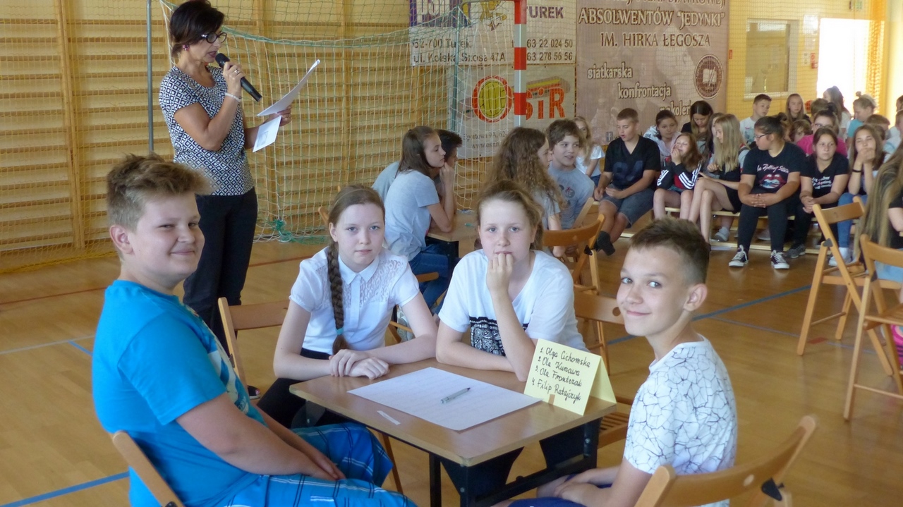Kiedy drużyny rozwiązywały zadania, chętni uczniowie z widowni również mieli możliwość zaprezentowania swojej wiedzy językowej, wyjaśniając frazeologizmy i bawiąc się w kalambury. W tym czasie wszyscy wysłuchali recytacji wierszy w wykonaniu mistrzyń słowa: Mai Walas, Amelii Sobczyk, Pauli Biskup, Natalii Jurkiewicz i Nadii Przygońskiej. Po zakończeniu turnieju komisja sprawdziła prace i wyłoniła zwycięzców, którymi okazali się uczniowie z klasy 6b. Po wręczeniu dyplomów i rozdaniu nagród uczniowie zgodnie stwierdzili: “ Język, którym się posługujemy, świadczy o nas, o naszej kulturze, dlatego warto posługiwać się poprawną polszczyzną".