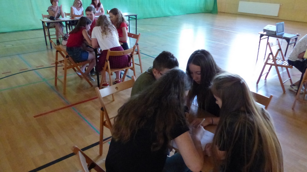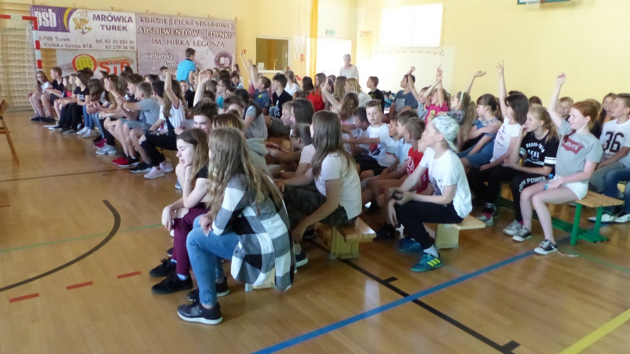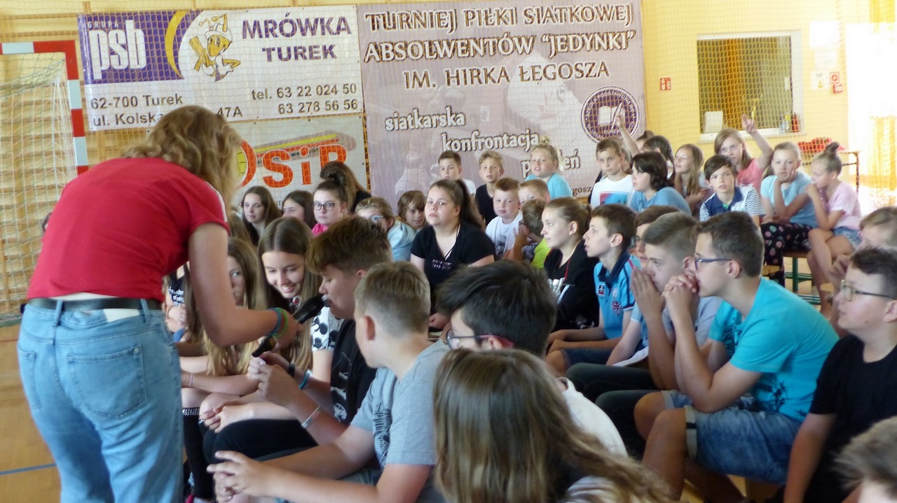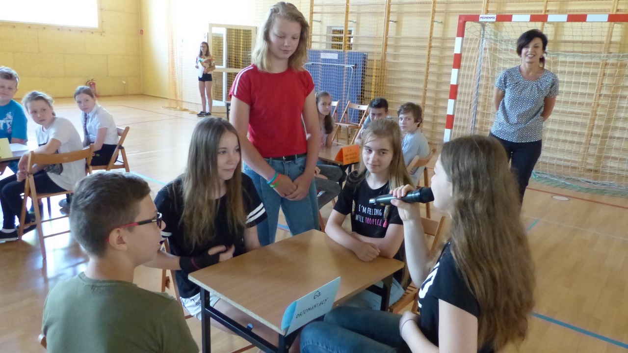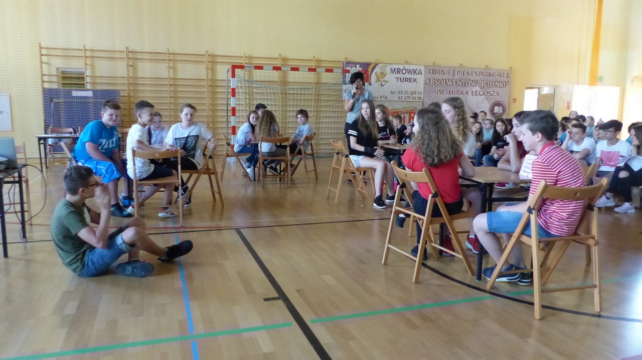Kiedy drużyny rozwiązywały zadania, chętni uczniowie z widowni również mieli możliwość zaprezentowania swojej wiedzy językowej, wyjaśniając frazeologizmy i bawiąc się w kalambury. W tym czasie wszyscy wysłuchali recytacji wierszy w wykonaniu mistrzyń słowa: Mai Walas, Amelii Sobczyk, Pauli Biskup, Natalii Jurkiewicz i Nadii Przygońskiej. Po zakończeniu turnieju komisja sprawdziła prace i wyłoniła zwycięzców, którymi okazali się uczniowie z klasy 6b. Po wręczeniu dyplomów i rozdaniu nagród uczniowie zgodnie stwierdzili: “ Język, którym się posługujemy, świadczy o nas, o naszej kulturze, dlatego warto posługiwać się poprawną polszczyzną".