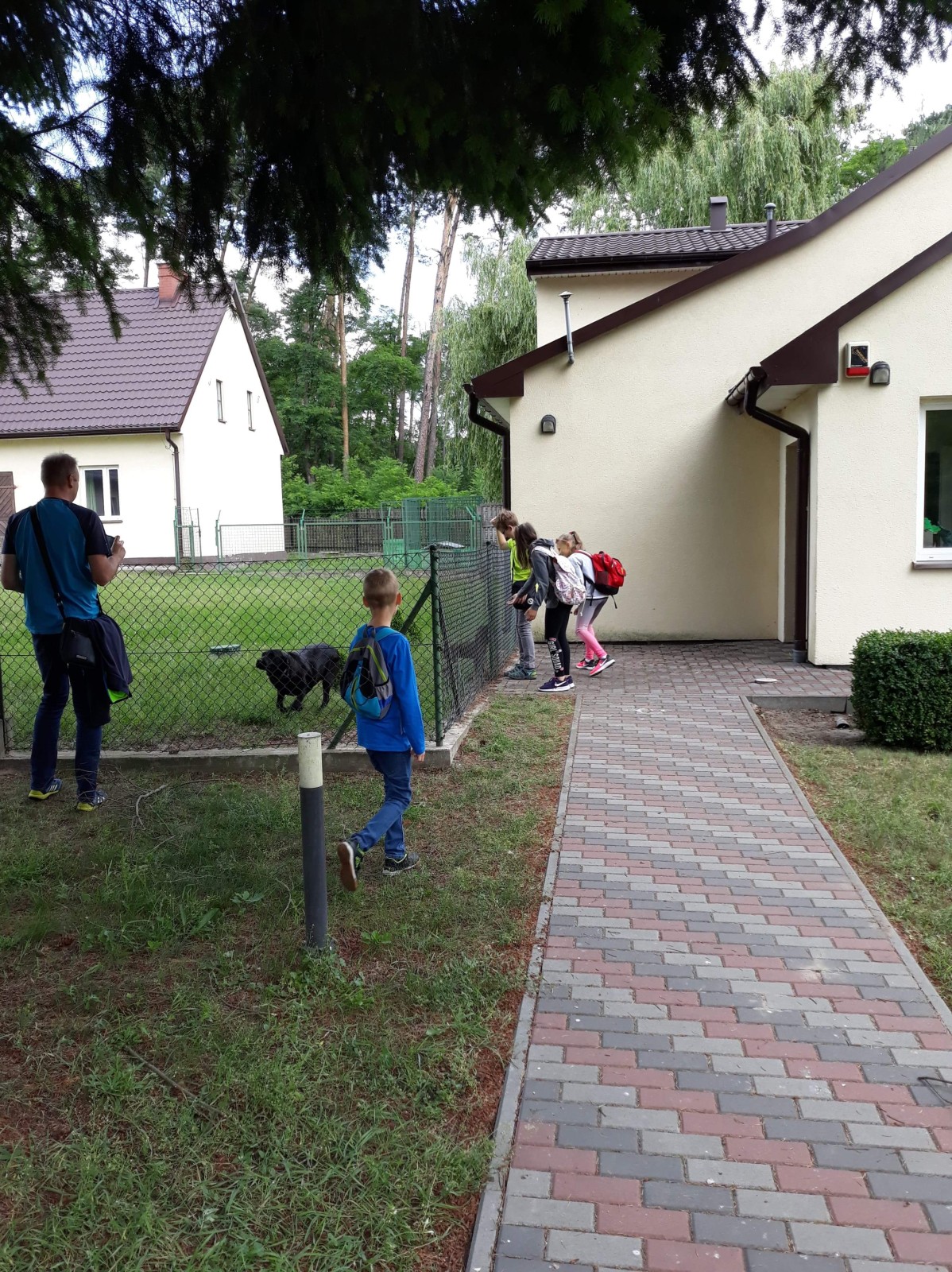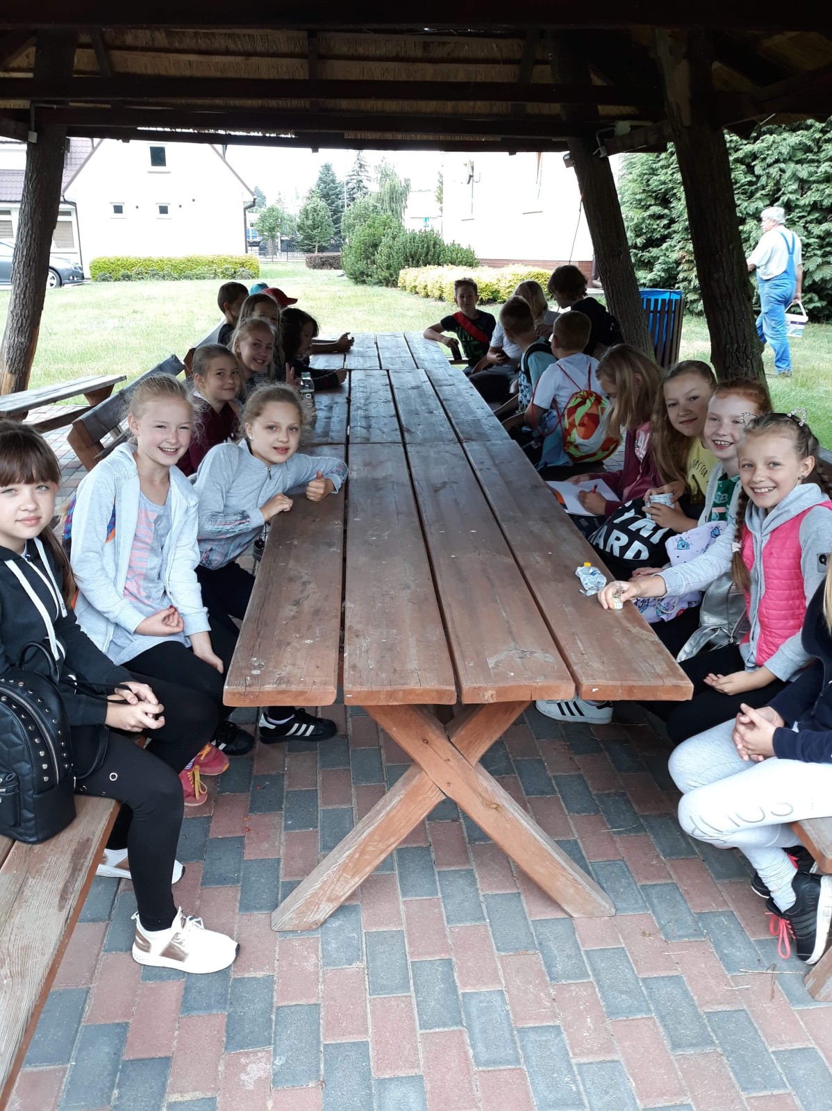 Po tych opowieściach udaliśmy się do drzewa z czereśniami, każdy z nas mógł skosztować po kilka czereśni zerwanych prosto z drzewa. Później udaliśmy się do izby edukacyjnej, gdzie podziwialiśmy zdjęcia otaczającej przyrody. Następnie wraz z panem leśniczym wyruszyliśmy na wyprawę do lasu, gdzie wysłuchaliśmy ciekawych informacji o roślinności leśnej. W tak miłej atmosferze dotarliśmy do naszego celu, gdzie czekało na nas ognisko z kiełbaskami. Byliśmy bardzo uradowani. Pieczone kiełbaski były naprawdę dobre. Wreszcie przyszedł czas na zabawy i gry , bawiliśmy się wspólnie znakomicie. W końcu przyszedł czas na powrót do szkoły. To był bardzo przyjemny dzień. Dziękujemy naszej pani i rodzicom za zorganizowanie tej wspaniałej wycieczki.