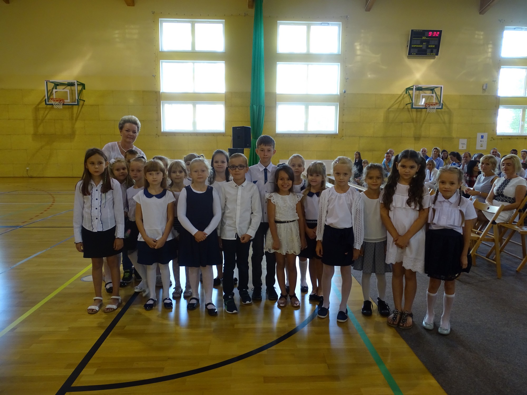 Podczas swojego wystąpienia dyrektor szkoły p. Elżbieta Pokojowa, życzyła wszystkim uczniom wielu sukcesów w nowym roku szkolnym. Szczególnie ciepło zostali powitani najmłodsi uczniowie, którzy rozpoczęli swoją edukacyjną przygodę. Wicedyrektor szkoły przedstawiła pierwszoklasistom i ich rodzicom wychowawców klas. Nie mogło też zabraknąć pierwszego wspólnego pamiątkowego zdjęcia.