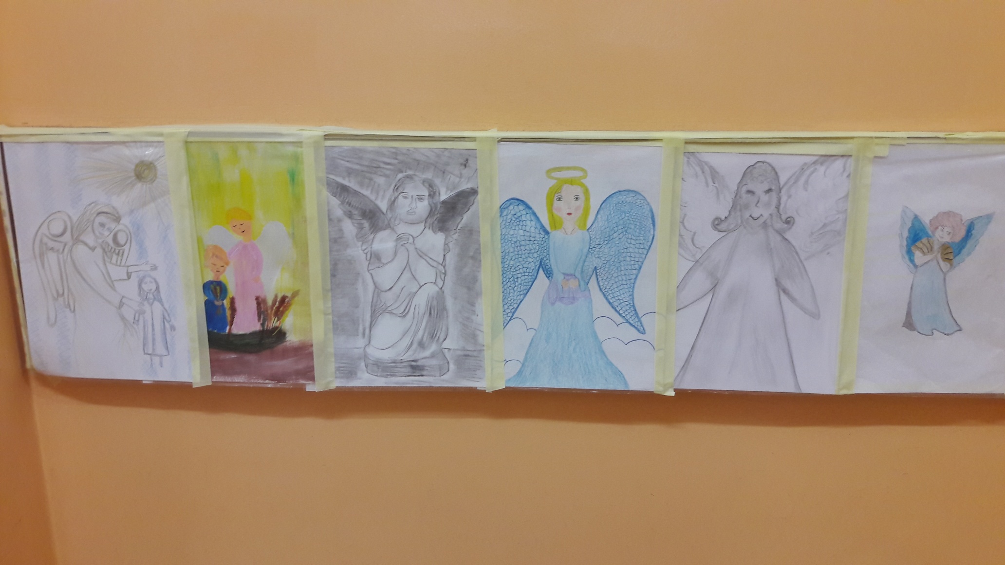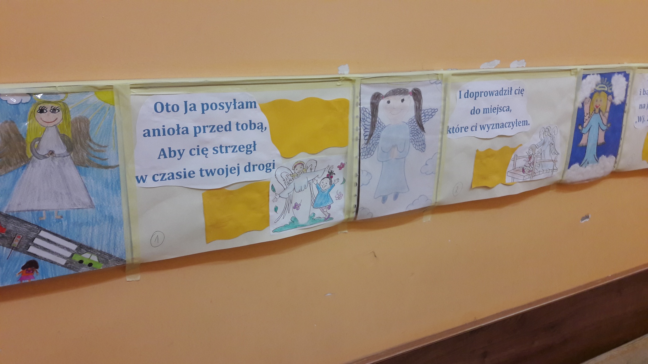 Dzieci z klas najmłodszych w szkolnej akcji „Z Aniołami na katechezie” zaprezentowały swoje prace.