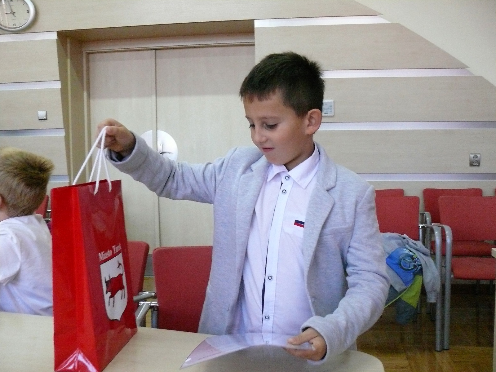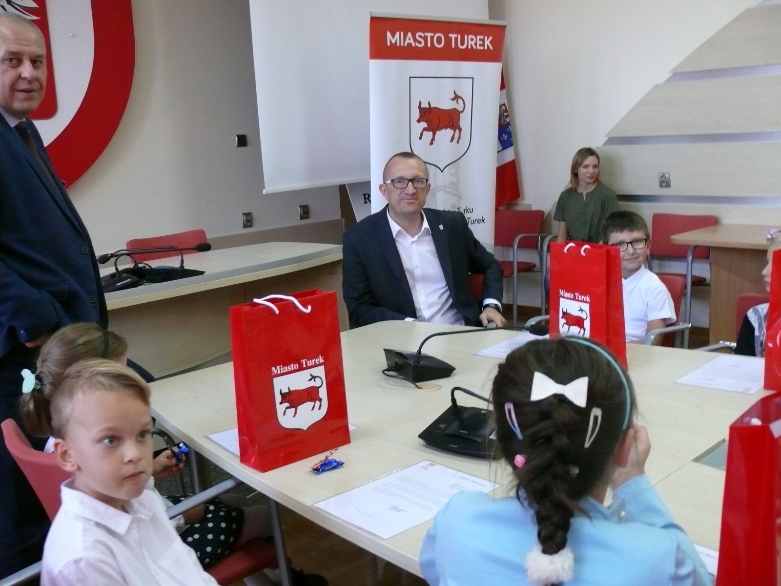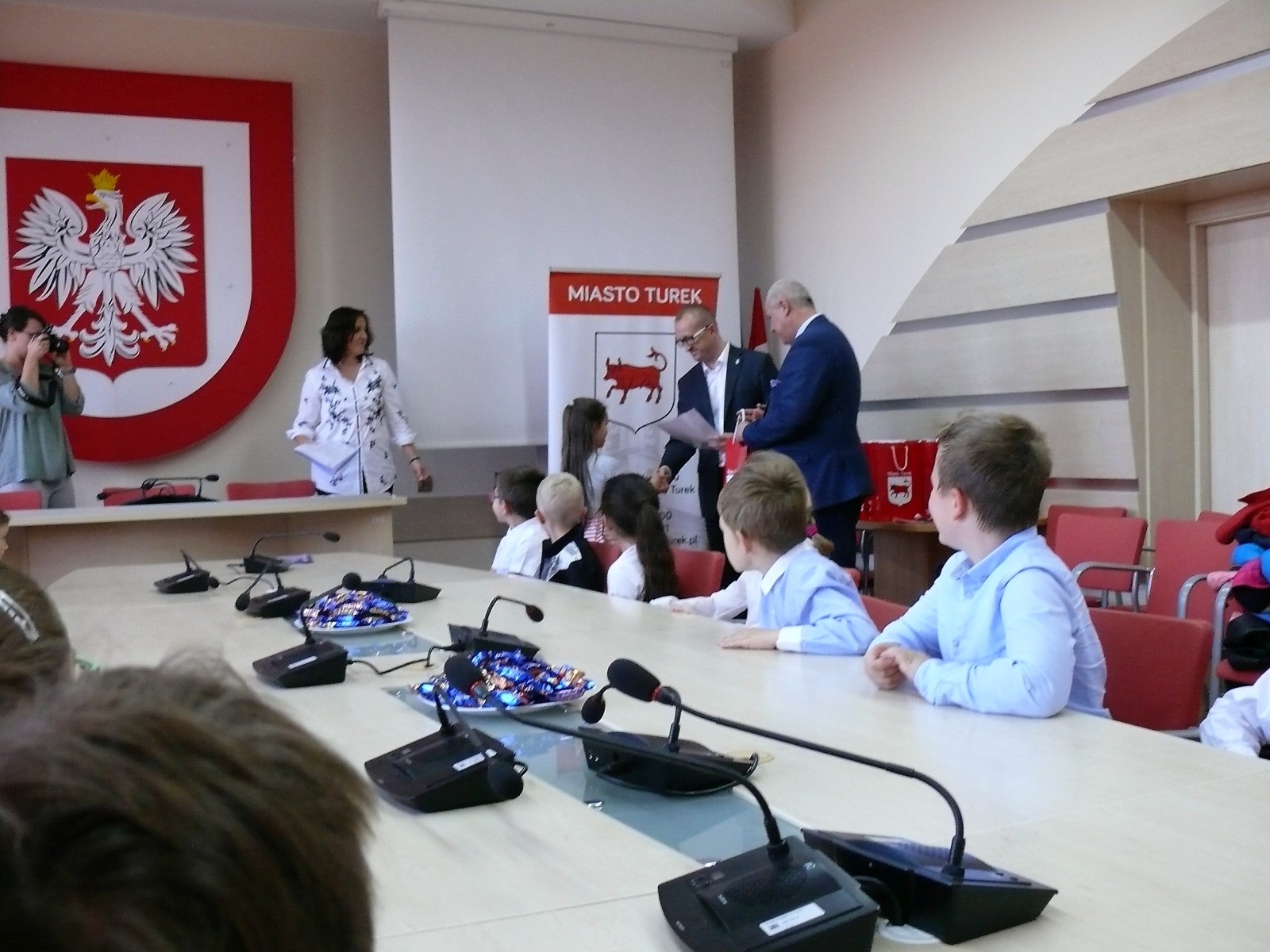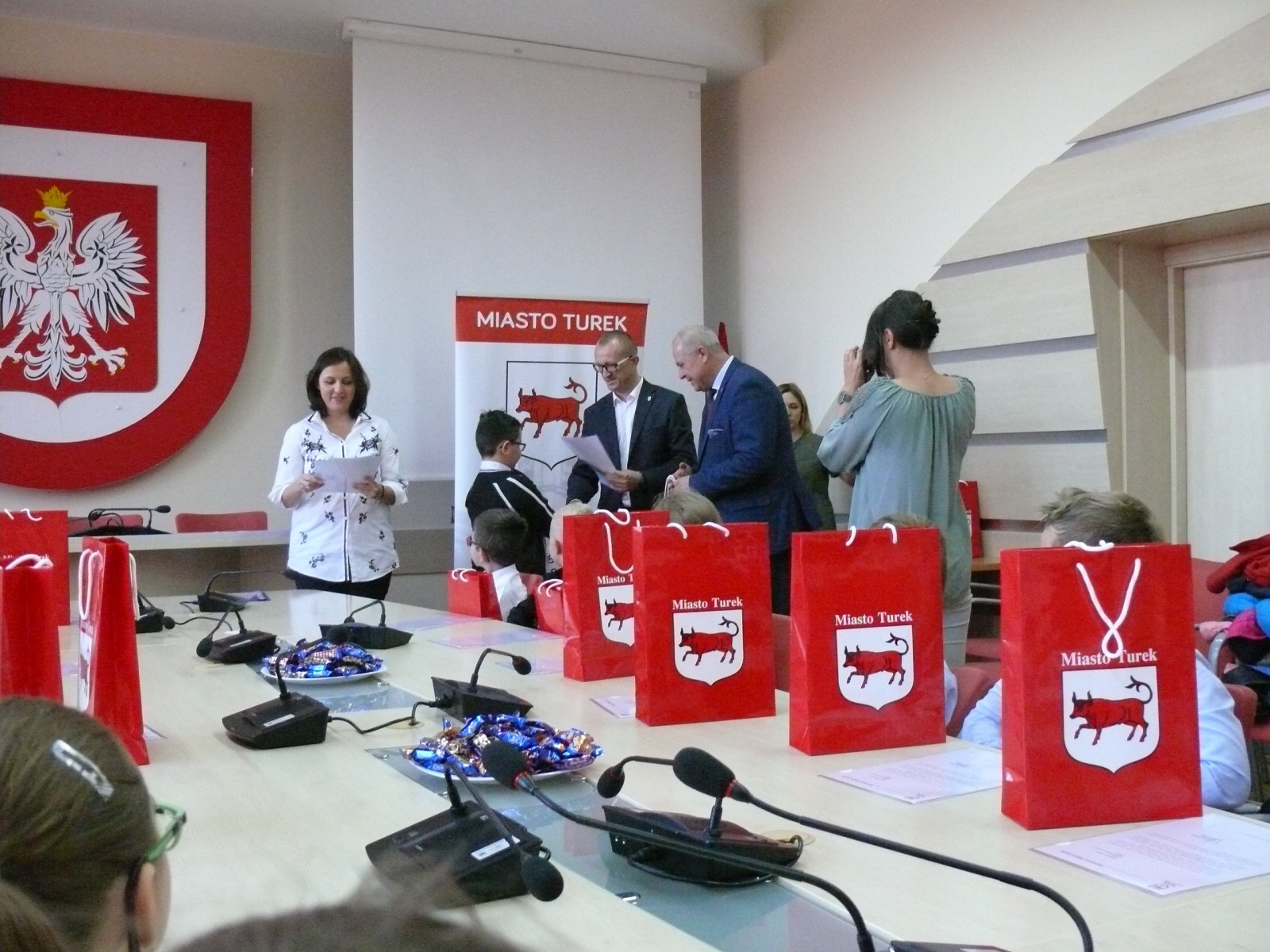 Podczas wizyty w UM włodarze miasta uhonorowali laureatów, wręczając im pamiątkowe dyplomy i upominki. Dzieci były bardzo przejęte wizytą i dumne z osiągniętego sukcesu.