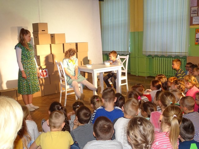 Uczniowie klas I-IV wzięli udział w interakcyjnym przedstawieniu teatralnym pt. „Magiczne drzwi”. Podczas przedstawienia poruszono takie zagadnienia jak: stawianie granic, łamanie reguł, asertywność, Internet, dopalacze, adrenalina, mocne przeżycia, bezpieczeństwo w domu i na ulicy. W sztuce uczestniczyli uczniowie, którzy wspólnie z bohaterami opowieści starali się znaleźć odpowiedzi na najważniejsze problemy.