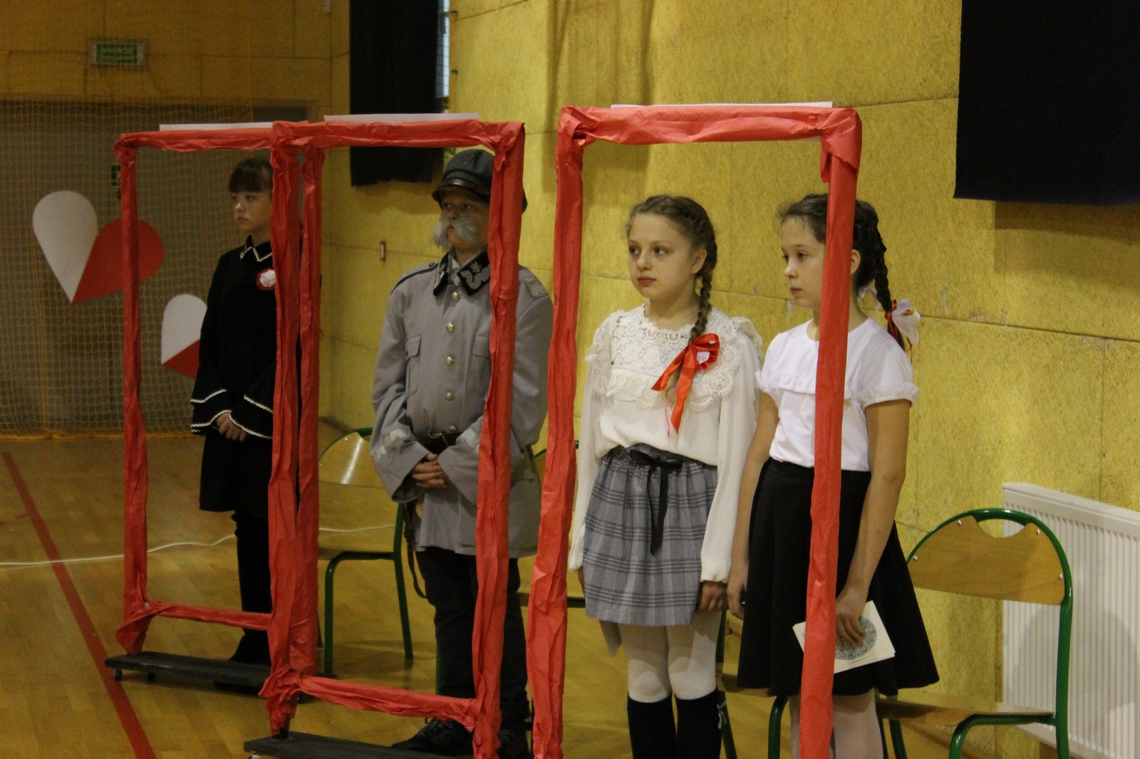 W wyjątkowy nastrój tego uroczystego dnia wprowadził nas Teatr „Szpilka". Uczniowie, kontynuując regionalny projekt w technice cieni, przedstawili montaż słowno – muzyczny pt. „Jak to z niepodległością w Turku było?". W historycznej inscenizacji wziął udział dyrektor Muzeum Miasta Turku p. Bartosz Stachowiak.