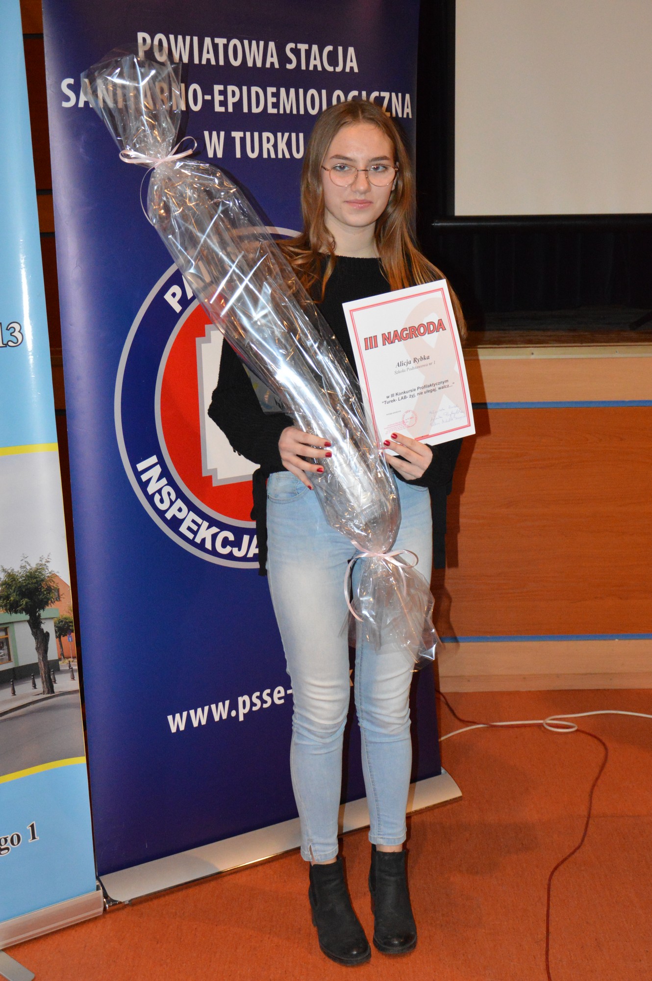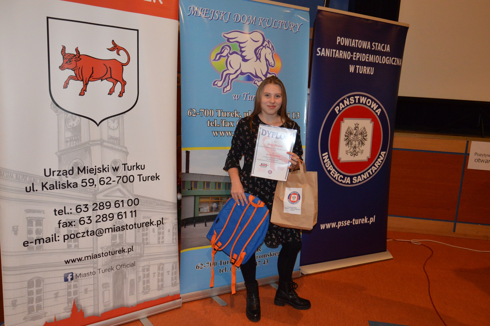 Z dumą informujemy, że w Konkursie Profilaktycznym pod hasłem „Turek LAB - żyj, nie ulegaj, walcz..." 1 miejsce zdobyły uczennice klasy IIIc GIM Gabriela Włodarczyk i Natalia Kałużna, miejsce 2 uczennica klasy IIIb GIM Agata Drabina, a Alicja Rybka uczennica klasy IIIb GIM odebrała nagrodę za 3 miejsce.