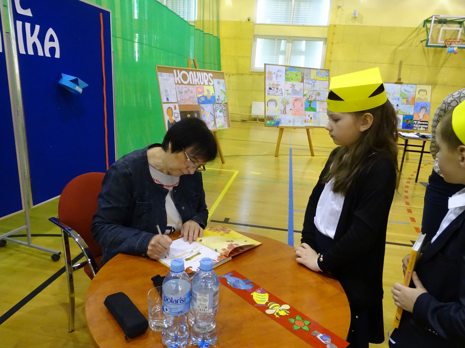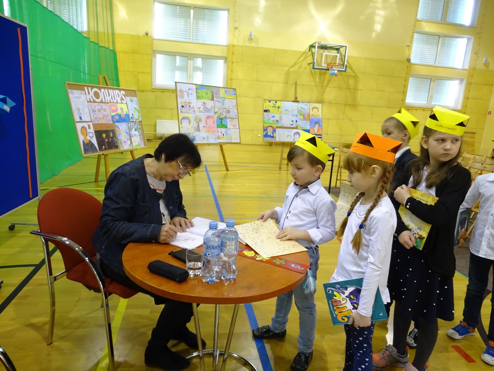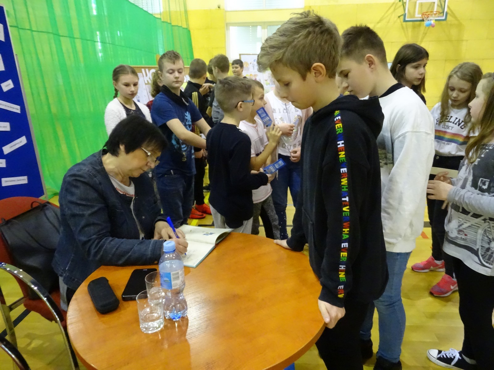 Uczniowie zasypali na koniec pisarkę wieloma pytaniami, zarówno dotyczącymi jej twórczości jak i życia osobistego. Tradycyjnie, każde spotkanie z pisarzem kończy się wyjątkową chwilą osobistego spotkania z czytelnikami. Dlatego do stolika, przy którym zasiadła p. Piątkowska ustawiła się ogromna kolejka po autograf pisarki. Nie mogło też zabraknąć wspólnych, pamiątkowych fotografii.