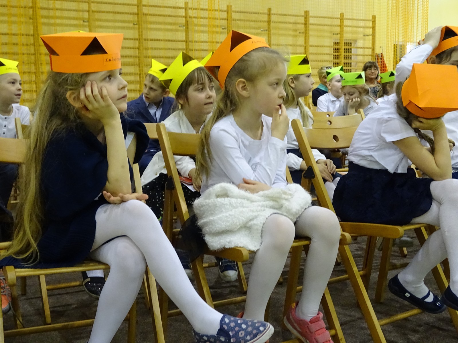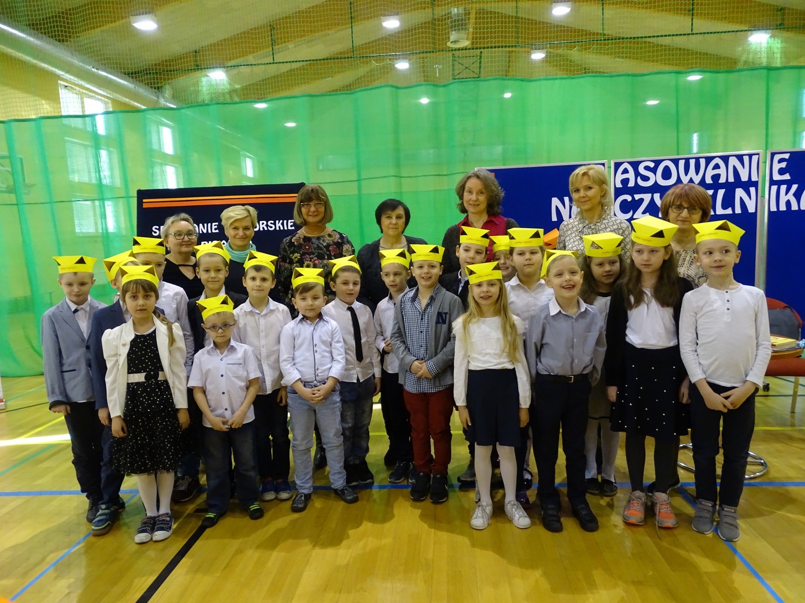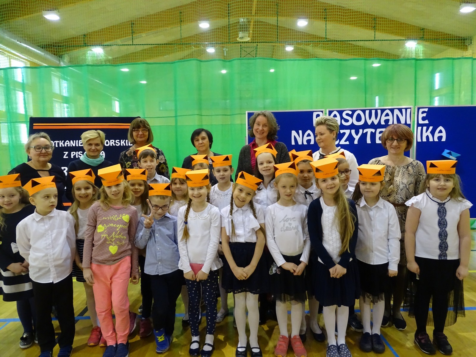 Najpierw najmłodsi uczniowie zostali Pasowani na czytelnika biblioteki szkolnej. To szczególne wydarzenie, na które dzieci oczekiwały wiele tygodni. Po złożeniu przyrzeczenia czytelnika, p. Renata dokonała pasowania każdego pierwszaka wielką zakładką. Na pamiątkę tego zdarzenia każdy otrzymał Dyplom.