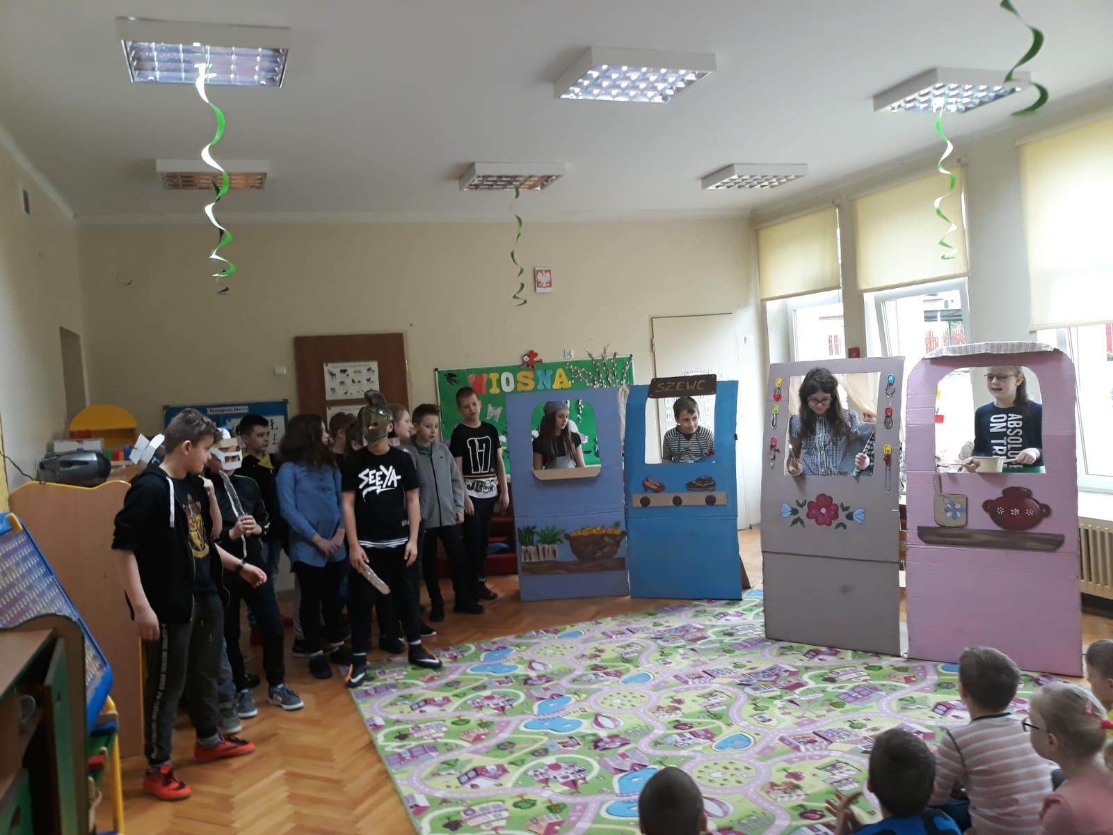 Uczniowie z klasy 4d SP1 pod opieką p. Agnieszki Koszykowskiej (nauczycielki j. polskiego) w dniu 29.03.2019r. odwiedzili Przedszkole Kubusia Puchatka w Turku. Przedstawili przedszkolakom inscenizację „Legendy o warszawskim Bazyliszku”.
