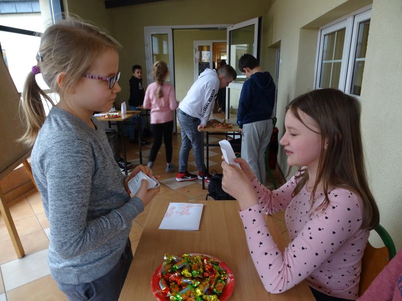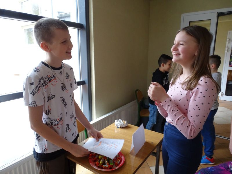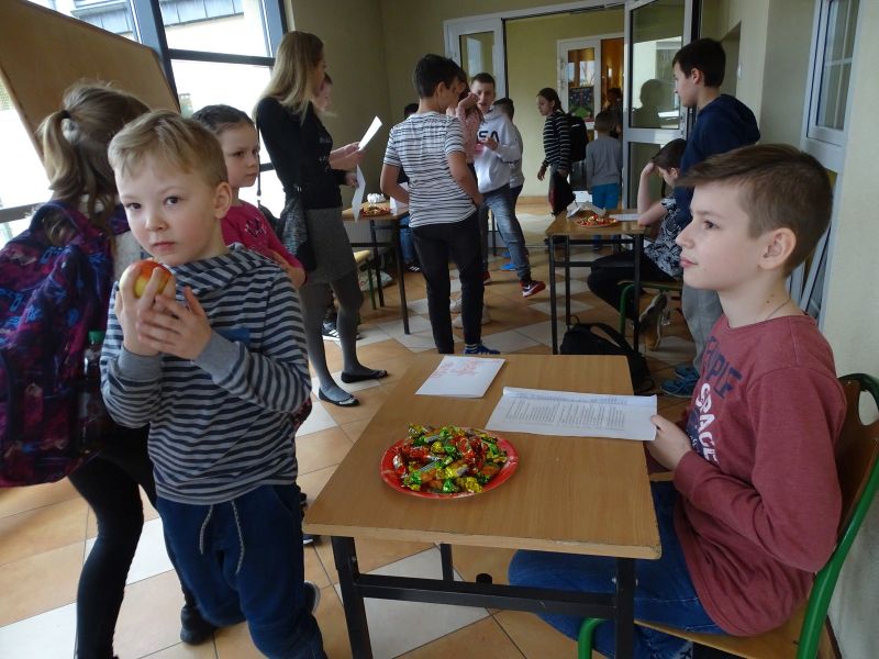 Z okazji ostatków Samorząd Uczniowski zorganizował w naszej szkole quizy wiedzowe. Wszyscy chętni uczniowie mieli możliwość sprawdzenia swoich wiadomości z zakresu: języka polskiego, języka angielskiego, historii, matematyki i przyrody. Każde dziecko, które poprawnie odpowiedziało na pytanie z wybranego przedmiotu, otrzymało cukierka. Quizy były przeznaczone przede wszystkim dla uczniów klas czwartych i piątych, jednak przybyło również wielu młodszych uczniów, którym udało się udzielić poprawnych odpowiedzi. Tego dnia dzieci świetnie się bawiły.