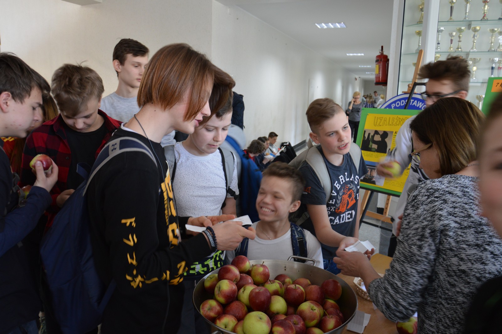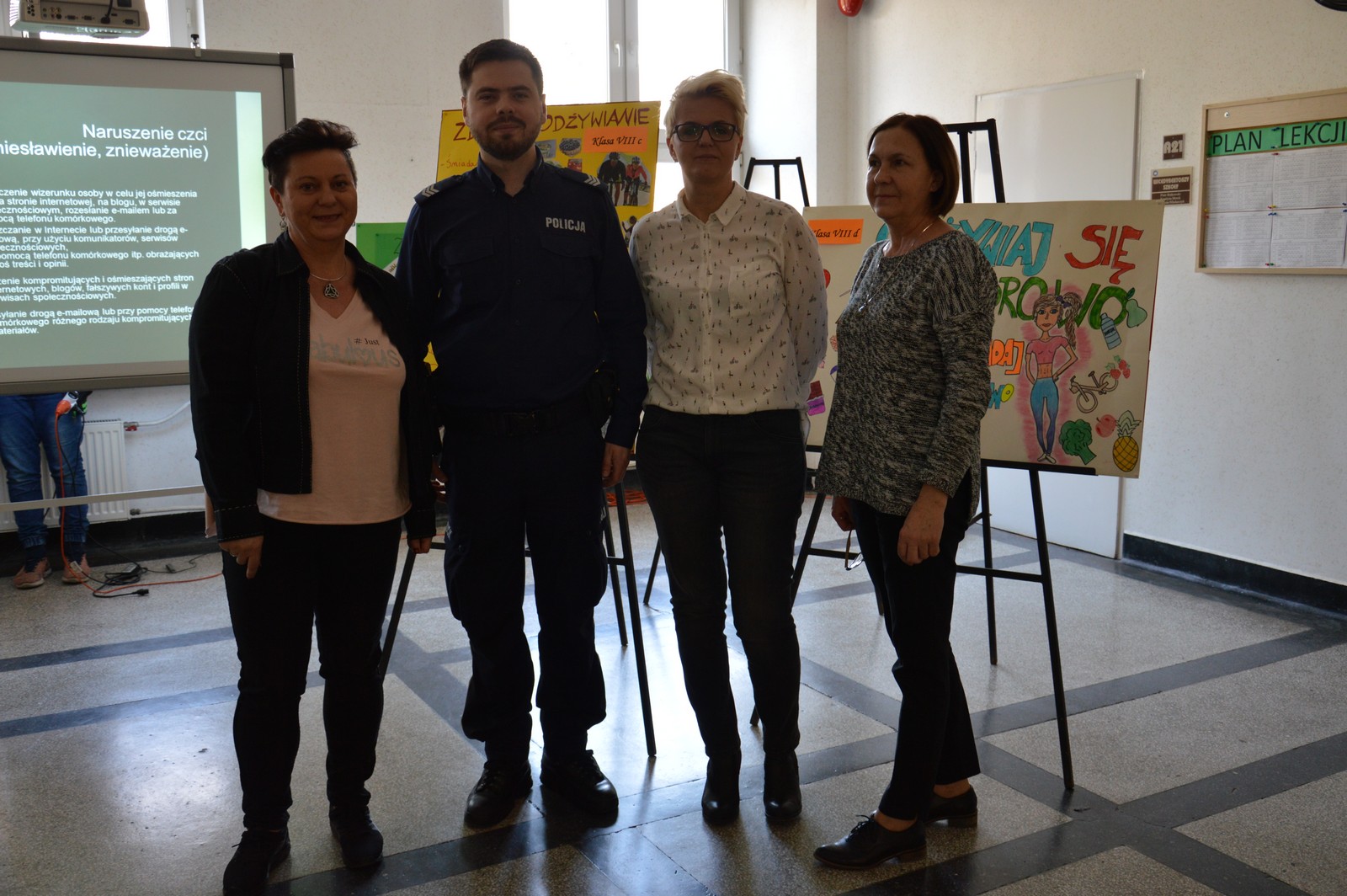 Do realizacji tych przedsięwzięć zaprosiliśmy przedstawicieli instytucji wspierających pracę szkoły w dziedzinie profilaktyki. Odbyły się prelekcje na temat „Hejtu w sieci”, prowadzone przez funkcjonariusza KPP w Turku oraz zajęcia w ramach projektu „Młodzi, wolni, bezpieczni”, zorganizowane przez terapeutów z Ośrodka Wsparcia dla Osób z Problemami Uzależnień. Natomiast pani psycholog rozmawiała z młodzieżą na temat „Kształtowania właściwych relacji rówieśniczych”. Uczniowie spisali się na medal, a w nagrodę otrzymali pyszne jabłka.