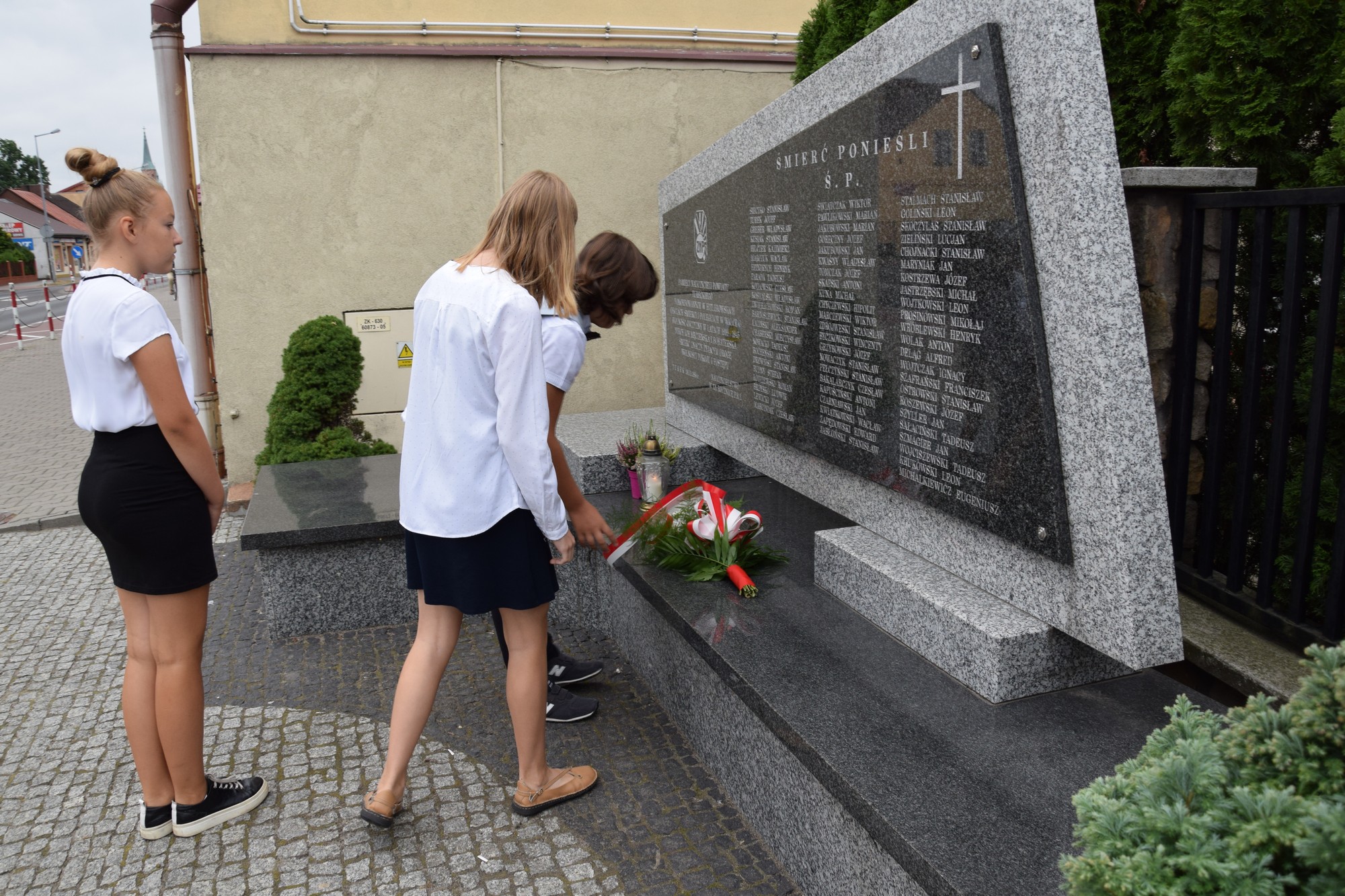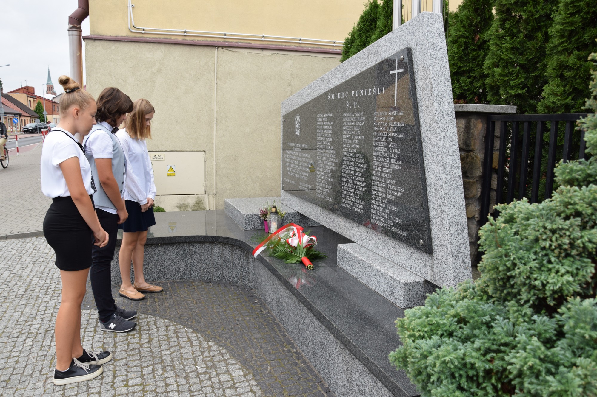 Uczniowie złożyli kwiaty na pomniku poległych i pomordowanych w obozach śmierci nauczycieli w czasie drugiej wojny światowej.