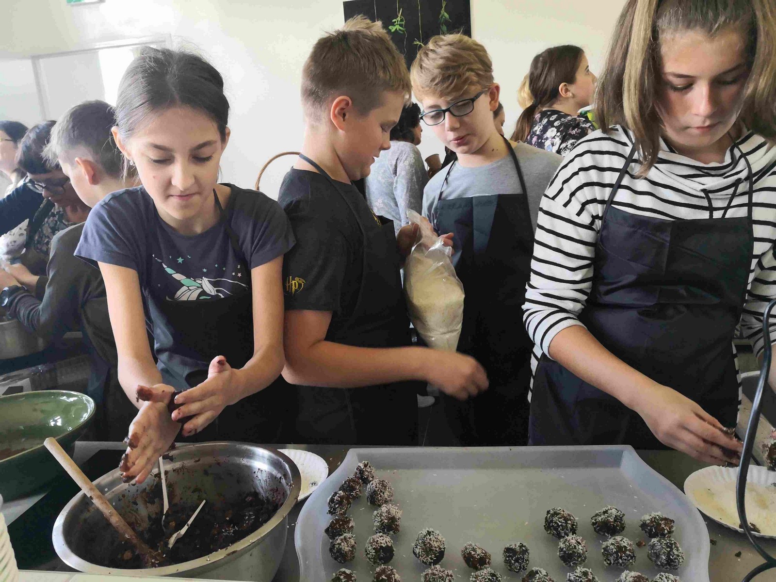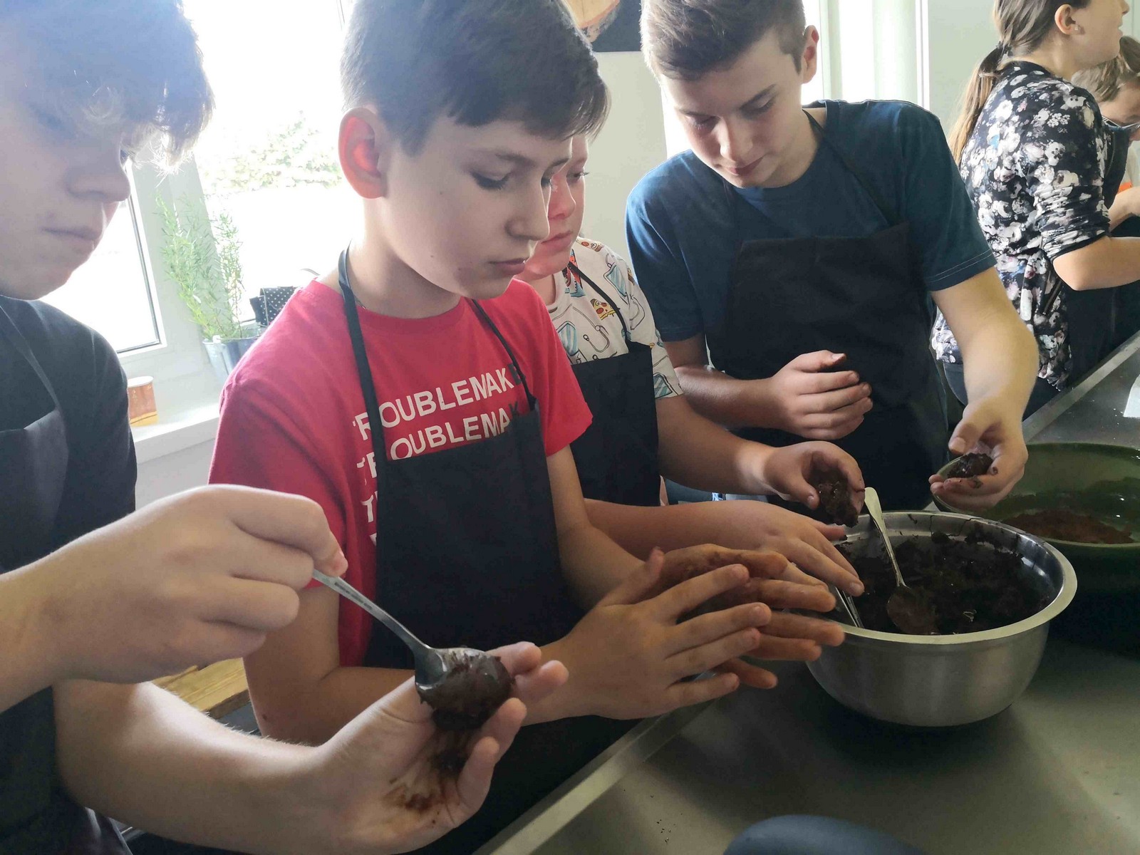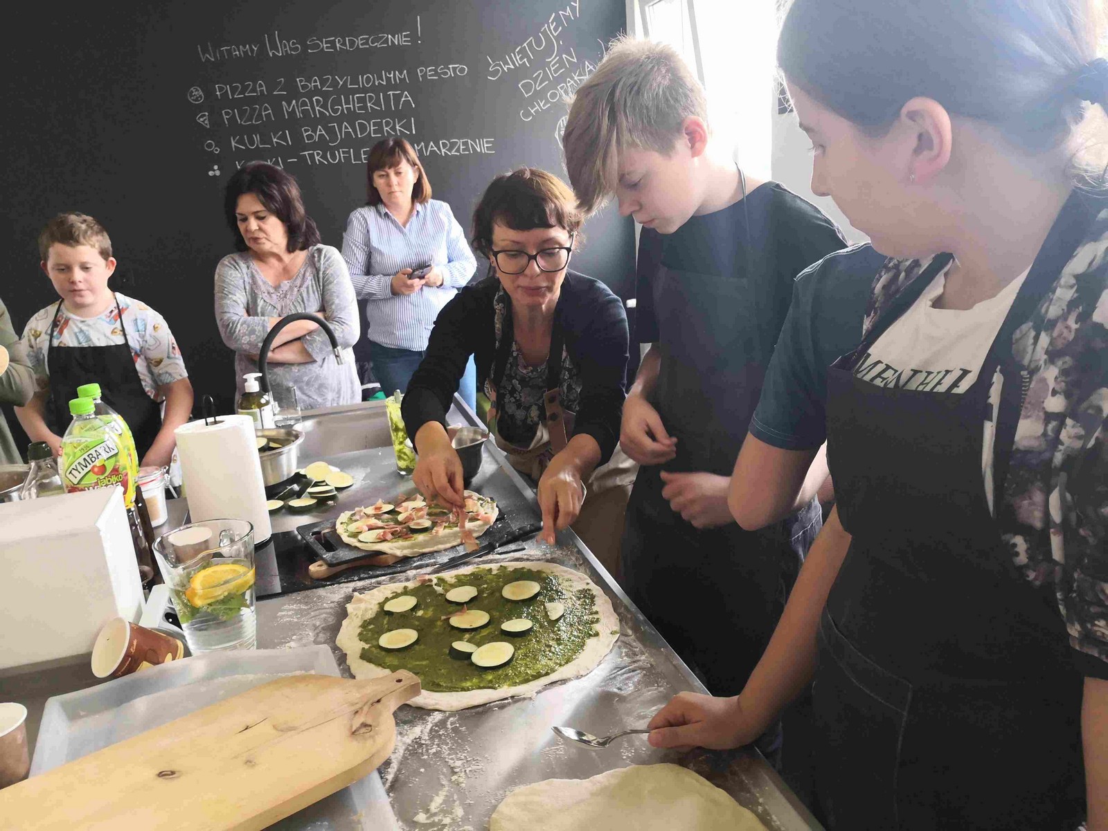 27 września 2019 r. uczniowie klasy VIC uczestniczyli w zorganizowanych z okazji Dnia Chłopca warsztatach kulinarnych. Zajęcia prowadziły panie z Fundacji ze Smakiem. Pod ich fachowym okiem dzieci przygotowały jako danie główne pizzę Margheritę oraz pizzę z bazyliowym pesto, szynką i cukinią, a na deser – „Trufle jak marzenie” i kulki bajaderki.