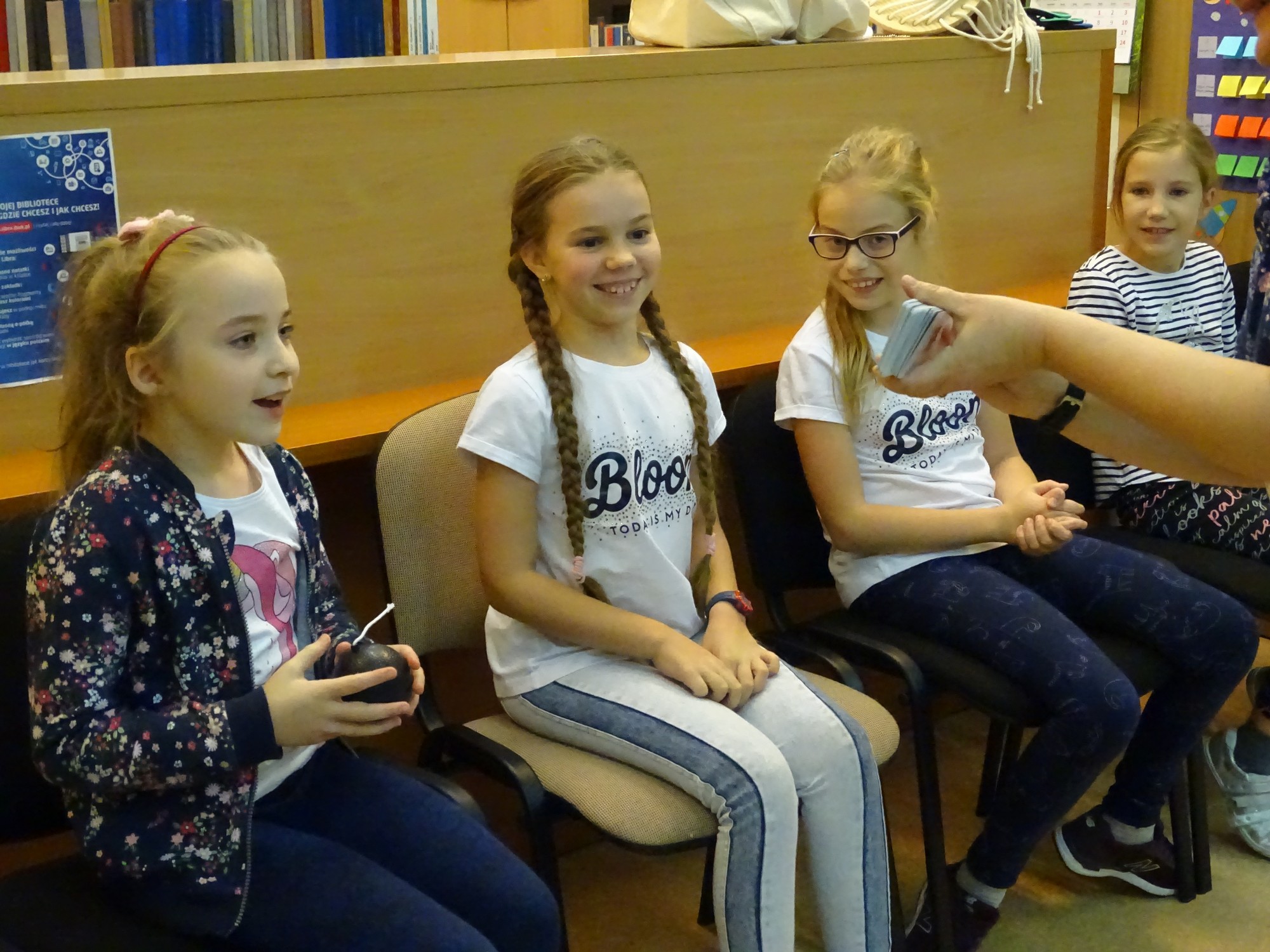 Wreszcie, gdy za oknem zupełnie się ściemniło, przyszedł czas na zwiedzanie niedostępnych na co dzień zakamarków biblioteki. Wszyscy z wielkim zainteresowaniem „buszowali” między regałami, odkrywając różne ciekawe książki, by wreszcie znaleźć się w tajemniczym pokoju, kryjącym wielką „magiczną” niespodziankę.