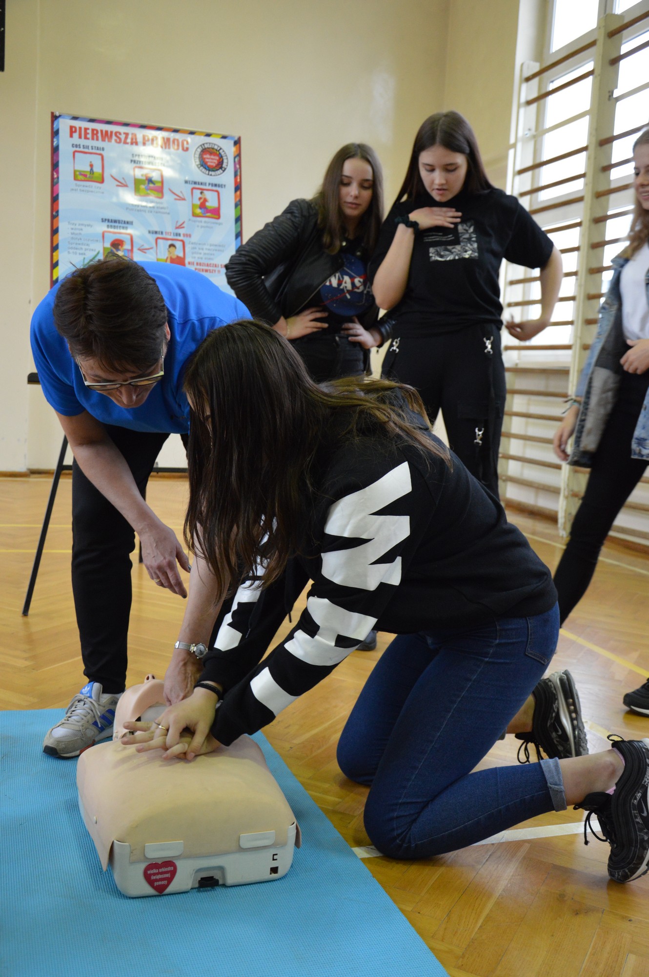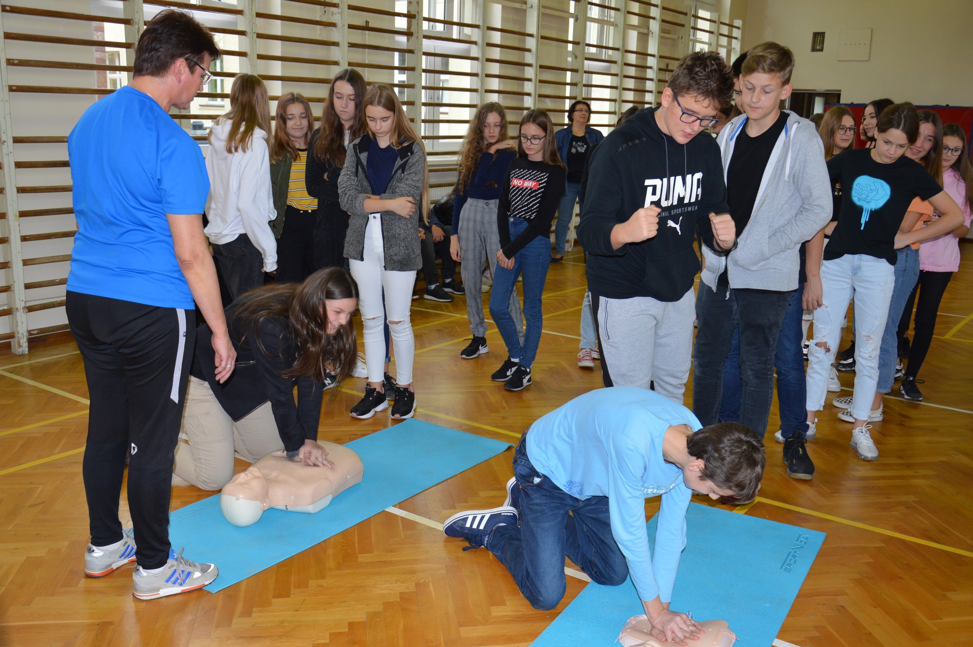 UDZIAŁ UCZNIÓW Z SP1 W OGÓLNOPOLSKIM BICIU REKORDU W JEDNOCZESNYM WYKONYWANIU RESUSCYTACJI KRĄŻENIOWO - ODDECHOWEJ