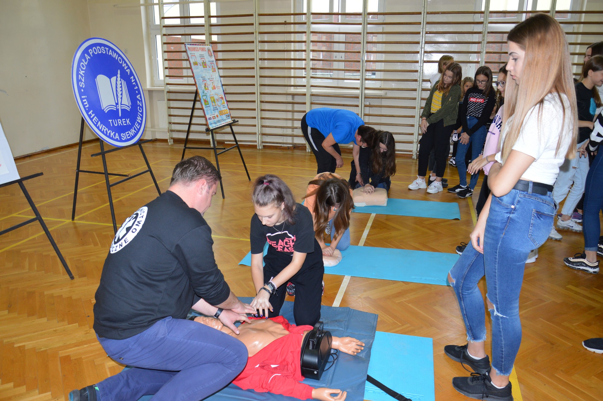Pomysłodawcą przeprowadzanej od 2013 roku akcji jest Europejska Rada Resuscytacji, a organizatorem w Polsce – Fundacja Wielkiej Orkiestry Świątecznej Pomocy. SP1 w Turku co roku podejmuje wyzwanie w celu pobicia nowego rekordu. 16 października 2019 roku 174 uczniów z naszej szkoły wzięło udział w biciu rekordu w ramach „ Europejskiego Dnia Przywracania Czynności Serca”. Przed przystąpieniem do akcji pan Błażej Błajet, ratownik medyczny, omówił najważniejsze aspekty przywracania czynności serca oraz udzielał uczniom wskazówek podczas przebiegu tak ważnego przedsięwzięcia.