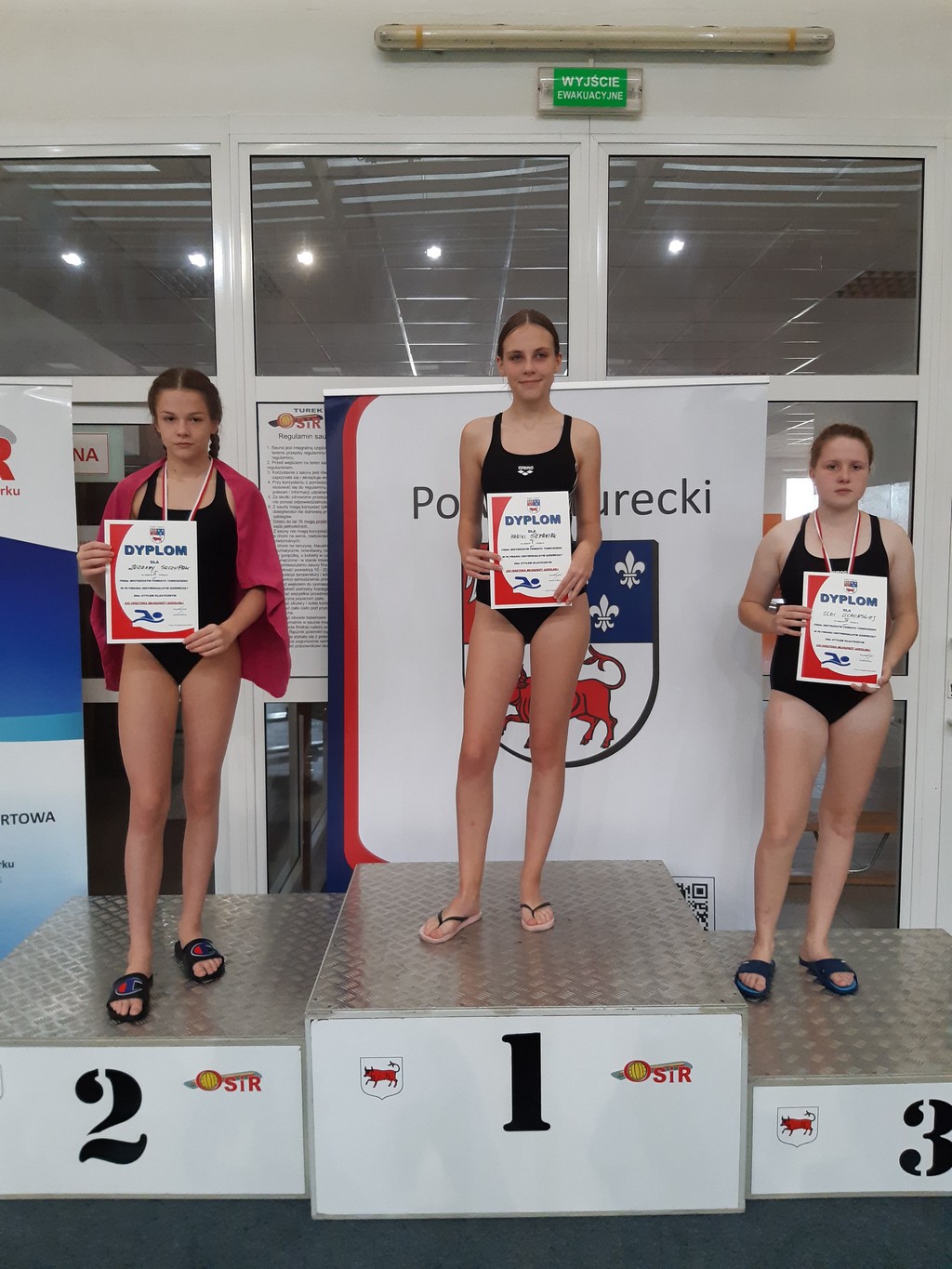24 października 2019r. w Turku odbył się etap powiatowy XXI Igrzysk Młodzieży Szkolnej w Pływaniu. Sztafeta dziewcząt z klas 7 i 8 zdobyła tytuł Mistrza Powiatu Tureckiego w Pływaniu Drużynowym. Szkołę naszą reprezentowały: Szczupak Wiktoria kl. 8a, Cichomska Olga kl.8c, Szczupak Zuzanna kl. 8b, Modrzejewska Julia kl. 7d, Maciejewska Gabriela kl. 7c, Szuberska Amelia kl. 8d, Kałużna Aleksandra kl. 7d, Kujawa Aleksandra kl. 8d. Lis Amelia kl. 8a. Nasze uczennice odniosły również sukcesy w pływaniu indywidualnym na dystansie 50m. Amelia Szuberska zajęła 1. miejsce w stylu dowolnym, Gabriela Maciejewska - 2. miejsce w stylu dowolnym, Wiktoria Szczupak - 1. miejsce w stylu grzbietowym. Aleksandra Kałużna - 2. miejsce w stylu grzbietowym, Amelia Lis - 3. miejsce w stylu grzbietowym, Zuzanna Szczupak - 2.miejsce w stylu klasycznym, Olga Cichomska - 3. miejsce w stylu klasycznym. Wszystkie dziewczęta wykazały się dużym zaangażowaniem i wielką wolą sportowej rywalizacji. Gratulujemy sukcesów i życzymy powodzenia na Mistrzostwach Wielkopolski w Poznaniu. Opiekun: Barbara Knop