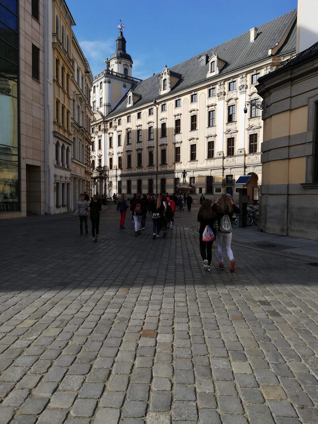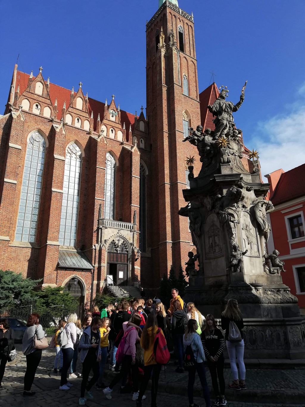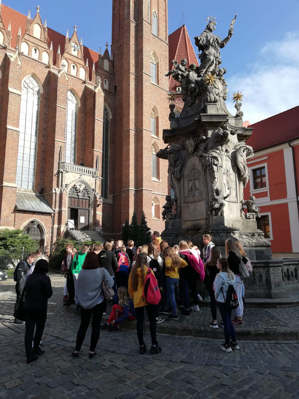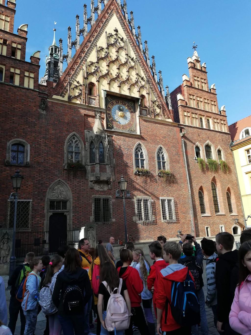 a potem przez Most Zakochanych zawędrowali na Stare Miasto. Na wrocławskiej Starówce nastolatki podziwiali zabytkowe kamienice, ratusz i wspaniałą fontannę. Największą atrakcją dla uczniów było poszukiwanie krasnali, które można było spotkać na szlaku pieszej wędrówki. Na zakończenie wycieczki podziwiali „Panoramę Racławicką” przedstawioną na olbrzymim płótnie.