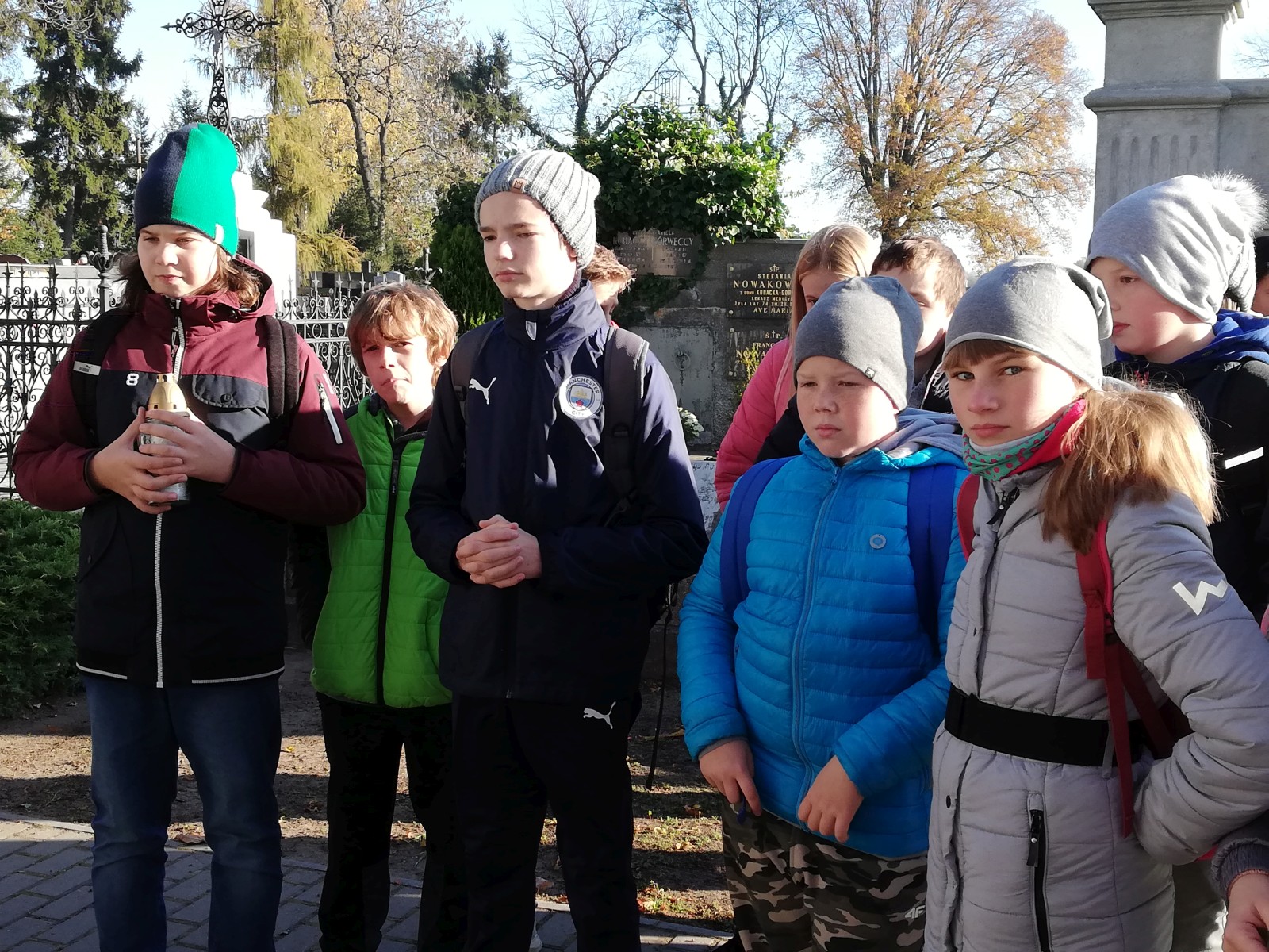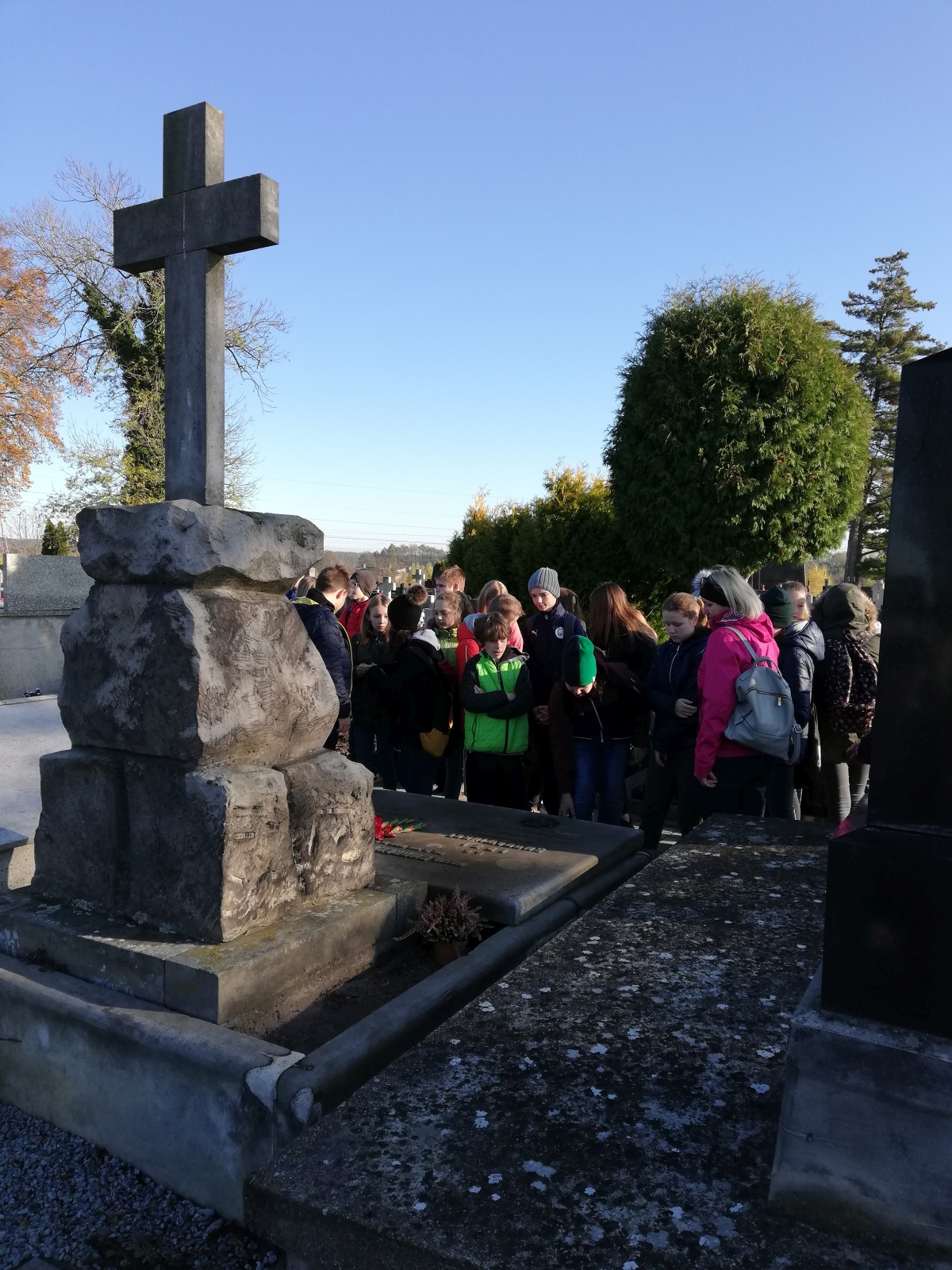 W ramach akcji „Szkoła pamięta” uczniowie klas VI d i VIII c podążyli śladem lokalnych bohaterów, którzy walczyli o wolność Polski. Na ich grobach i pomnikach zapalili znicze. Młodzież oddała hołd pomordowanym nauczycielom oraz innym ofiarom II wojny światowej. Światełko pamięci zapaliła także na grobie Mieczysława Makarego Smorawińskiego, Tomiły Składkowskiej, Leona Kruszyńskiego, Stanisława Kączkowskiego, Włodzimierza Borzysławskiego i braci Stanisława i Tadeusza Marszlów. Następnie uczniowie udali się do lasu, by odwiedzić miejsce pamięci oddziału partyzanckiego „Groźny”. Przy każdym z tych miejsc pani Bożena Mielczarek opowiadała uczniom o bohaterach tamtych trudnych czasów. Na zakończenie wycieczki patriotycznej rozpalono ognisko i wspominano niezwykłych ludzi, dzięki którym teraz możemy cieszyć się wolnością. Opiekę nad uczniami sprawowały nauczycielki: Katarzyna Błajet, Renata Sochacka i Bożena Mielczarek.
