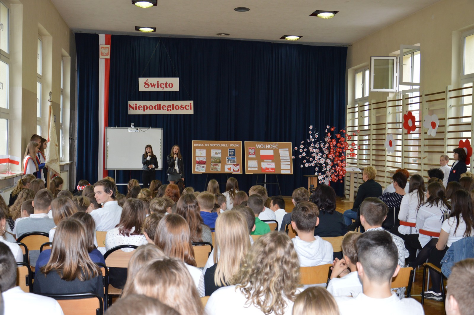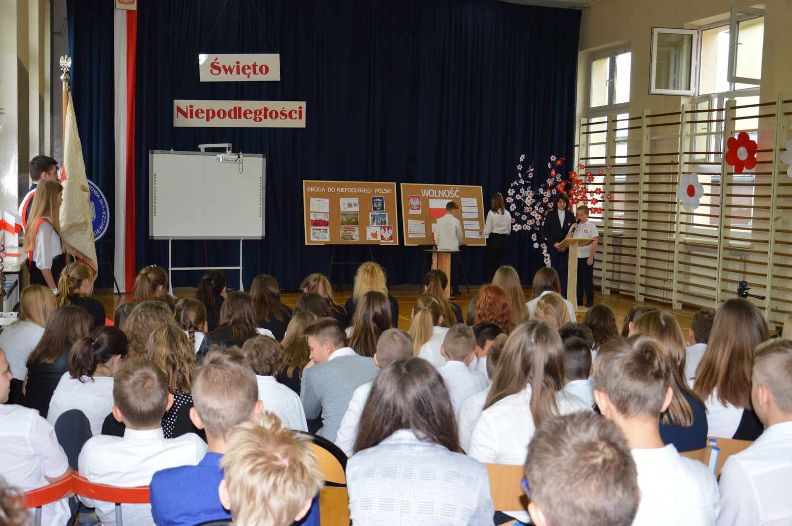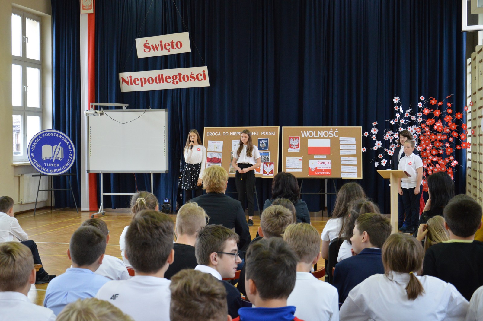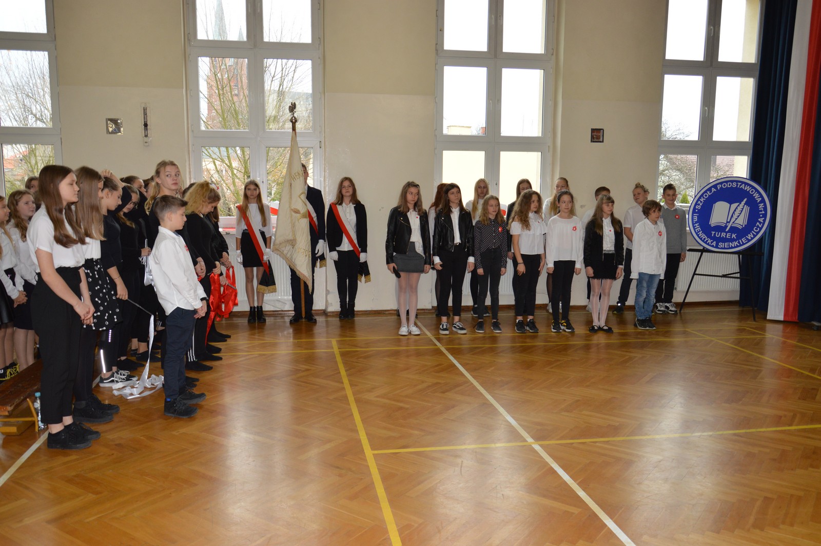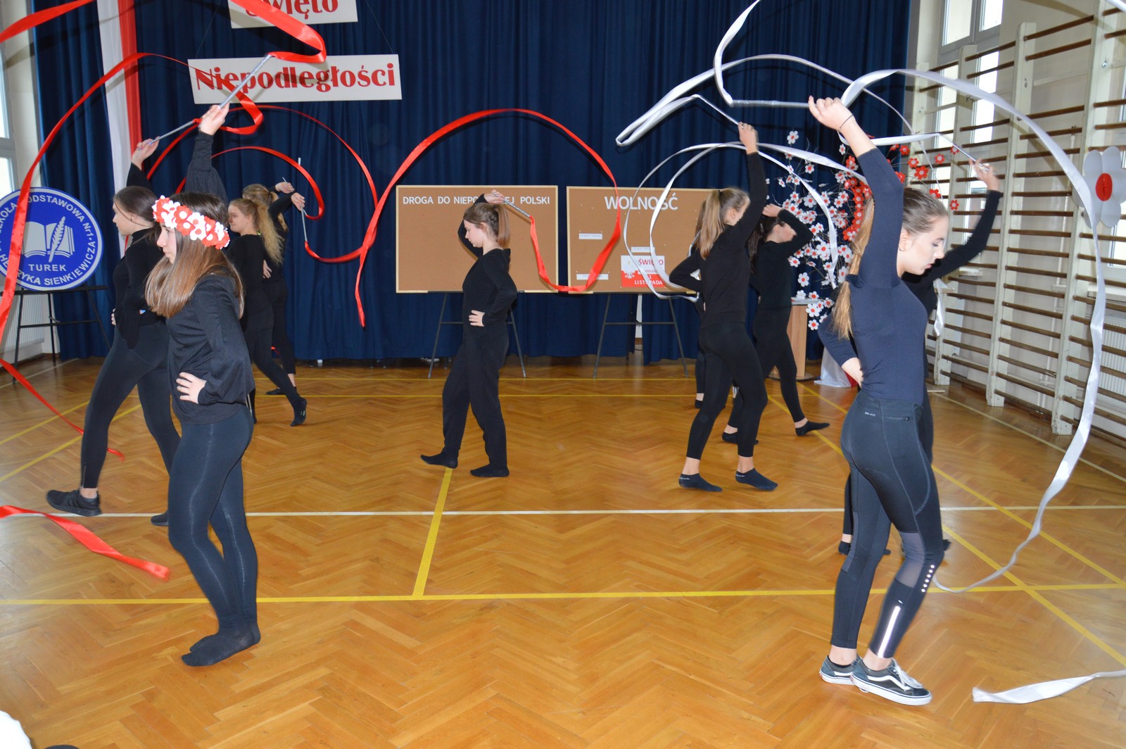 Uczniowie Szkoły Podstawowej nr 1 uczcili 101. rocznicę odzyskania przez Polskę niepodległości. Na początku uroczystego apelu odśpiewano hymn państwowy. Piękny taniec z biało – czerwonymi szarfami wprowadził wszystkich w odświętny nastrój i wydarzenia z tamtych lat. Na oczach widowni powstała wystawa, która przedstawiła drogę do wolnej Polski. A czym dla młodych ludzi jest dziś patriotyzm? Odpowiedzi na to pytanie znalazły się również na naszej wystawie. Tłem do jej tworzenia był przepiękny utwór Chopina. Ekspozycja