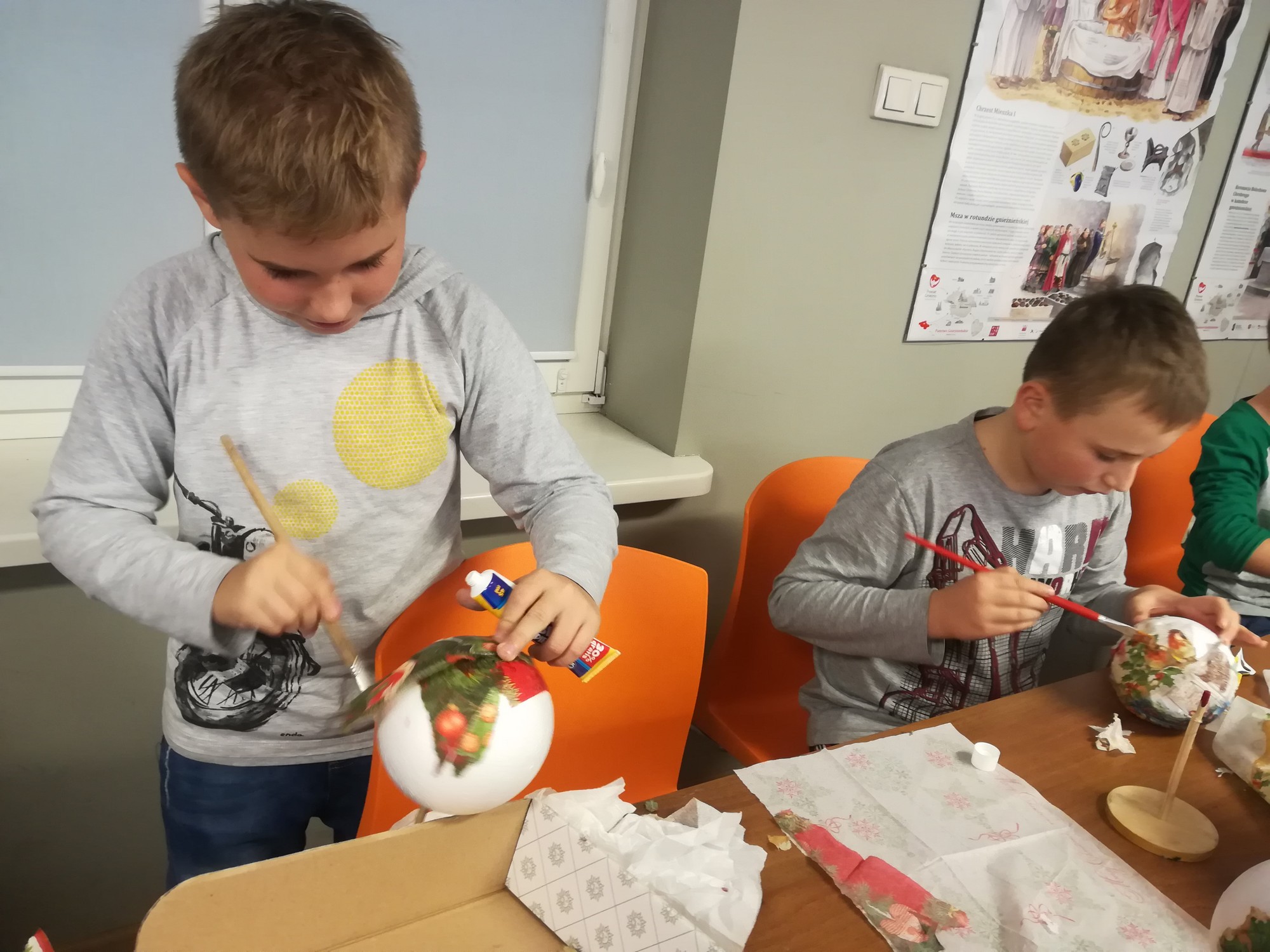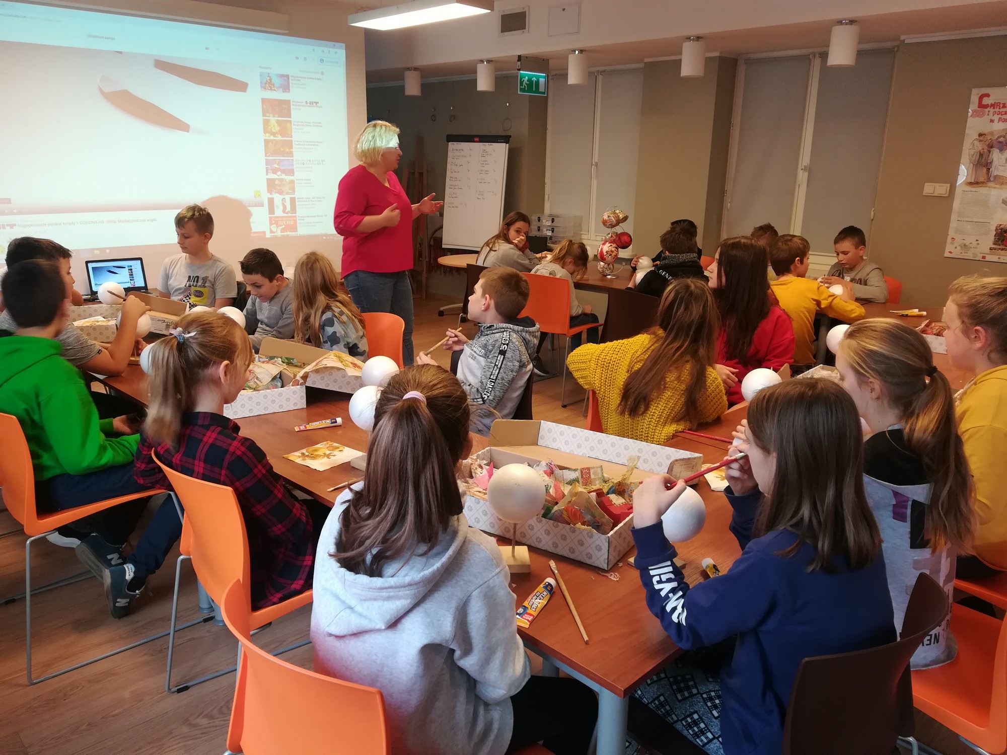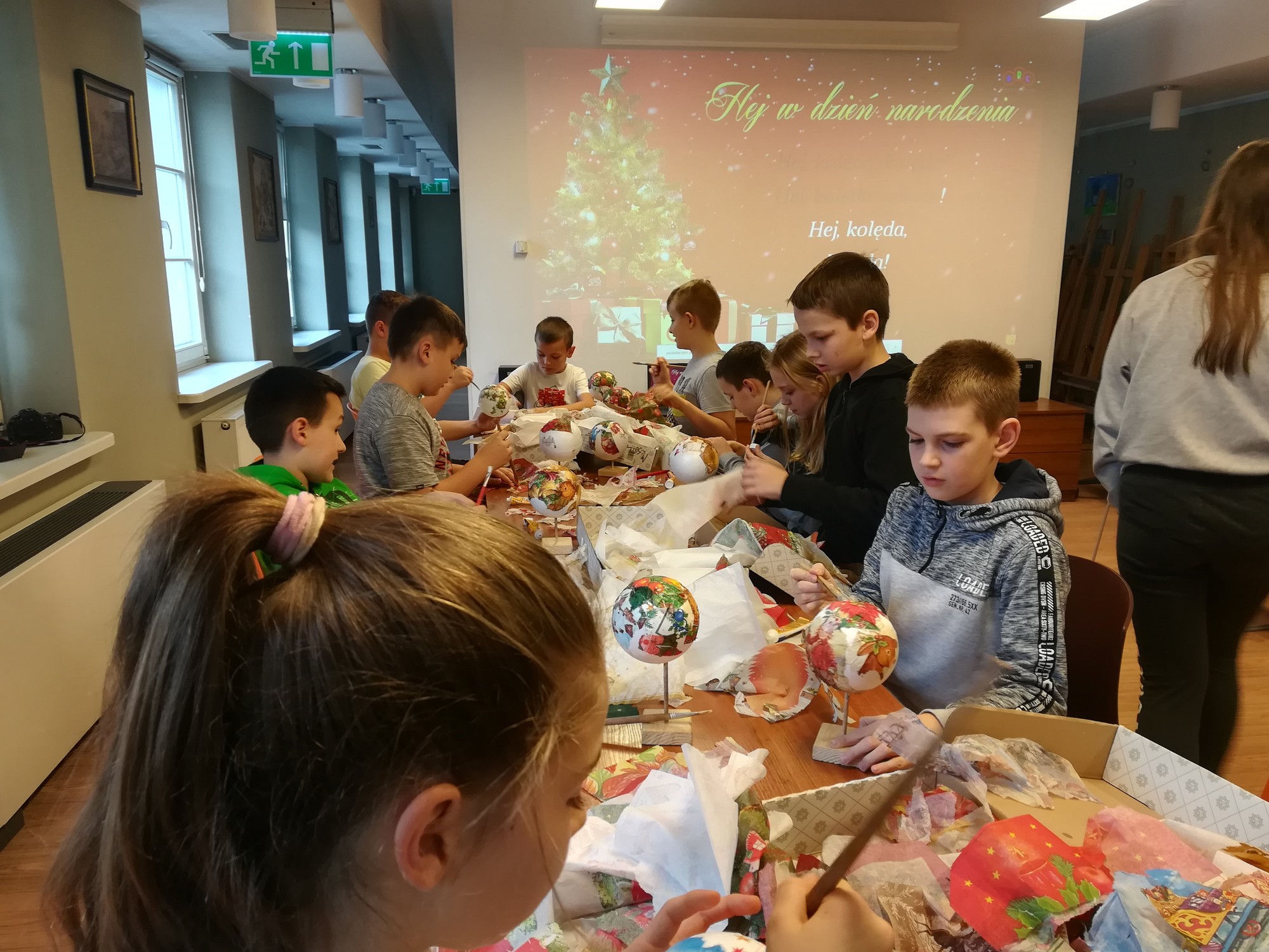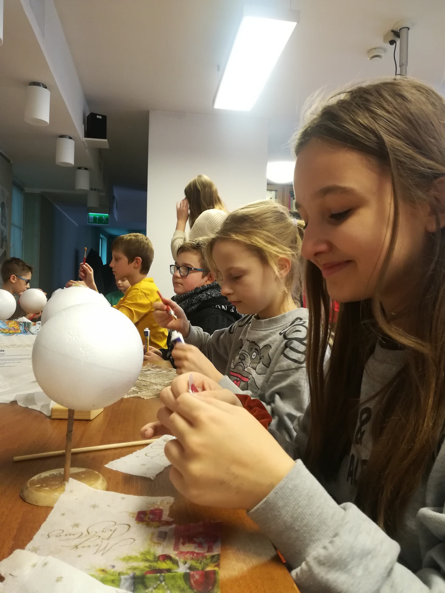 20 listopada uczniowie klasy 5b wraz z wychowawczynią uczestniczyli w przedświątecznych warsztatach w Muzeum Miasta Turku. Nucąc kolędy wszyscy poczuli już nastrój nadchodzących świąt, a wykonane metodą serwetkową bombki ozdobią bożonarodzeniowe choinki.