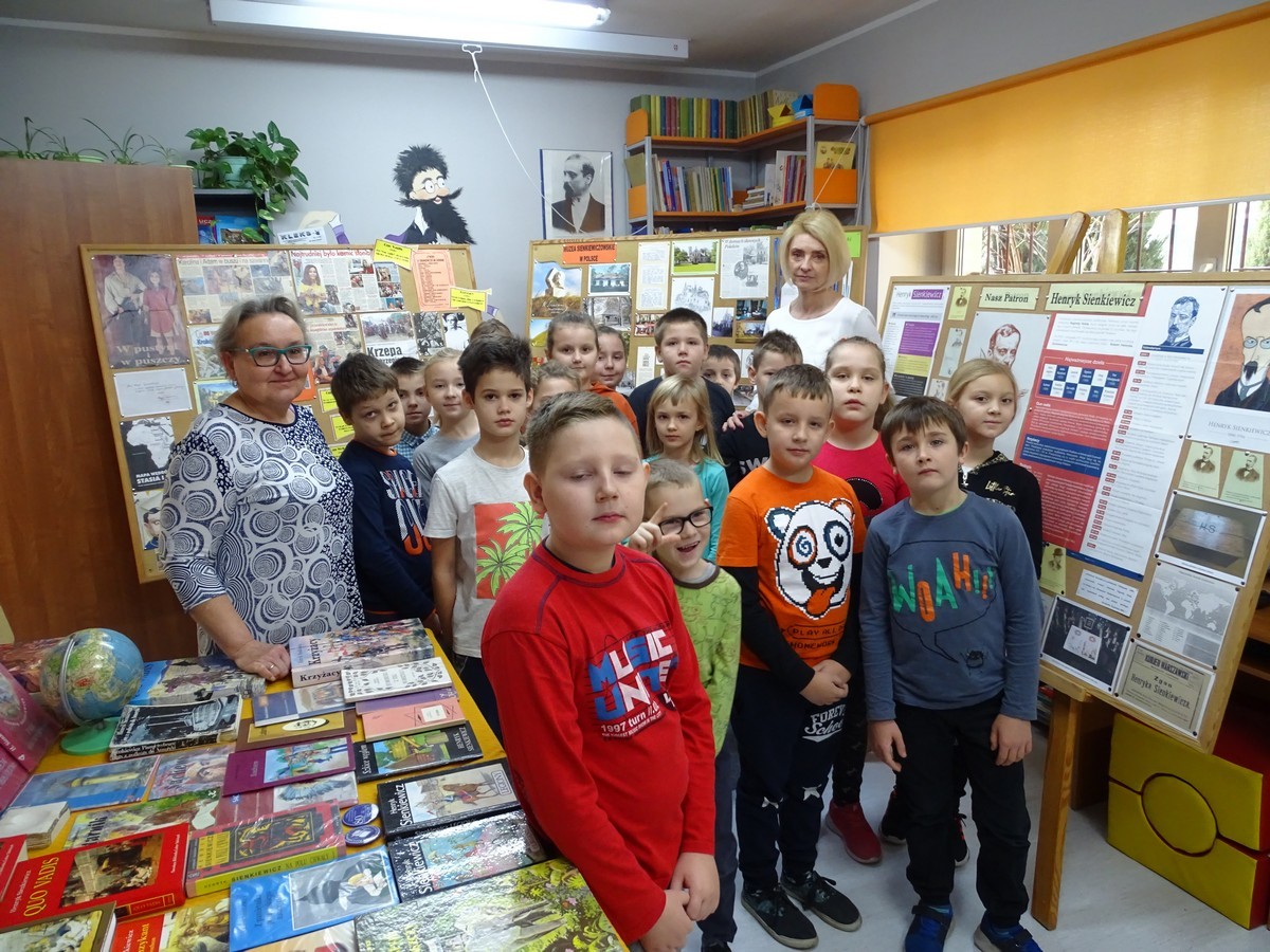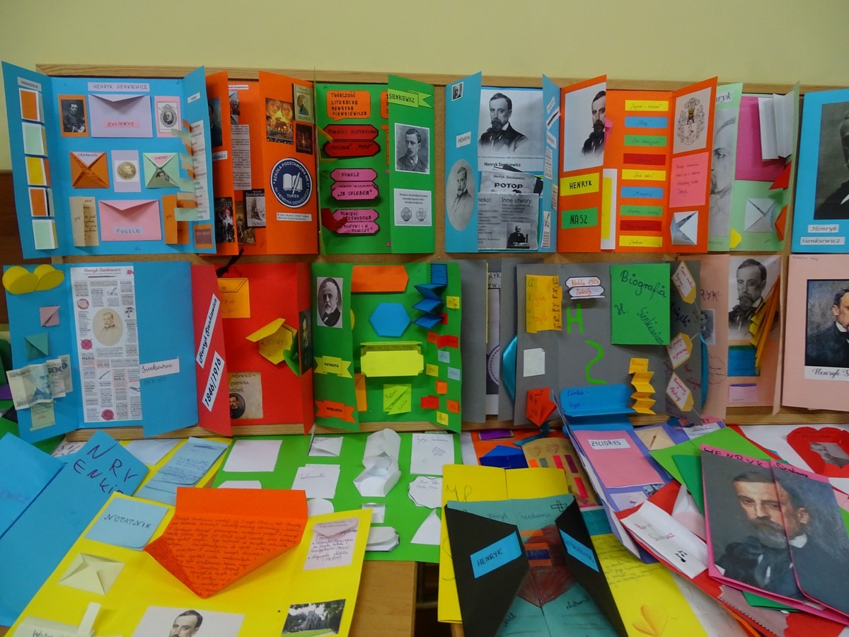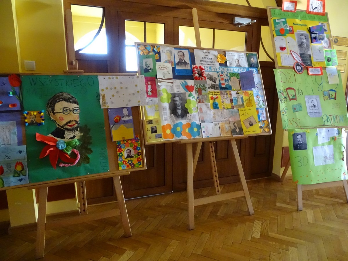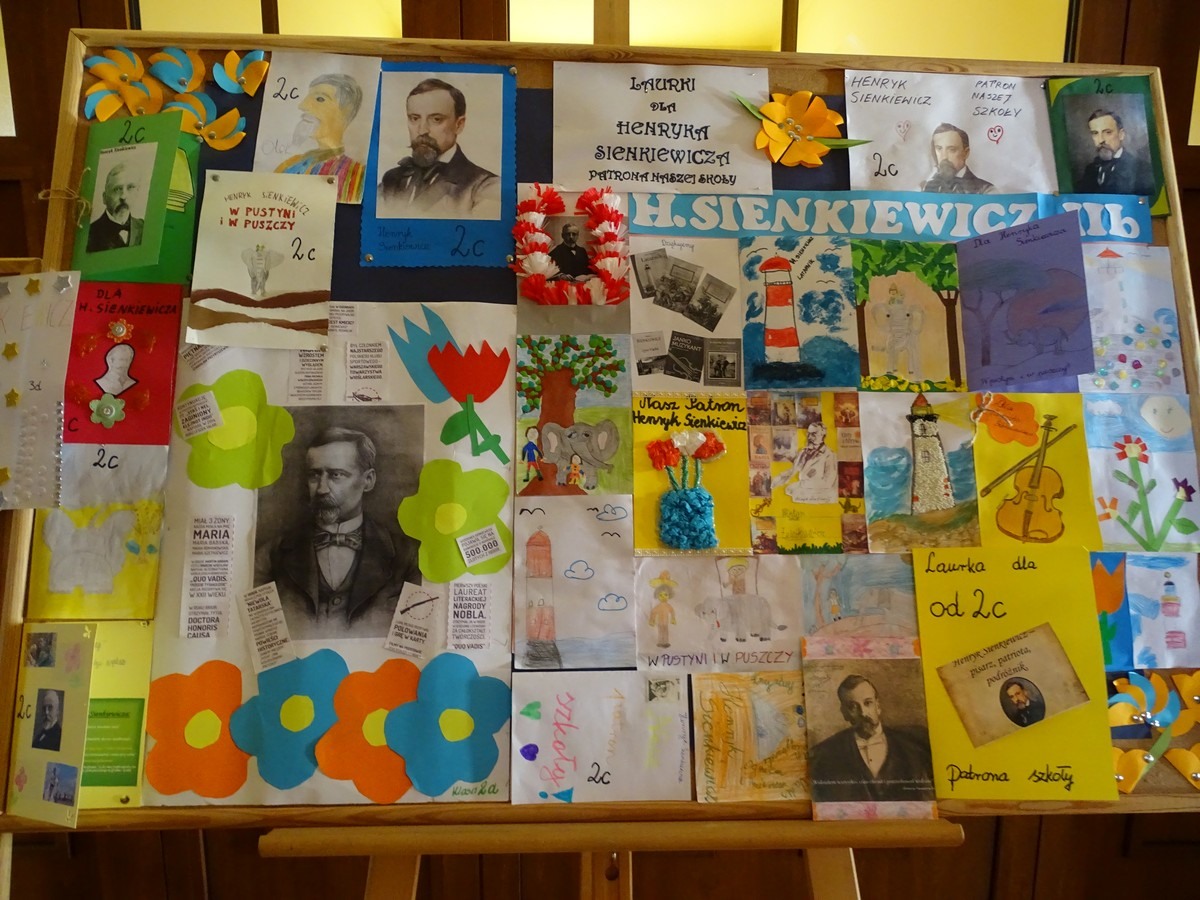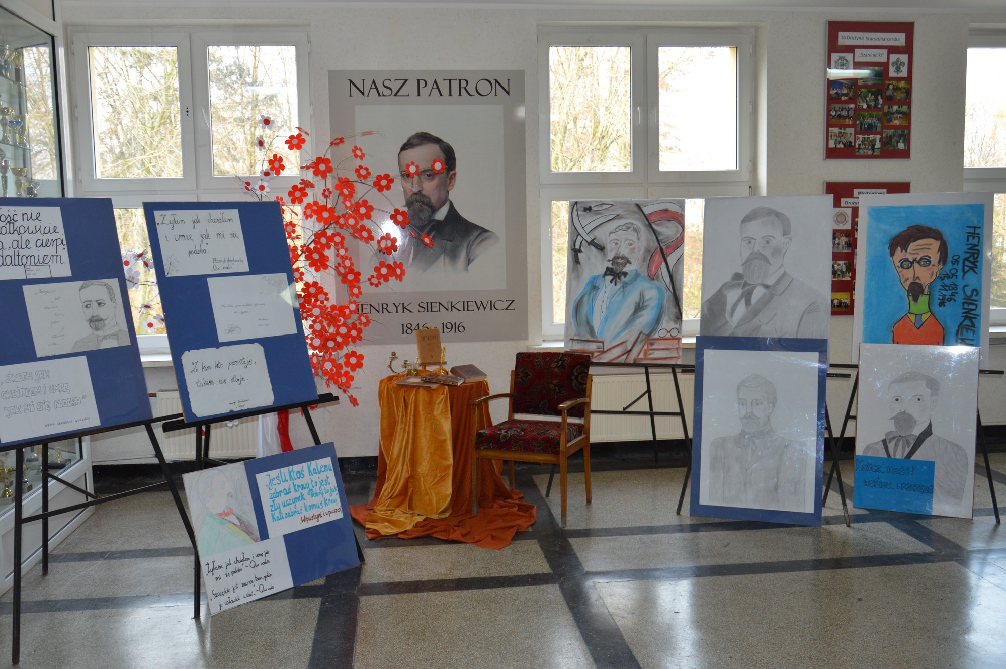 W tym dniu przygotowano także w bibliotece wystawę o Henryku Sienkiewiczu. Ponadto nauczyciele języka polskiego we wszystkich klasach przeprowadzi lekcję o sylwetce Patrona i jego twórczości .Chętne klasy utrwaliły informacje o Patronie w formie lapbooka.