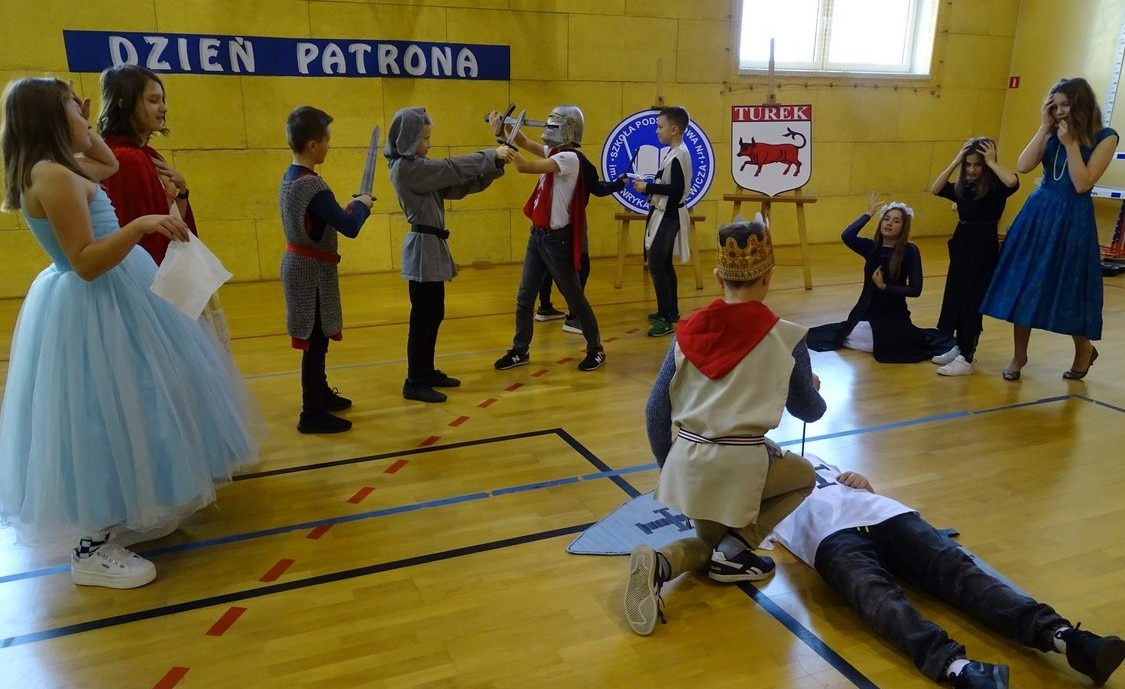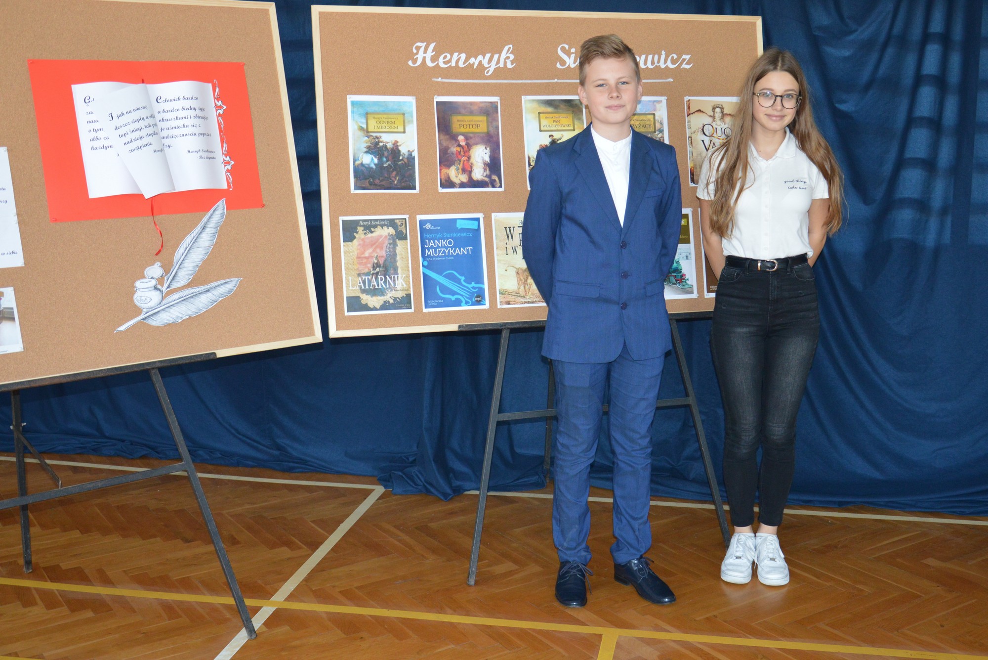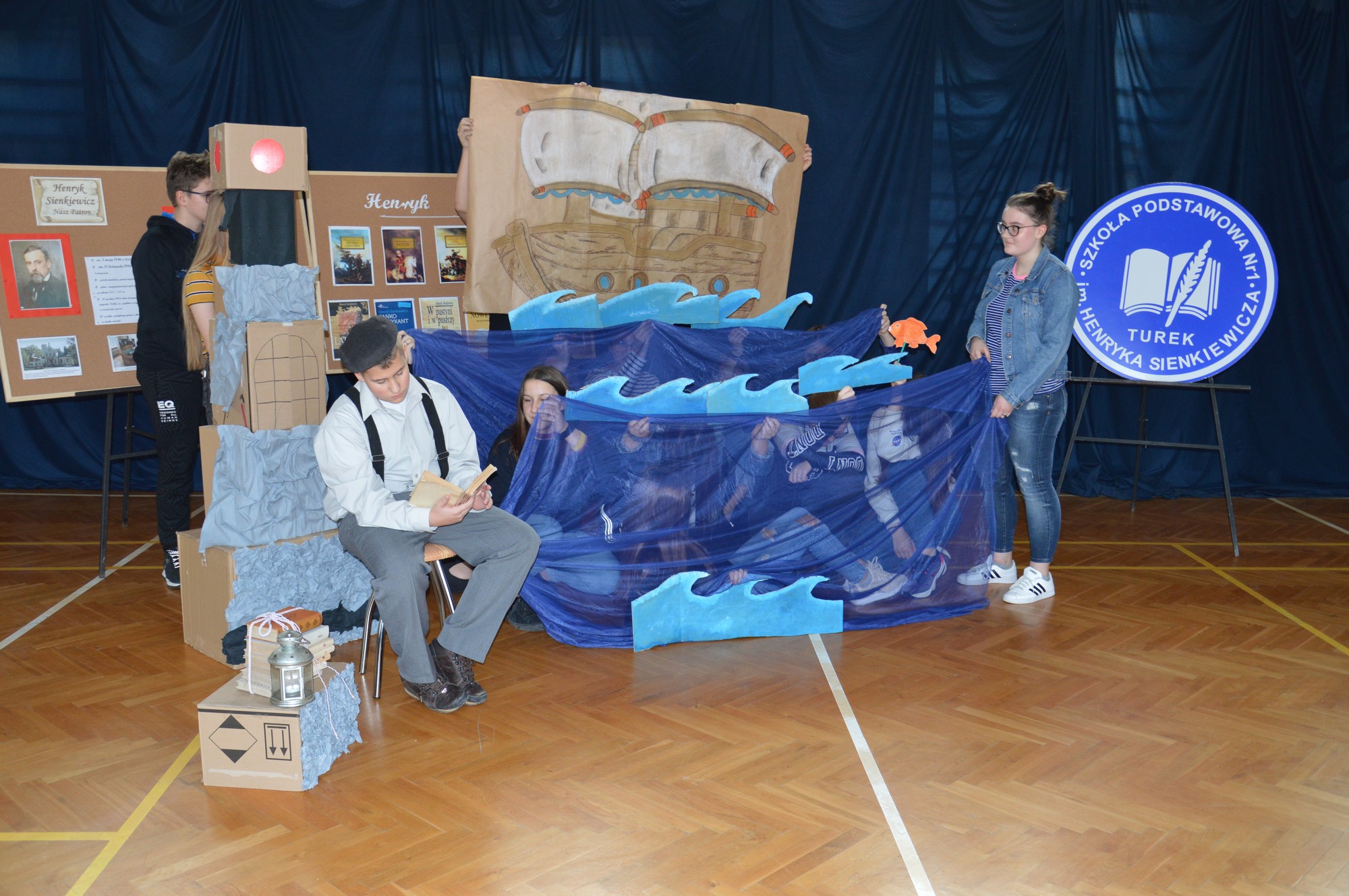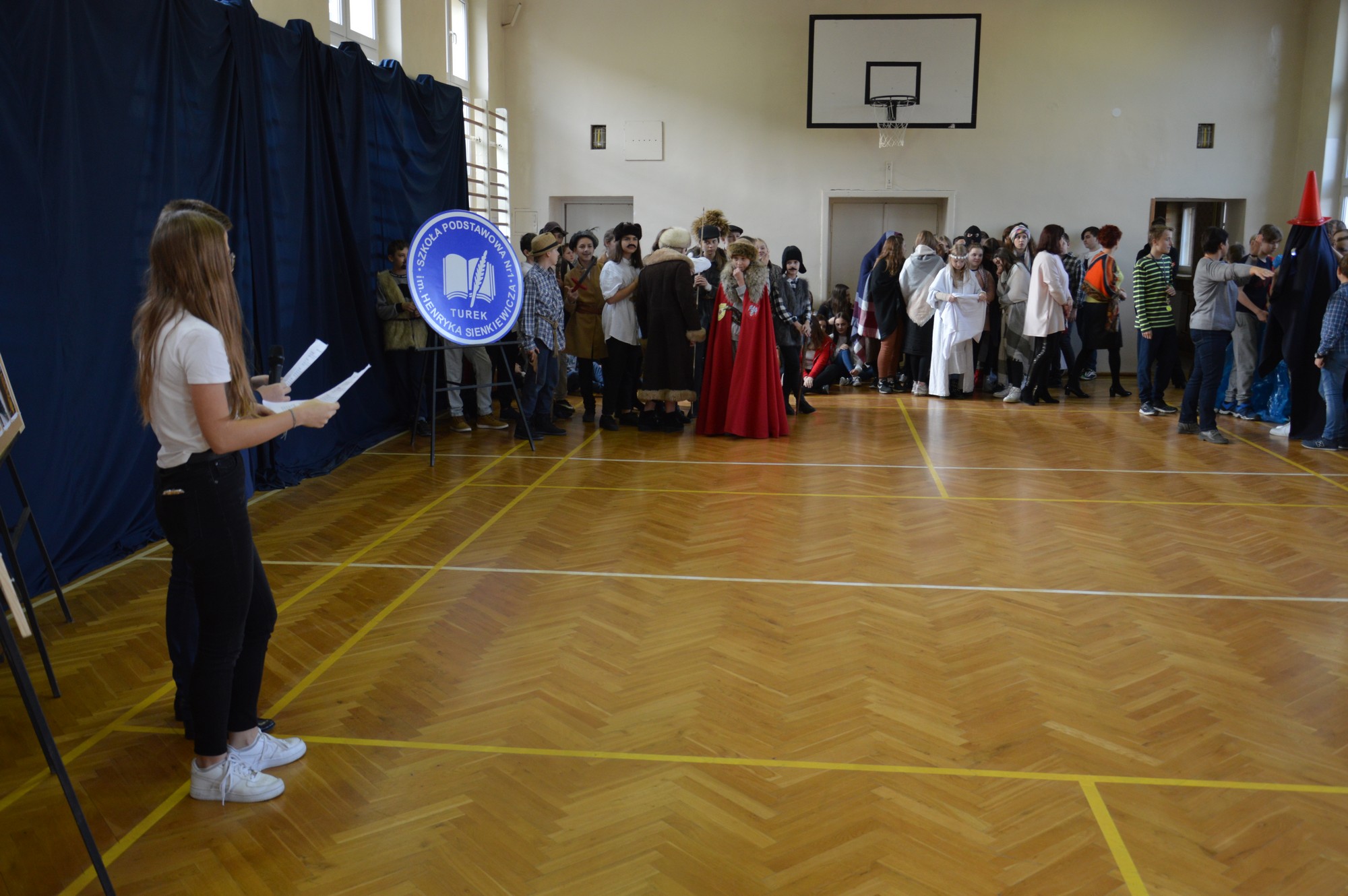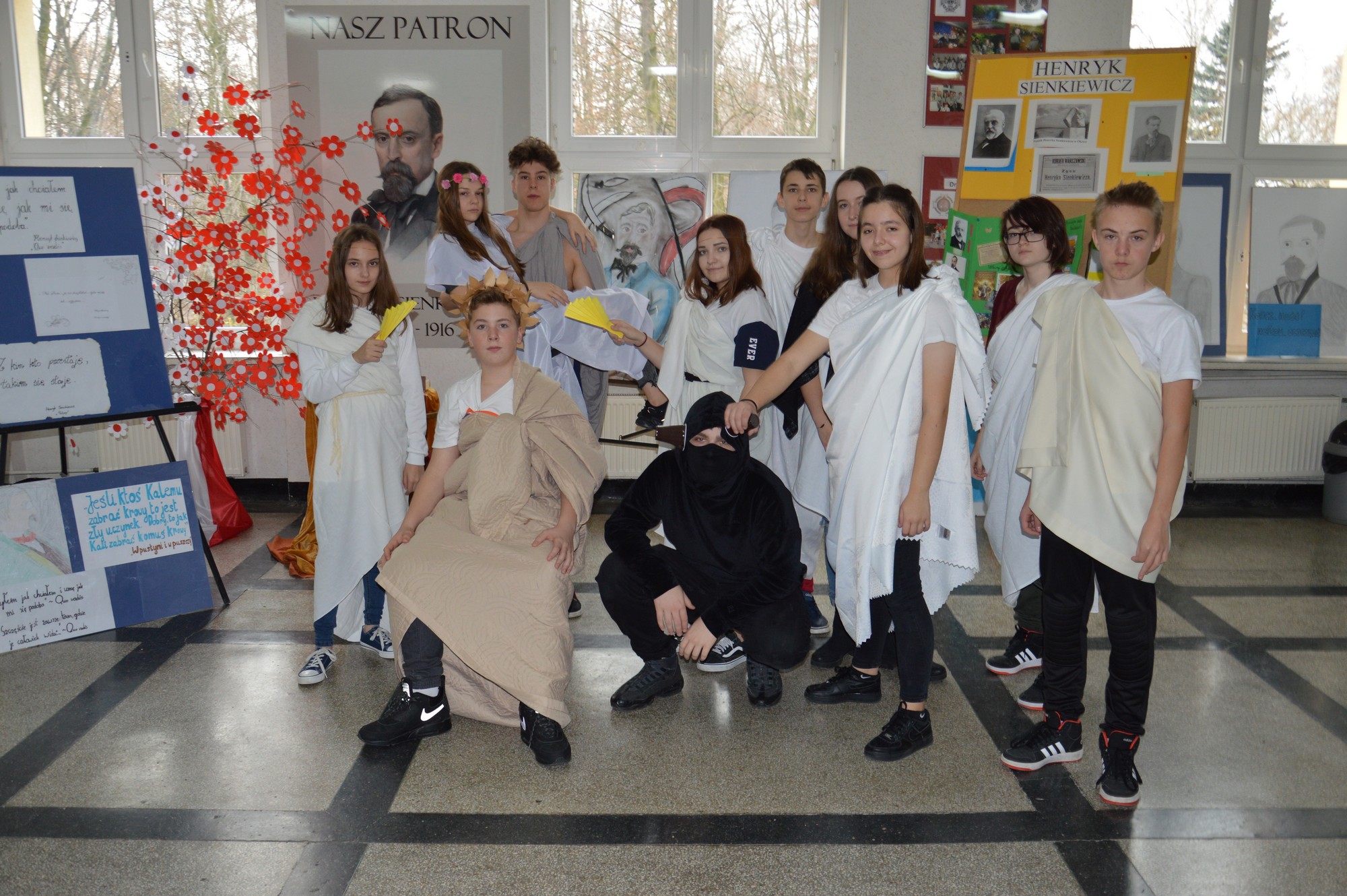 Uczniowie wcielili się w role bohaterów literackich z utworów Patrona i przenieśliśmy się w świat, jaki na łamach swych dzieł literackich stworzył Sienkiewicz. Pozostali uczniowie na sali odgadywali tytuł utworu, z którego pochodziła przedstawiana scena. Ogrom braw świadczył o tym, że wszyscy znakomicie się zaprezentowali. Wyłonienie zwycięzców nie było łatwym zadaniem.
