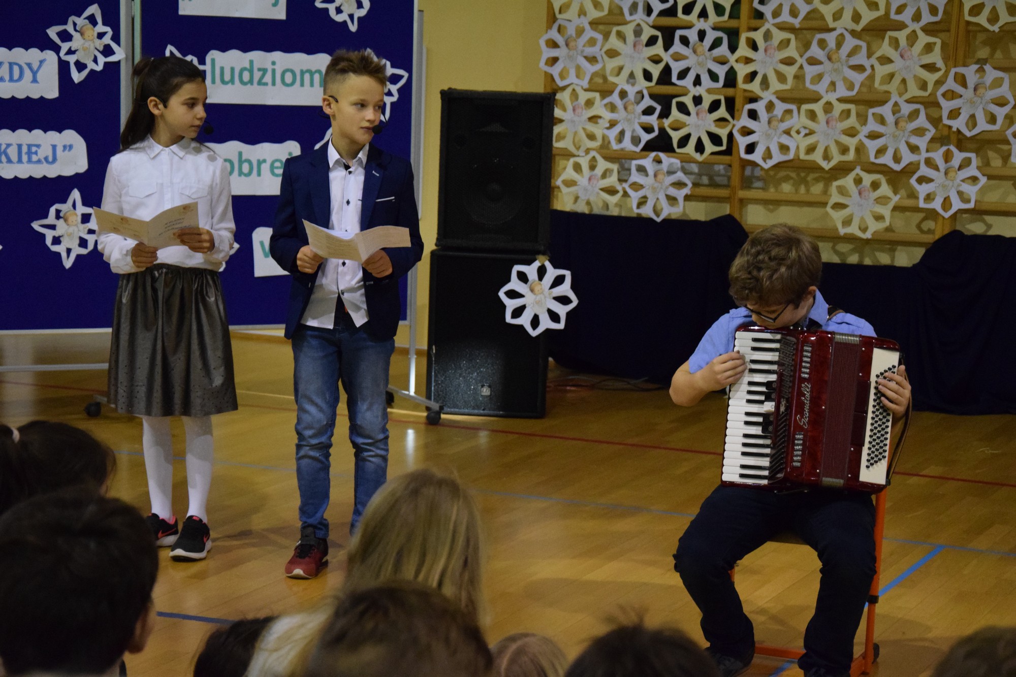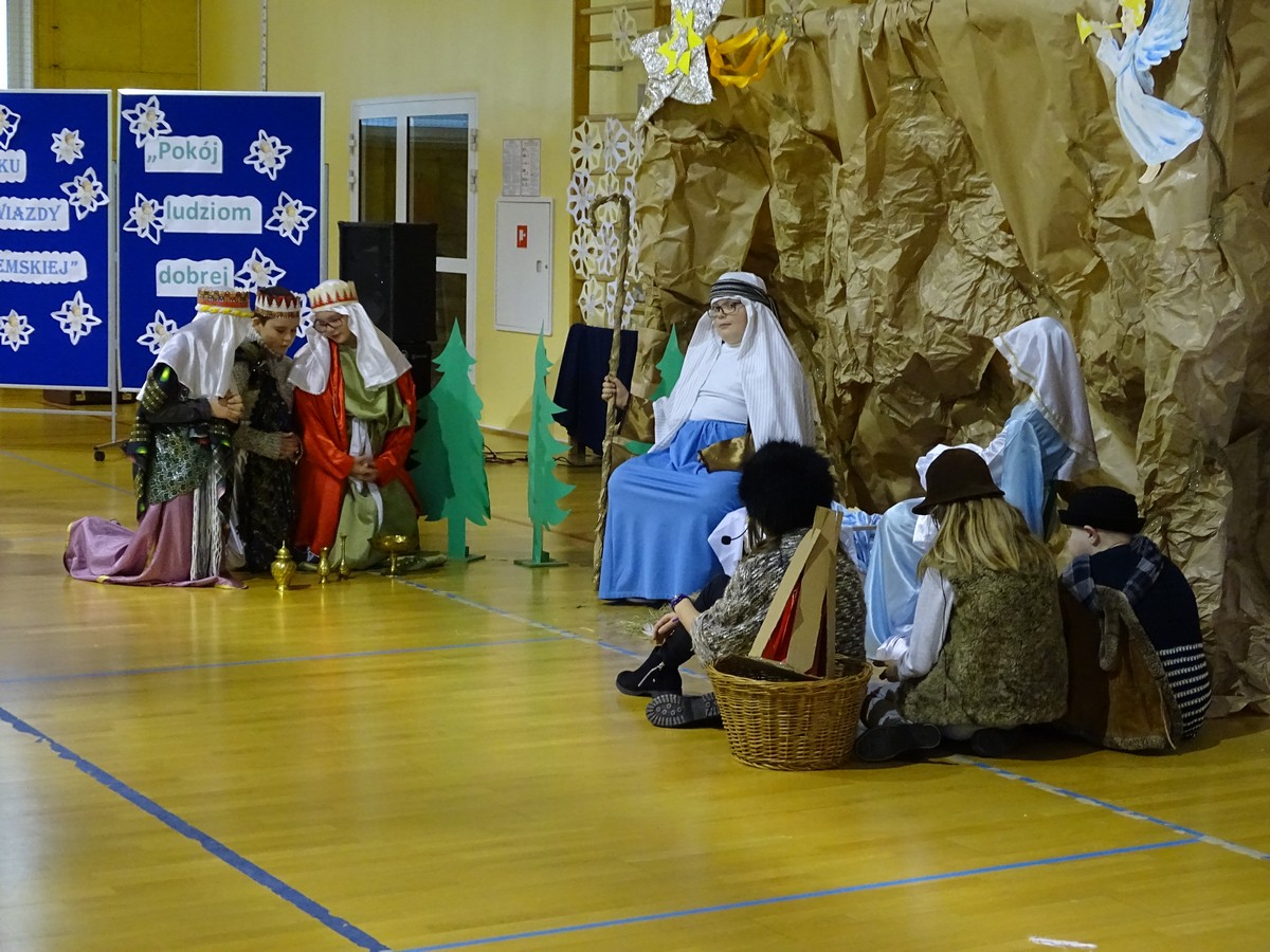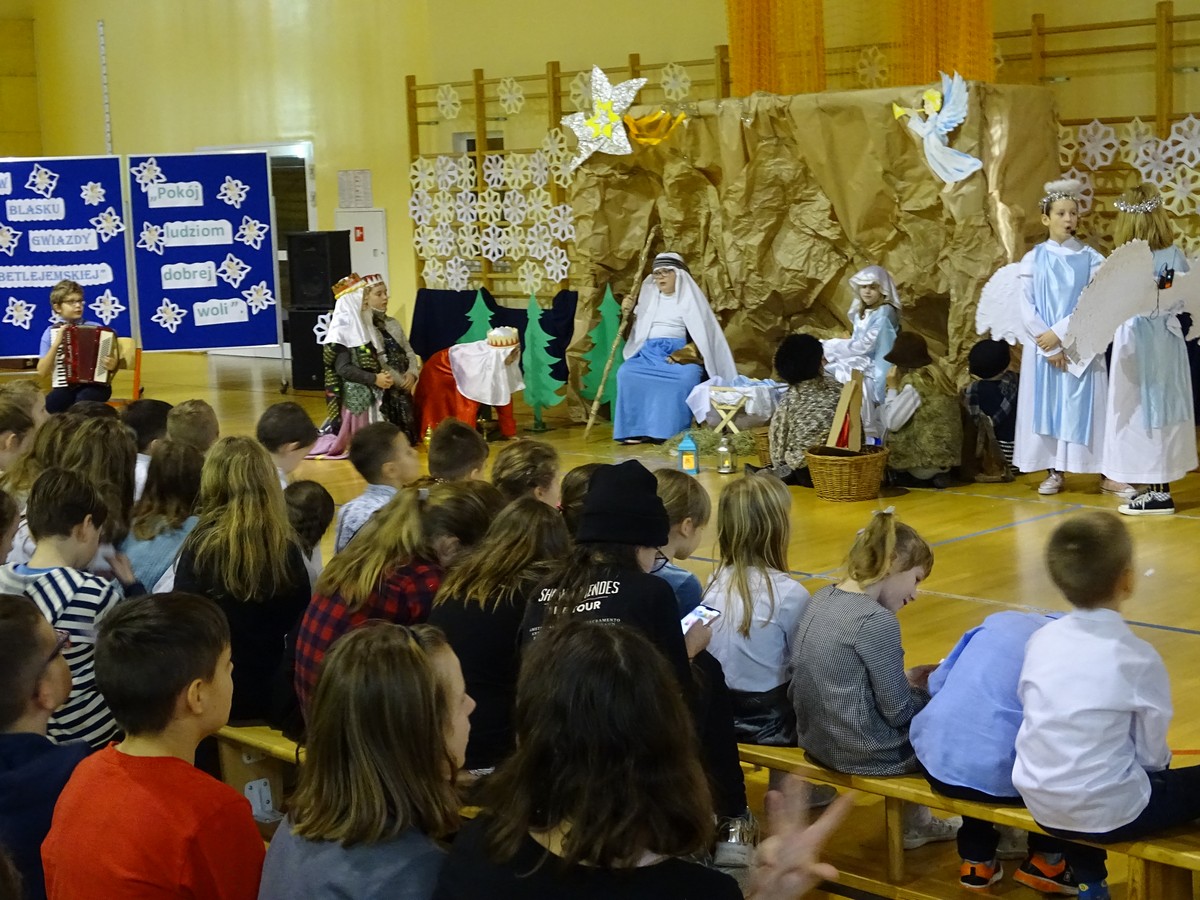 W Szkole Podstawowej nr 1 im. Henryka Sienkiewicza w Turku z okazji Świąt Bożego Narodzenia dnia 20.12.2019r. w budynku przy ulicy 3 Maja odbył się szkolny apel „W blasku gwiazdy betlejemskiej” . Kiedy zaświeciła pierwsza gwiazdka, i fruwały radosne anioły zwiastujące – „Pokój ludziom dobrej woli”, uczniowie z klasy V A i dziewczynki z klas IV pod okiem katechetki i s. Maksymiliany postarali się opowiedzieć historię narodzin Jezusa. Święta rodzina, pasterze z Janem grającym na akordeonie, dzieci z lampionami i trzej królowie darami, wprowadzili wszystkich w świąteczny nastrój tak, że zebrani uczniowie z nauczycielami i rodzicami włączyli się we wspólne kolędowanie. Był to czas, gdzie cała społeczność szkolna jako ludzie dobrej woli, zaangażowała się w stworzenie niepowtarzanej chwili.
