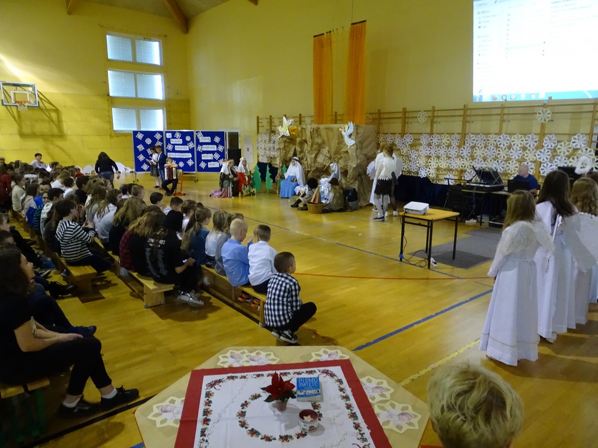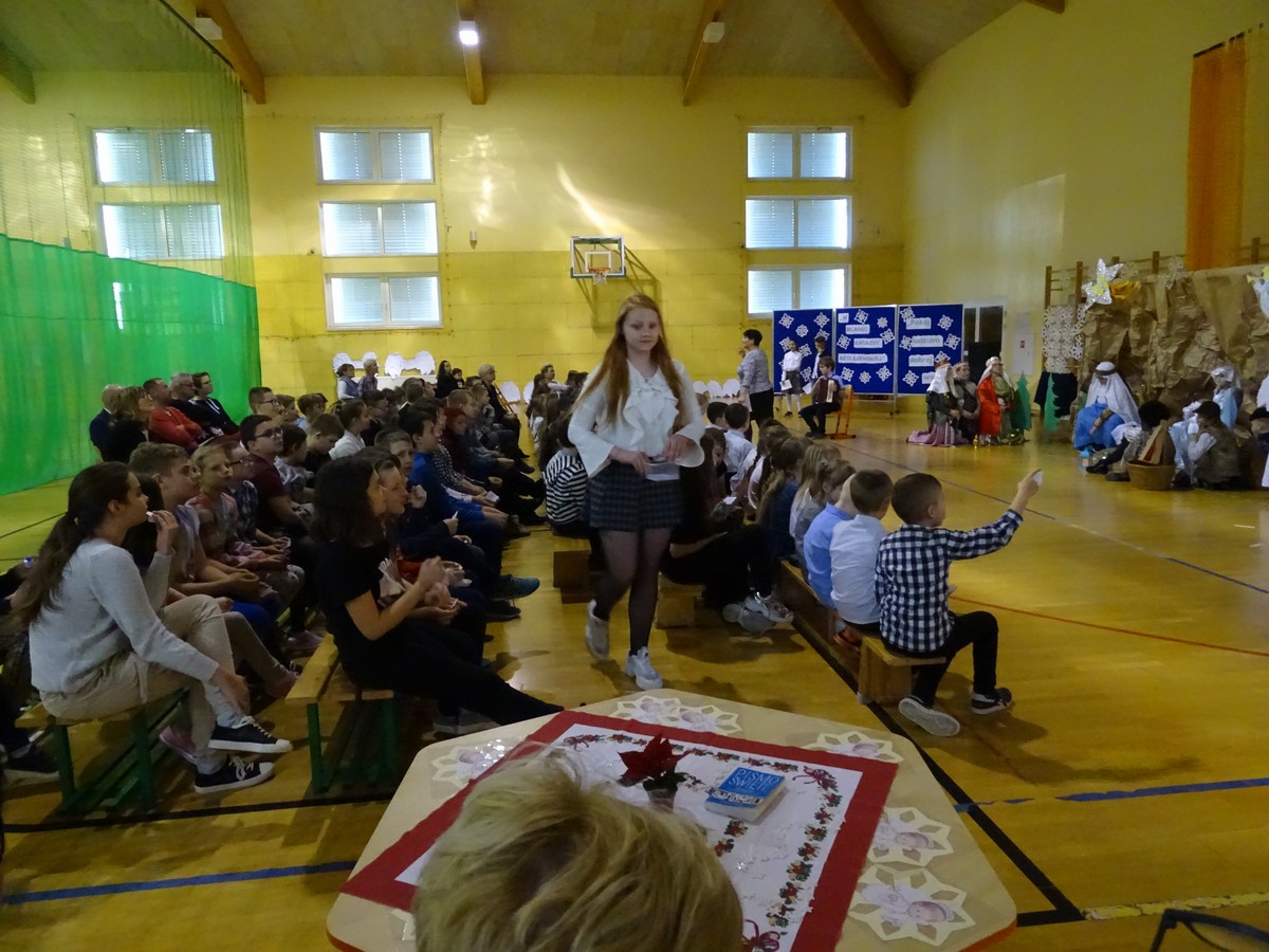 Pani Dyrektor szkoły Elżbieta Pokojowa podziękowała wszystkim za zaangażowanie i złożyła świąteczne życzenia . Uczniom i rodzicom życzyła , aby czas świąt upłyną w serdecznej rodzinnej atmosferze. Dzieciom bezpiecznego wypoczynku, może jak się uda pogoda, to ze śniegiem oraz, aby wszyscy wypoczęci wrócili do szkoły w Nowym 2020 Roku.