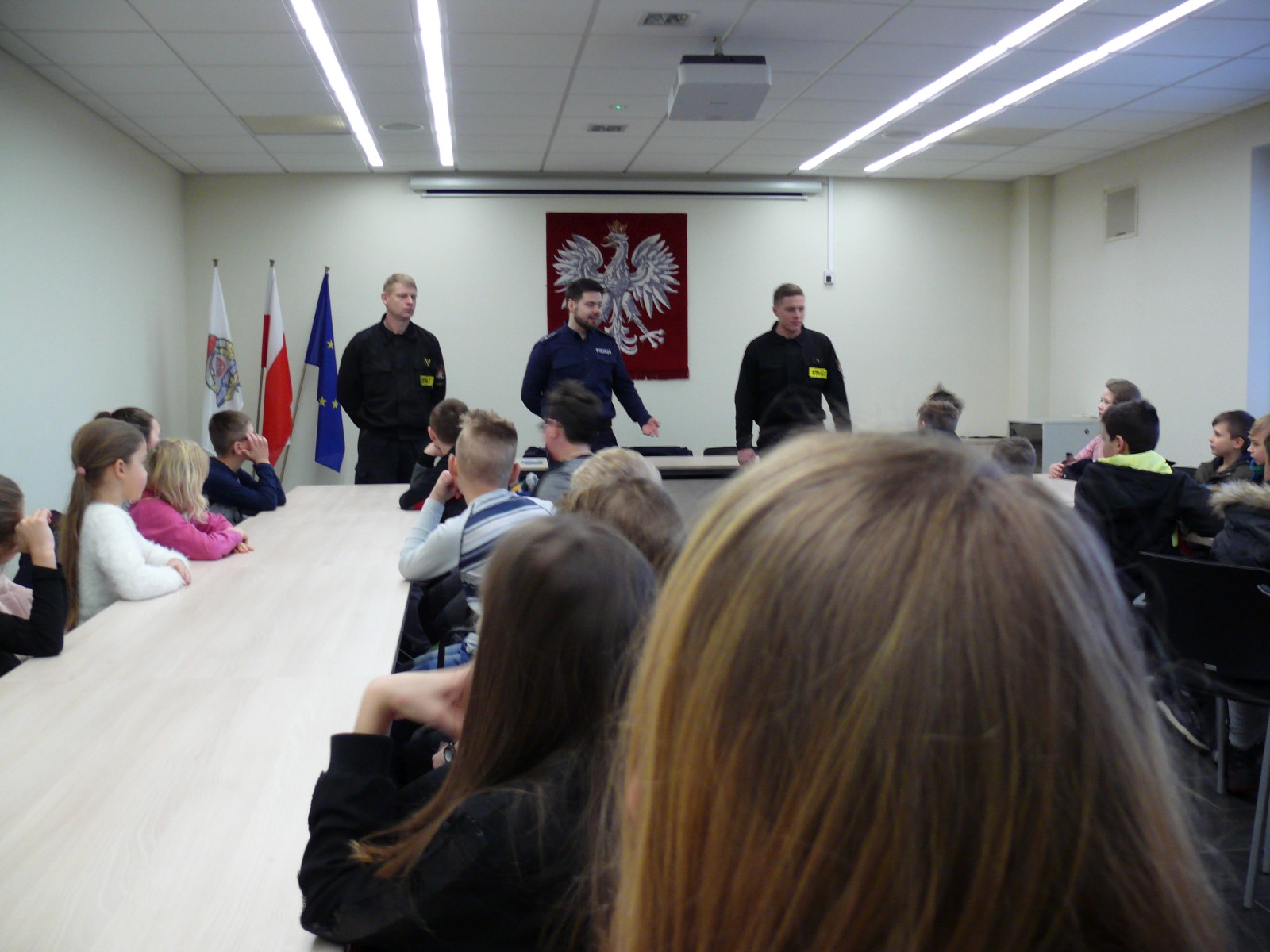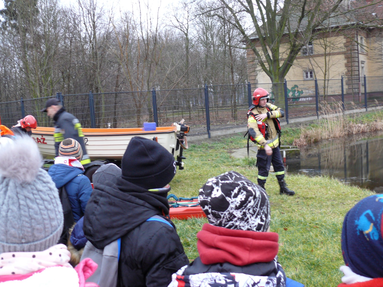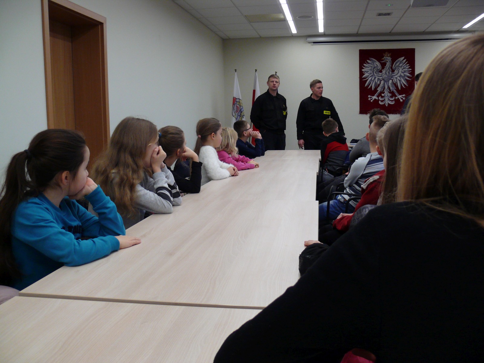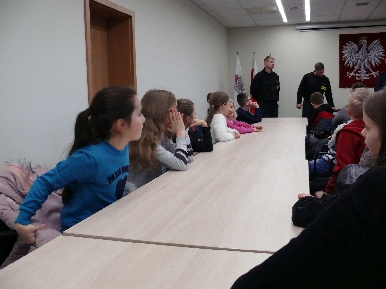 W ramach akcji „Bezpieczne ferie” Państwowej Straży Pożarnej przy ul. św. Floriana, uczniowie kl. 2c i 3a pod opieką p. A. Sujewicz, A. Szymczyk oraz M. Poturały, uczestniczyli w spotkaniu i pogadance, zorganizowanych w trosce o bezpieczeństwo najmłodszych i młodzieży. W siedzibie komendy dzieci spotkały się nie tylko z funkcjonariuszami Państwowej Straży Pożarnej, ale również Policji. Strażacy omówili niebezpieczeństwa związane z sezonem grzewczym oraz podkreślali korzyści płynące z zamontowania w domach czujek dymu oraz czadu, a także jak postępować, gdy sami zostajemy w domu. Następnie uczniowie mogli przyjrzeć się pokazowi akcji ratowniczej. Strażacy ostrzegali przed zabawami na zamarzniętych zbiornikach wodnych i zaprezentowali podejmowanie z wody osoby, pod którą załamał się lód. Było to bardzo edukacyjne spotkanie.