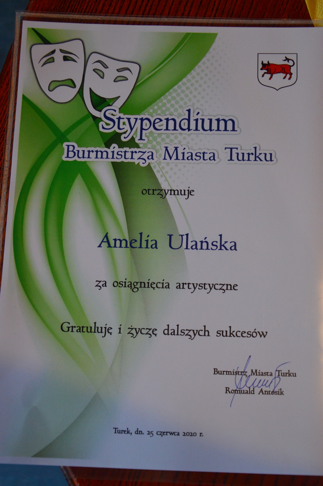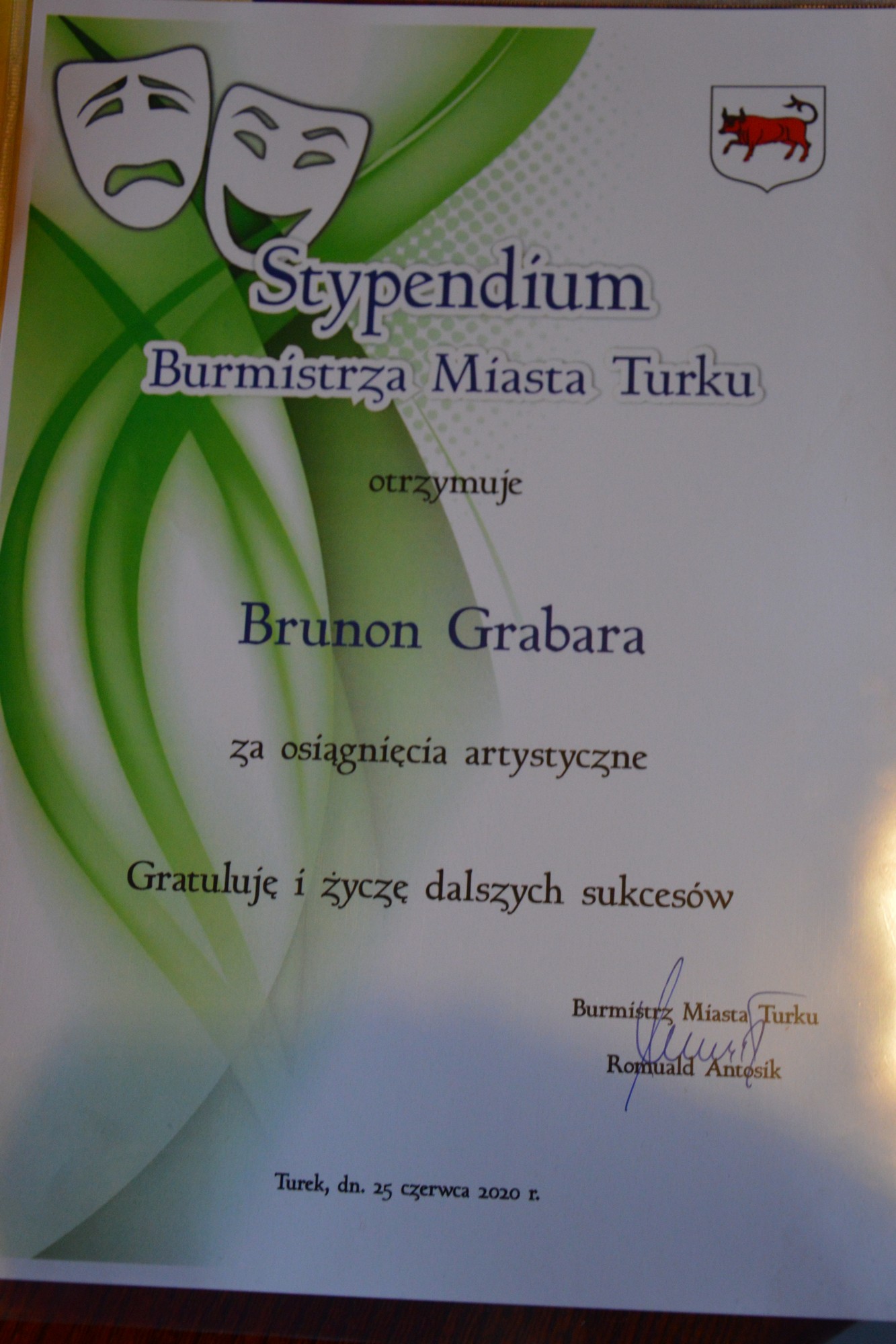 W dniu 25 czerwca 2020 roku w Miejskim Domu Kultury w Turku odbyła się uroczystość wręczenia stypendiów artystycznych Burmistrza Miasta Turku.