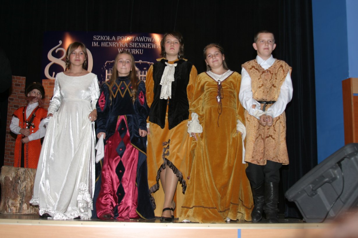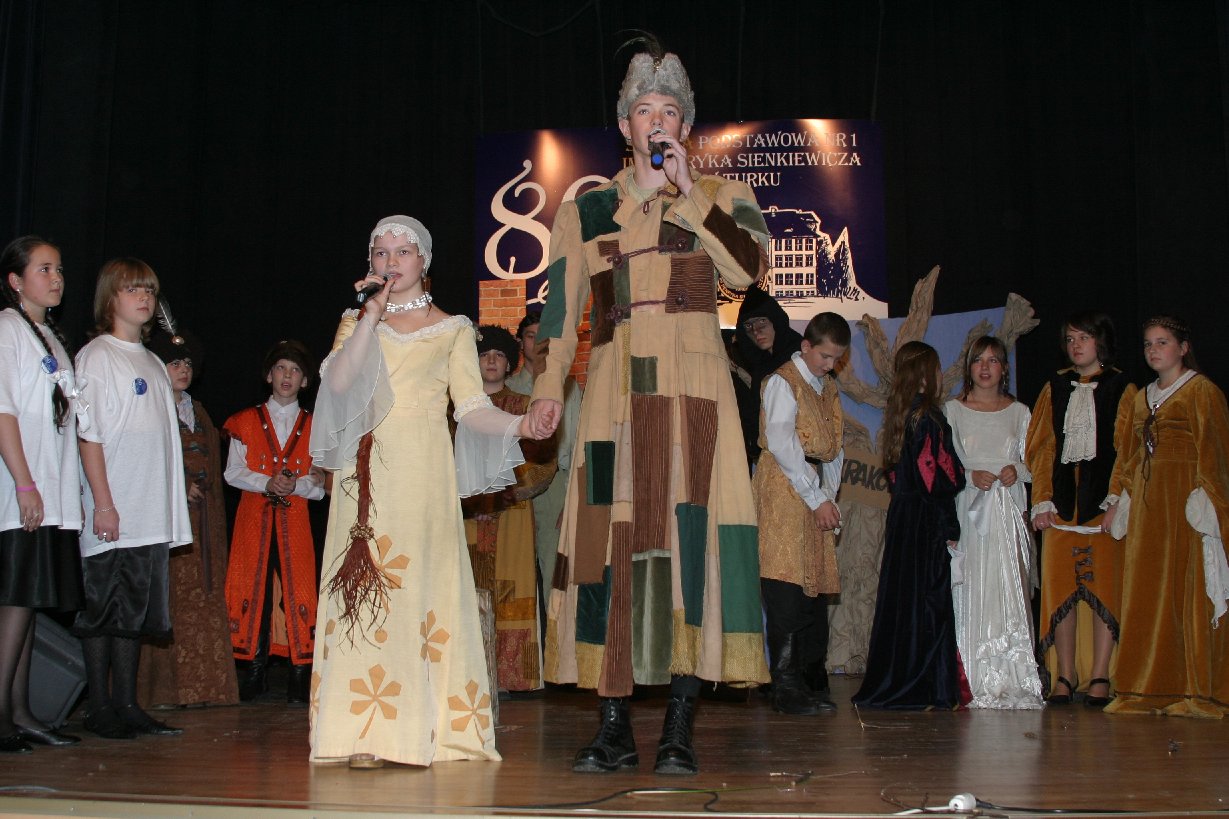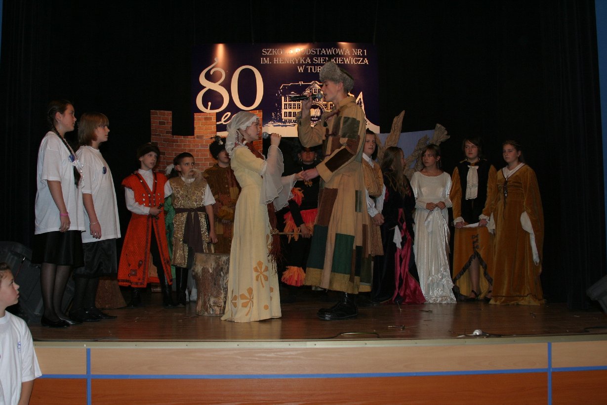 Jednym z najistotniejszych elementów szkolnej tradycji „Jedynki” jest kultywowanie Święta Patrona Szkoły Henryka Sienkiewicza. Osoba patrona od blisko 40 lat jest obecna w życiu szkoły i jej wychowanków. Stąd też Jubileusz szkoły uświetnił występ szkolnego teatru „Szpilka”, który wystawił spektakl pt. „ZLOT BOHATERÓW SIENKIEWICZOWSKICH”. Młodzi aktorzy wskrzesili w nim postacie z książek autora „Trylogii”, a nawet samego Noblistę, który z ogromną radością spotkał się z rodziną „sienkiewiczaków” w Turku.