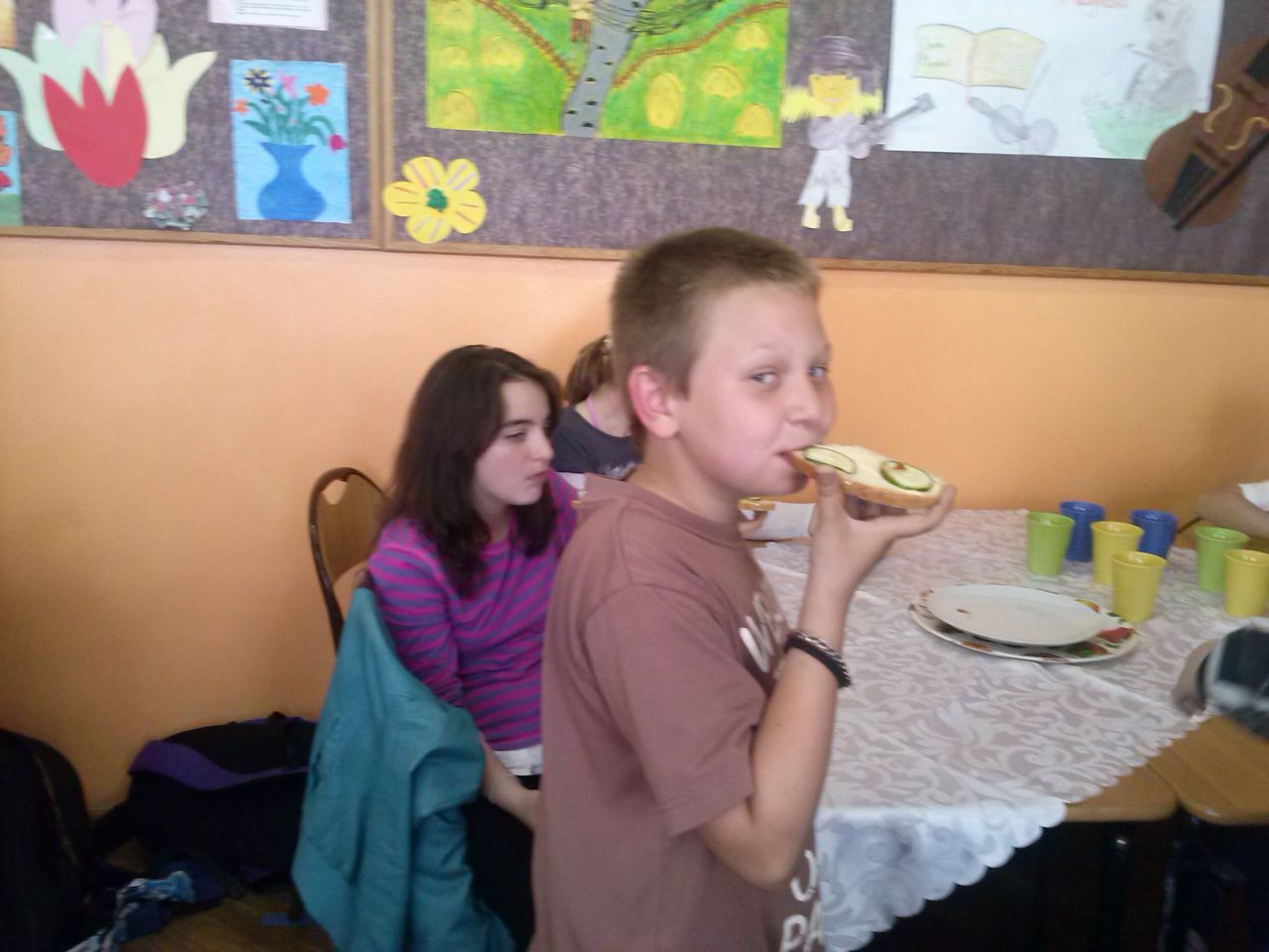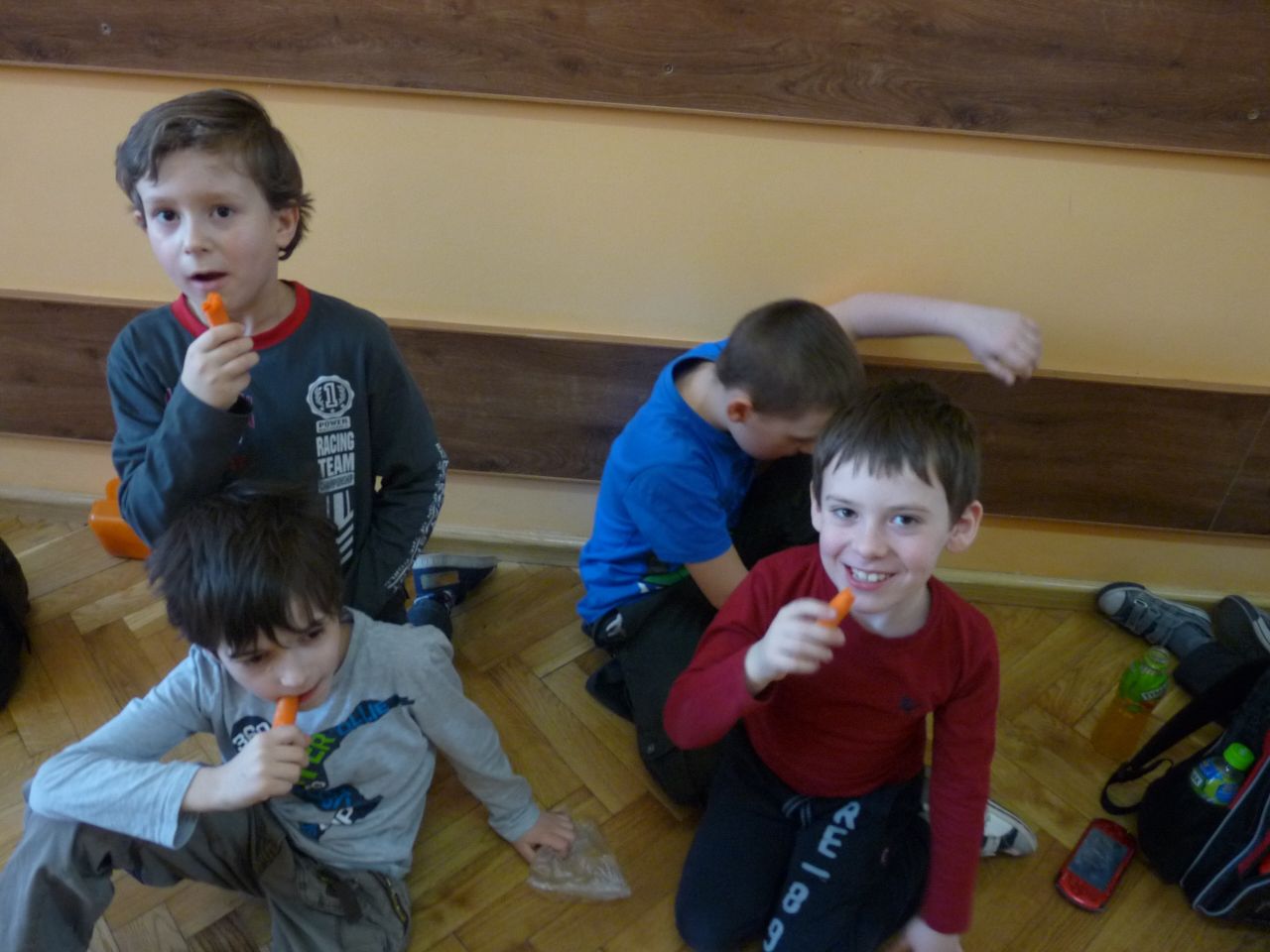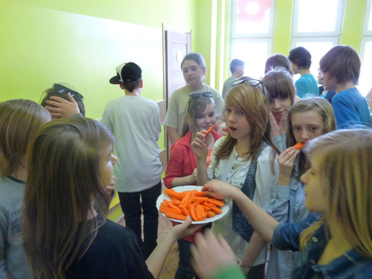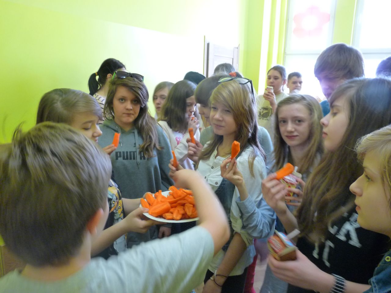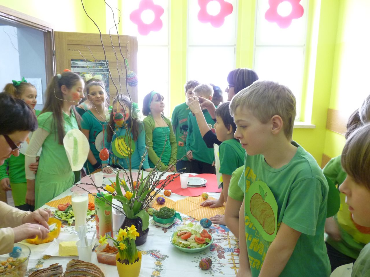 W związku z tym 8 listopada każda klasa w Jedynce wg własnego pomysłu organizowała zdrowe śniadanie. Była to świetna zabawa o dużych walorach edukacyjnych. Dzieci z apetytem jadły ciemne pieczywo z gzikiem lub domowymi konfiturami. Dużym powodzeniem ciszyły się sałatki owocowe i warzywne, kolorowe kanapki a do picia kompoty i domowej roboty soki. W tym dniu zamiast chipsów dzieci chrupały marchew, zamiast słodkich groszków wyciągały rękę po winogrono.
