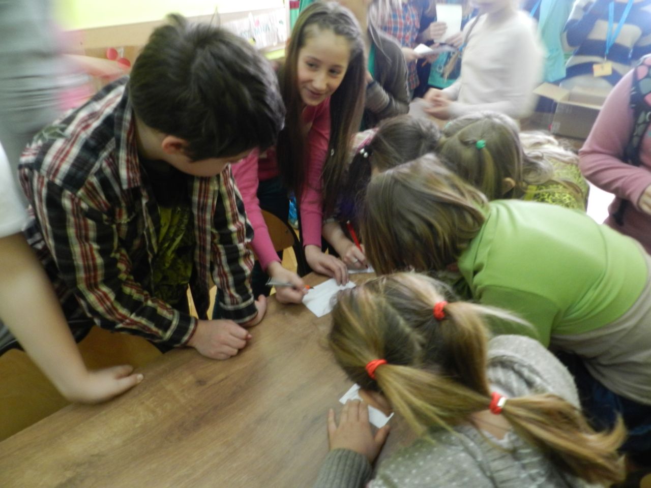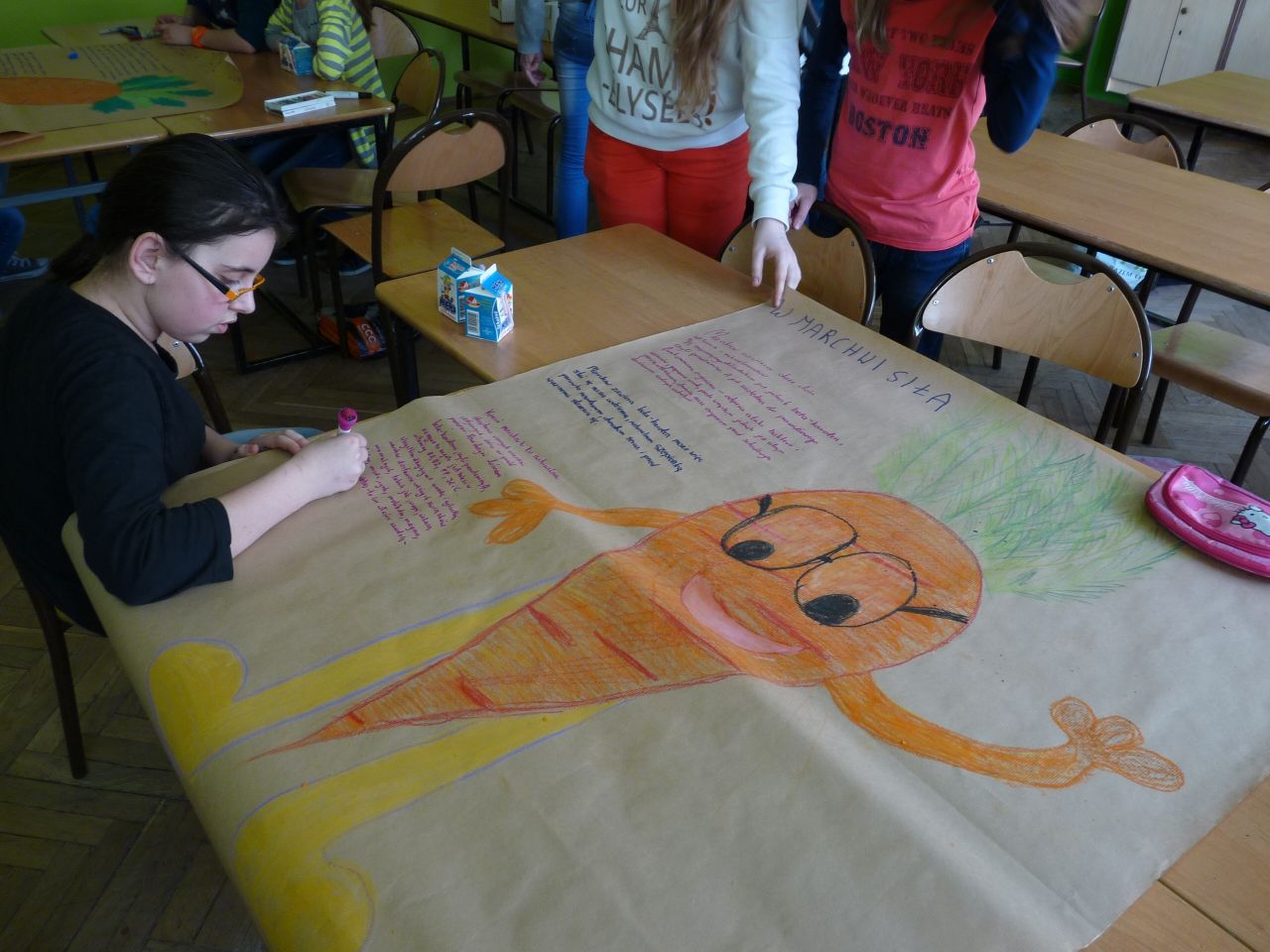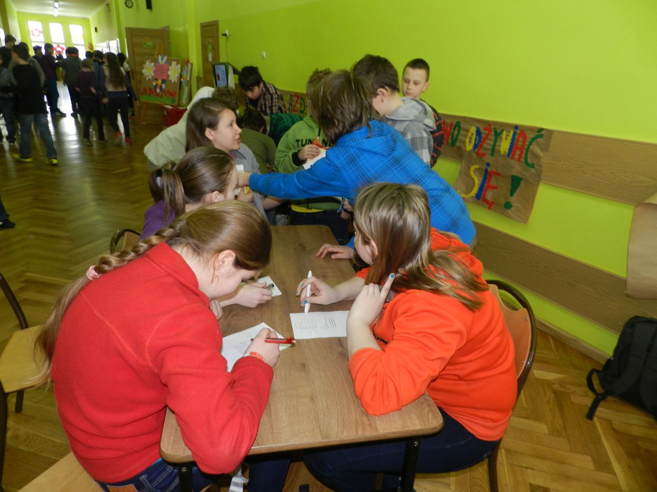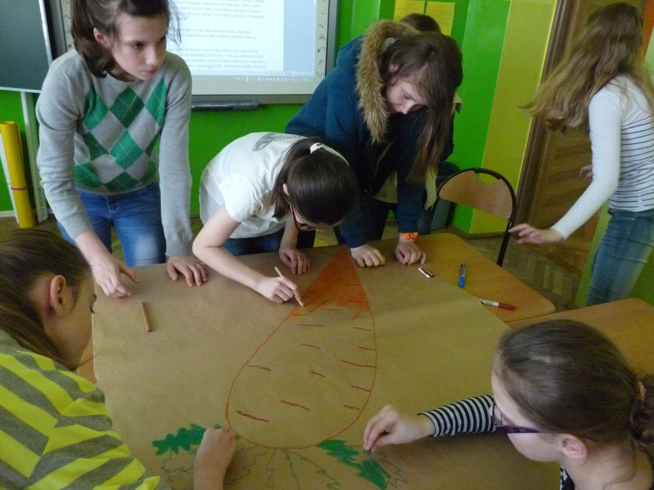 Lekcja języka polskiego była ciekawa również z tego względu, że uczestniczyli w niej uczniowie klas I, II i IV. Uczniowie świetnie ze sobą współpracowali.. Zadania były tak opracowane, że brali w nich udział zarówno starsi jak i młodsi. Zadań do wykonania było wiele, angażowały do pracy wszystkich uczniów. Dzieci wykazały się dużą wiedzą na temat wartości odżywczych warzyw i owoców. Niektóre dzieci próbowały dane warzywo lub owoc ze stwierdzeniem, że jedzą coś po raz pierwszy. Lekcja języka polskiego stworzyła okazję do tego aby przekonać uczniów , że jesień ma w sobie całe bogactwo zapachów, kolorów, kształtów a także wartości odżywczych, które są w warzywach i owocach.
