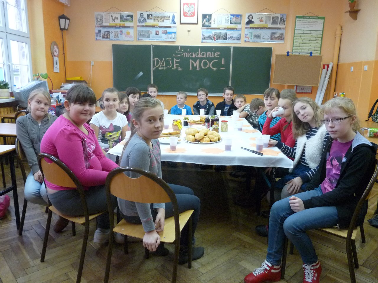 z sałatą i wędliną lub żółtym serem, świeże owoce, jogurty, świeżo wyciskane soki z owoców ( z sokowirówki), soki butelkowane, wodę mineralną. Uczniowie mają możliwość nauczenia się dokonywania właściwych wyborów związanych ze zdrowym odżywianiem. - Uczniowie naszej szkoły brali udział w ogólnopolskiej akcji „ Śniadanie daje moc”.